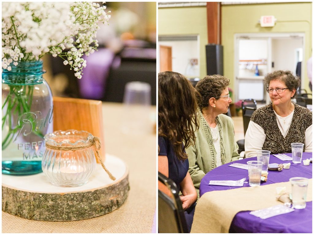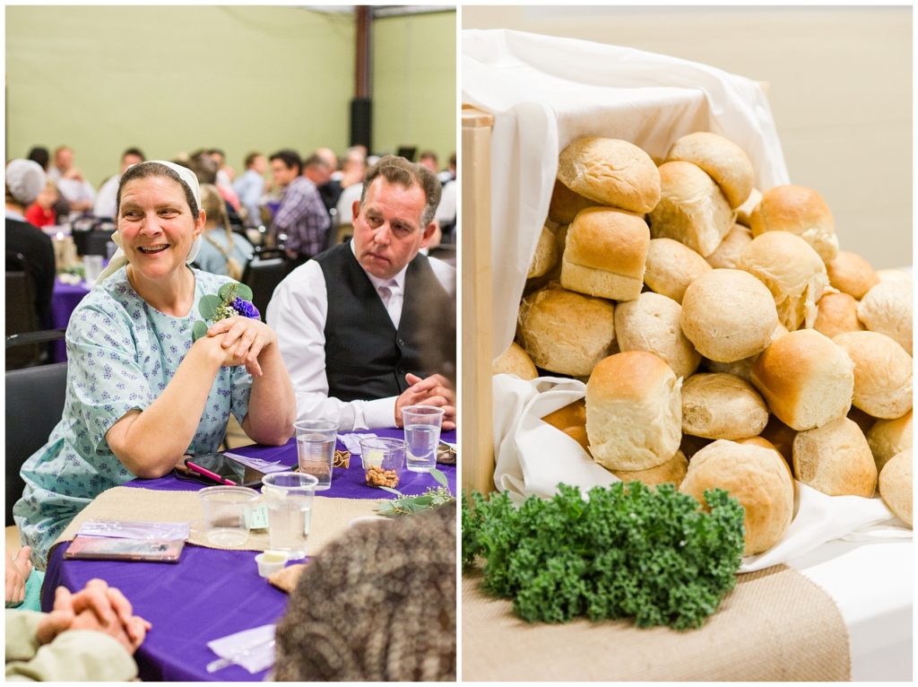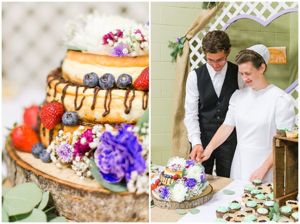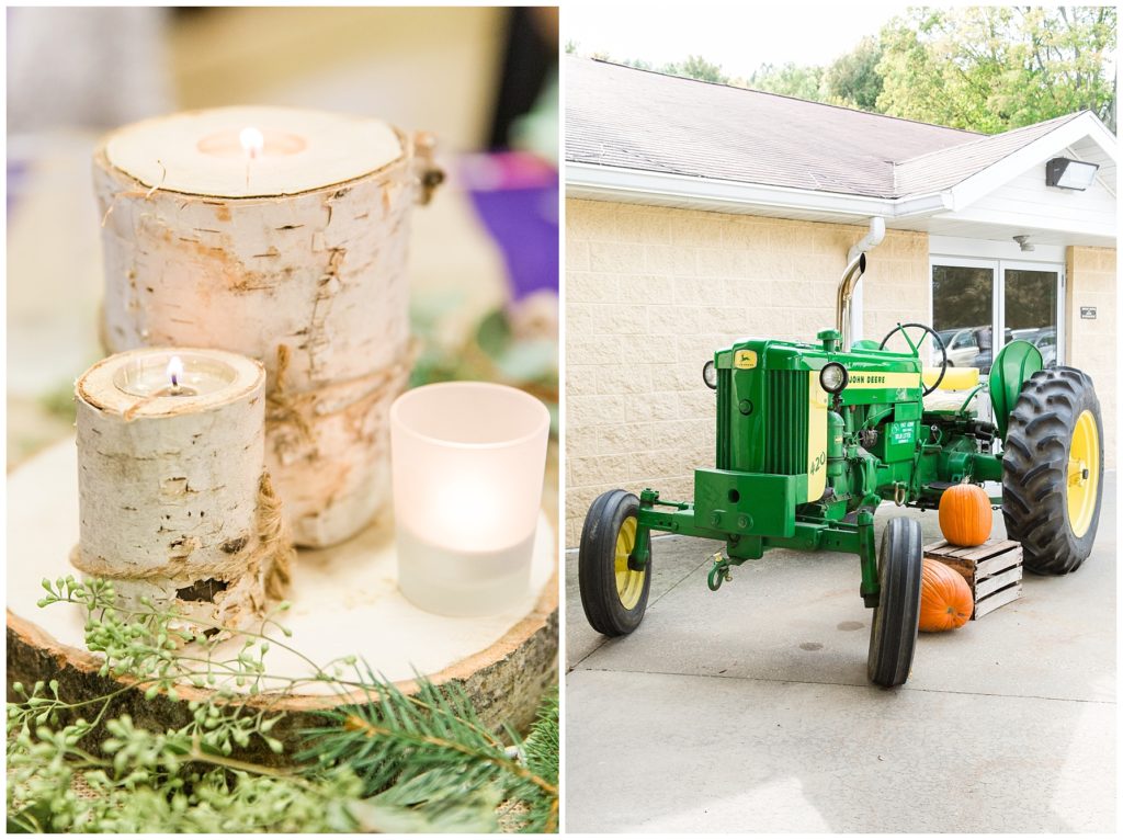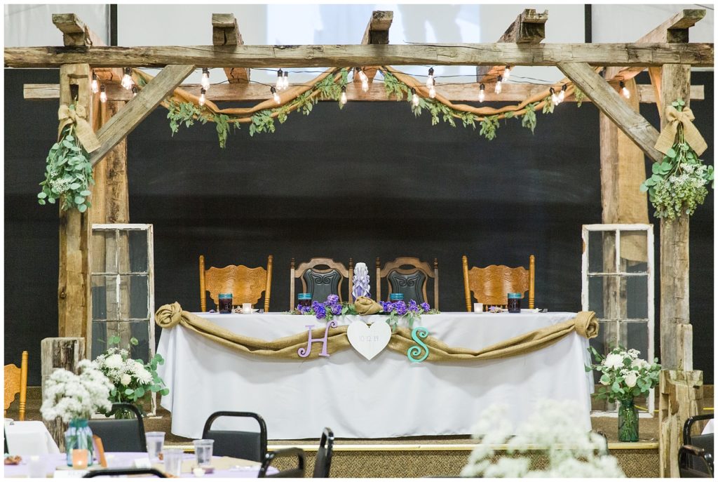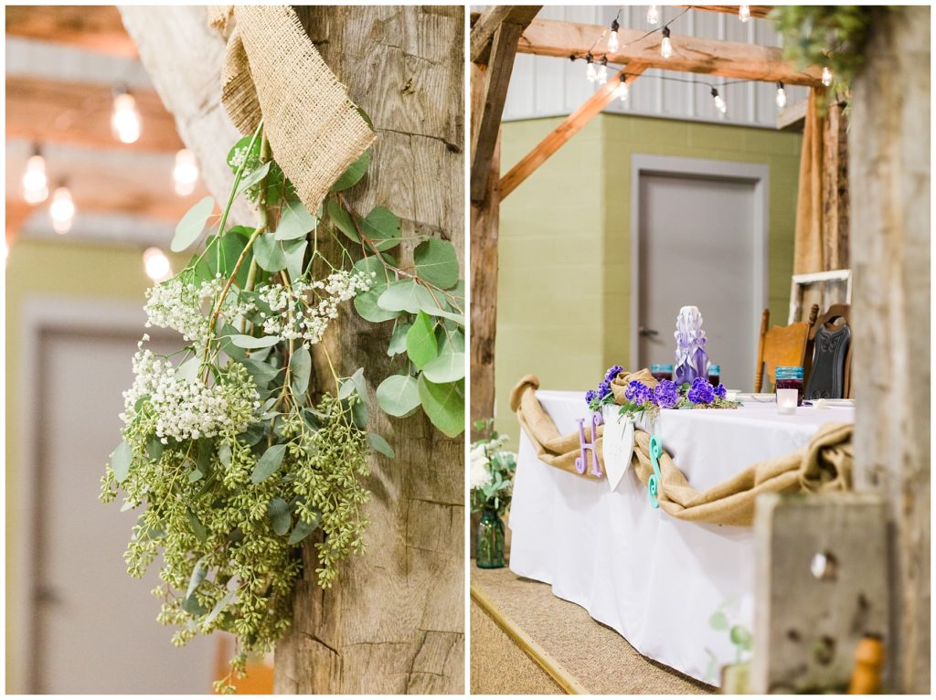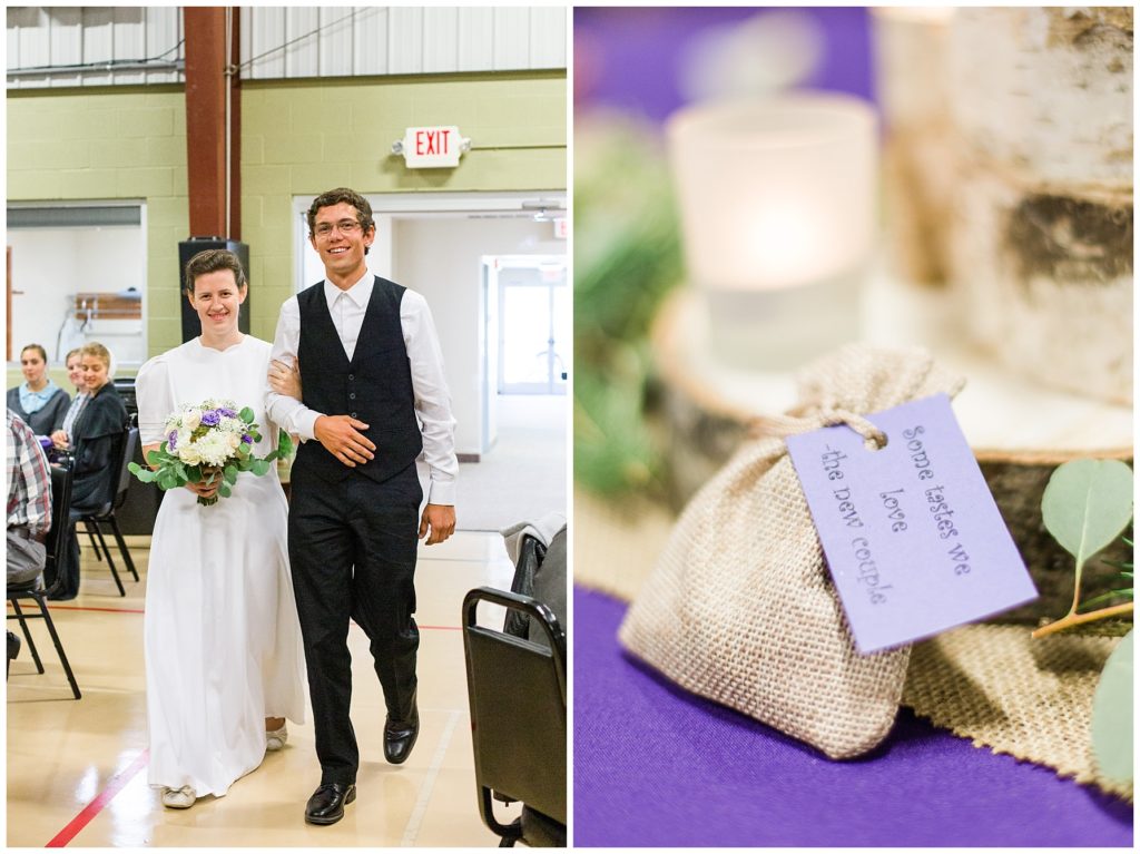 At the reception, Seth’s tractor that had been gifted him by his Grandfather sat outside. Seth himself built the lovely rustic arbor over the bridal table, and friends and family made the delicious meal. A slideshow of their lives played over the bridal table. Family was a central part of their day!