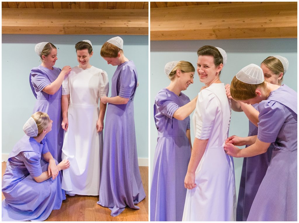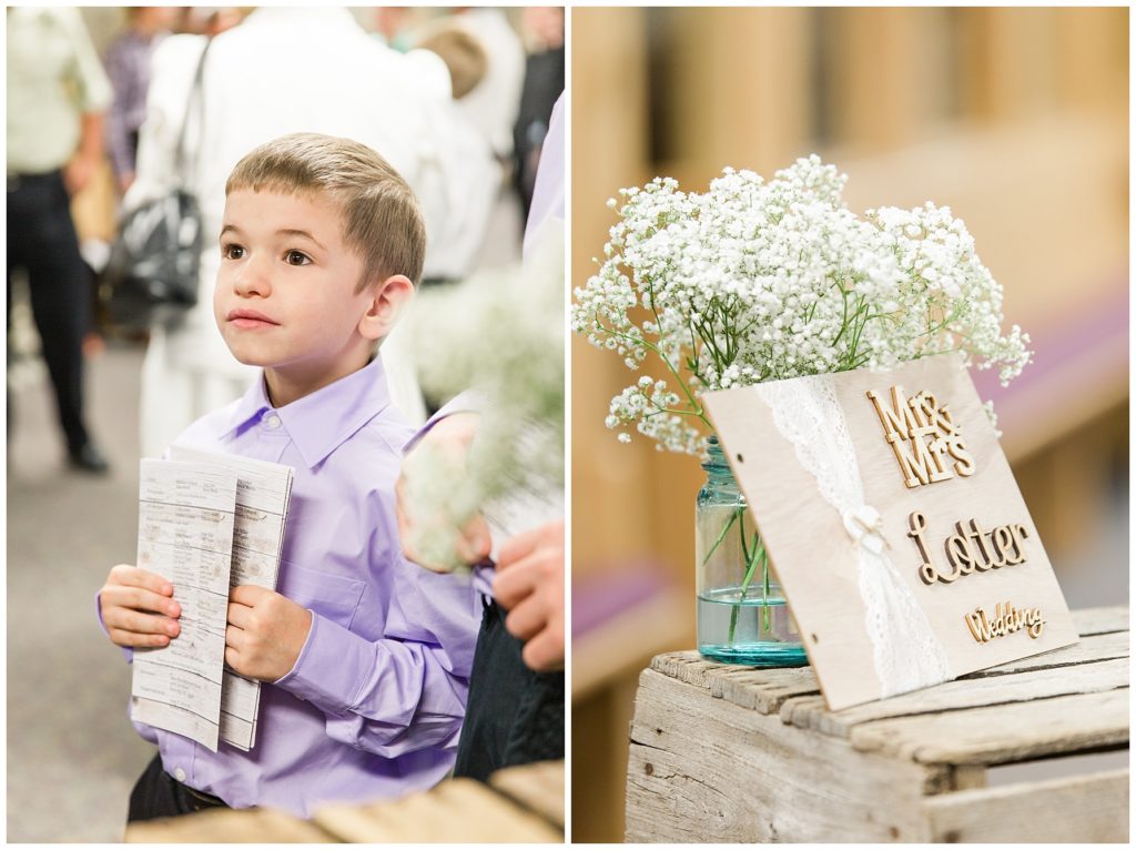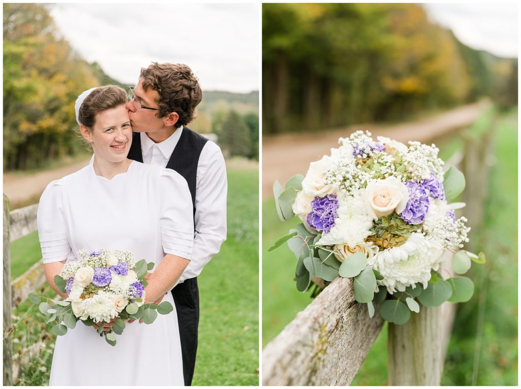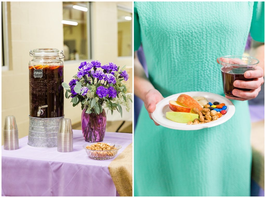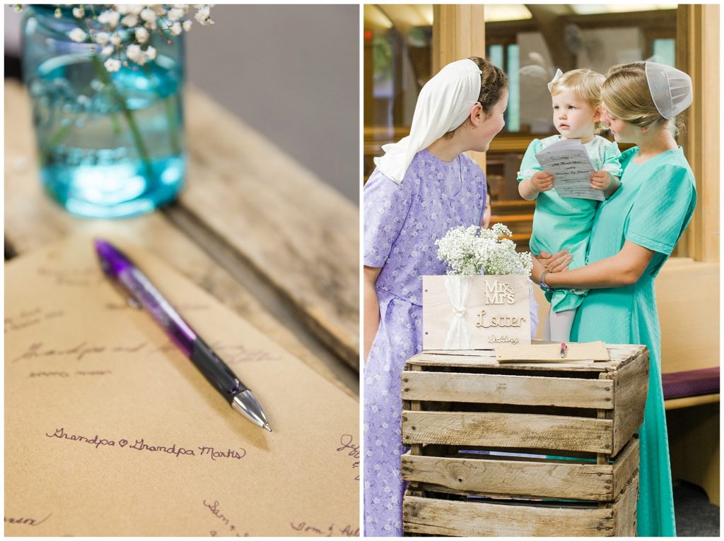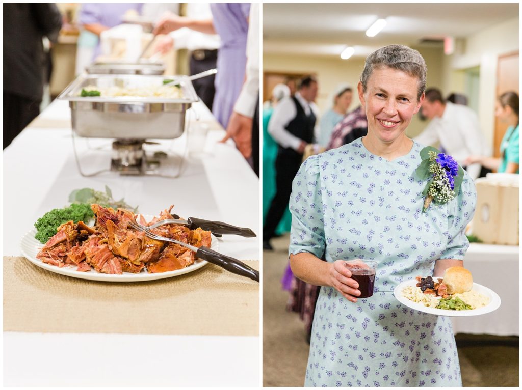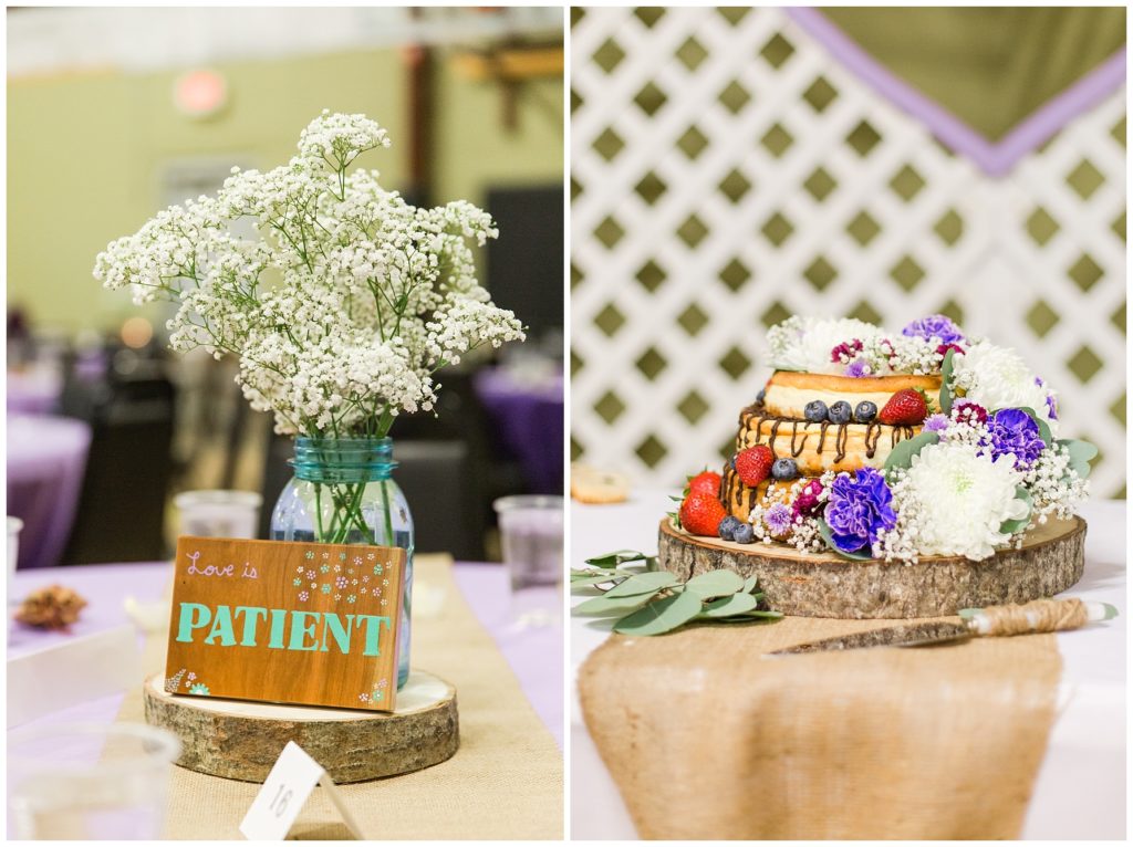 At the reception, Seth’s tractor that had been gifted him by his Grandfather sat outside. Seth himself built the lovely rustic arbor over the bridal table, and friends and family made the delicious meal. A slideshow of their lives played over the bridal table. Family was a central part of their day!