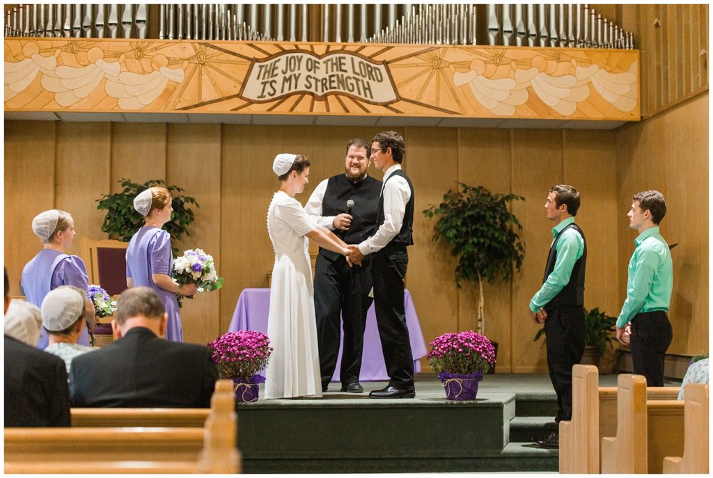 The day started off with photos of the groom and groomsmen at a local church family’s beautiful farmstead. Seth and Hosanna had chosen not to see each other on their wedding day until her father walked her down the aisle, so we took pictures separately with the bride and bridesmaids at the church. The ceremony was in a grand sanctuary with unique architecture, but the most beautiful thing was the love and joy so evident on all their faces.