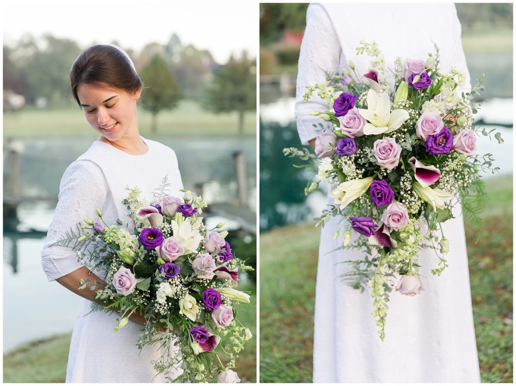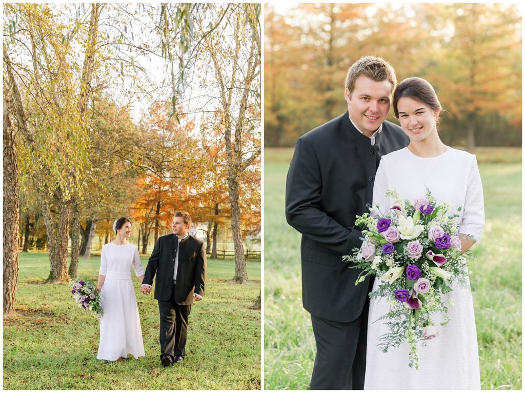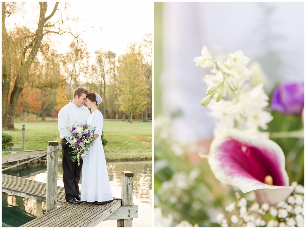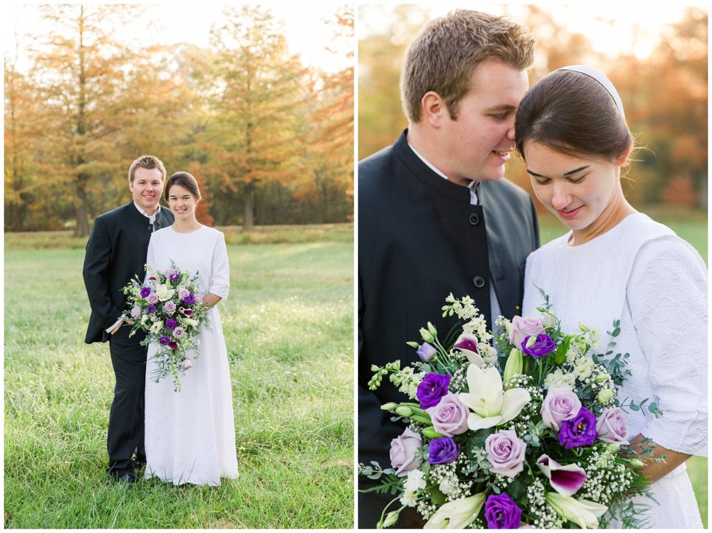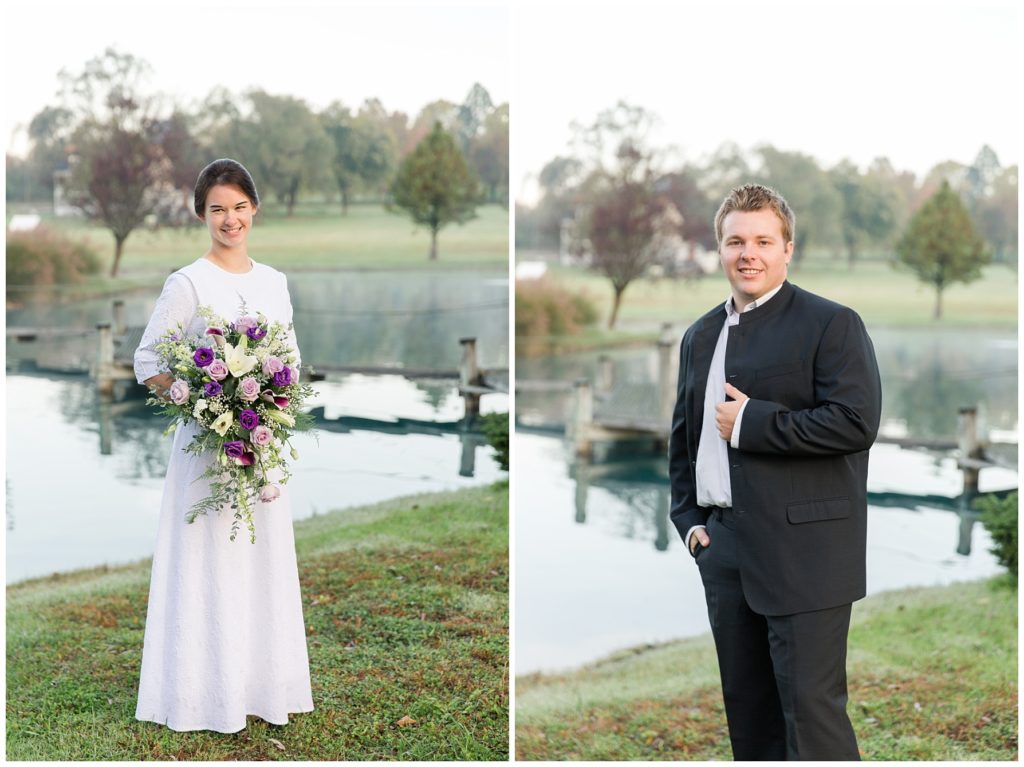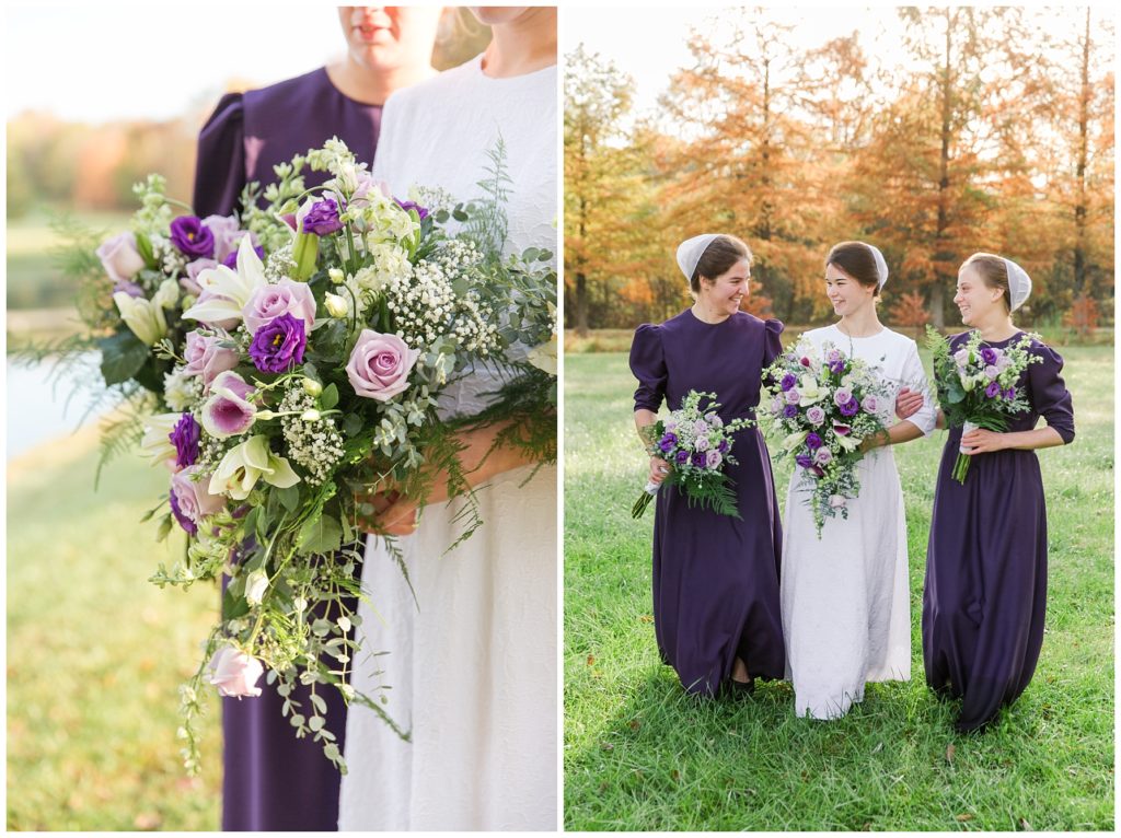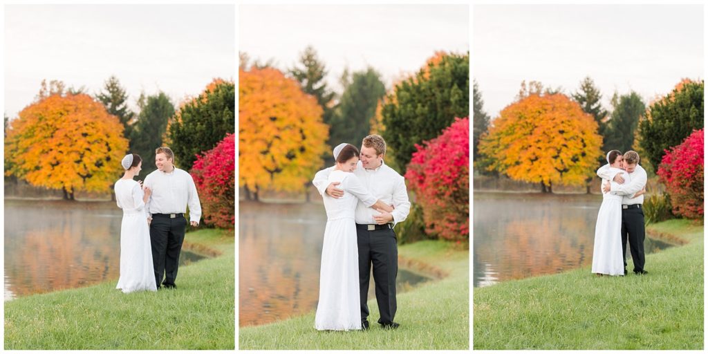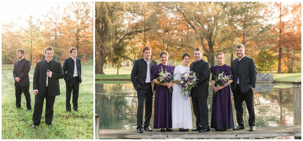 Kendall and Rhonda’s wedding dawned bright and beautiful. We met them at a misty pond surrounded by vibrant autumn trees. They had the sweetest first look, and then their bridal party joined them. The light was so pretty and I think it was worth getting our feet wet in the dewy grass.