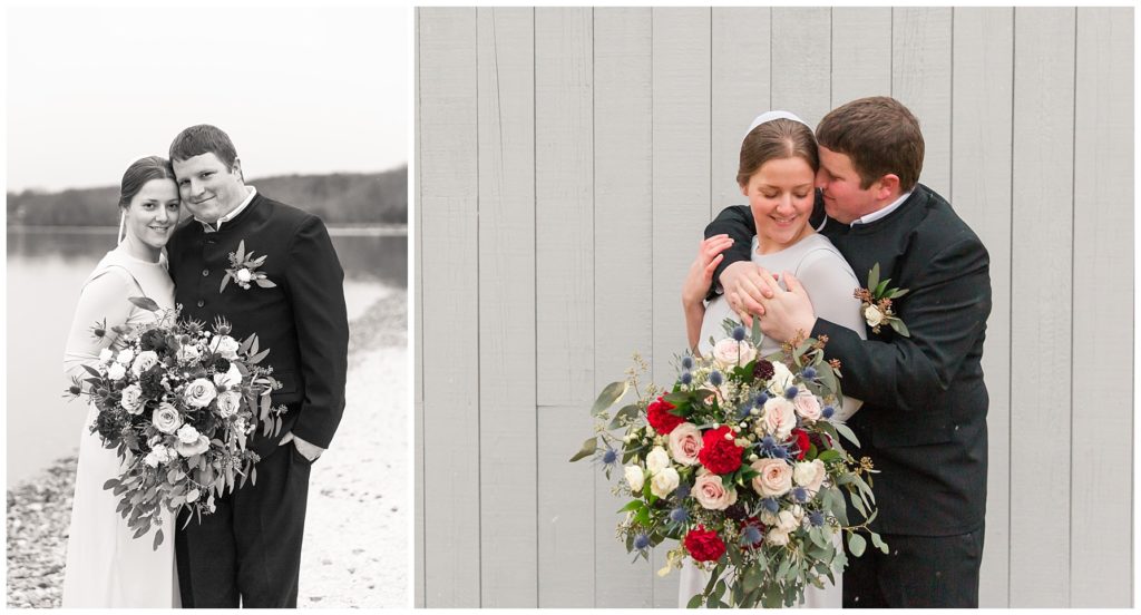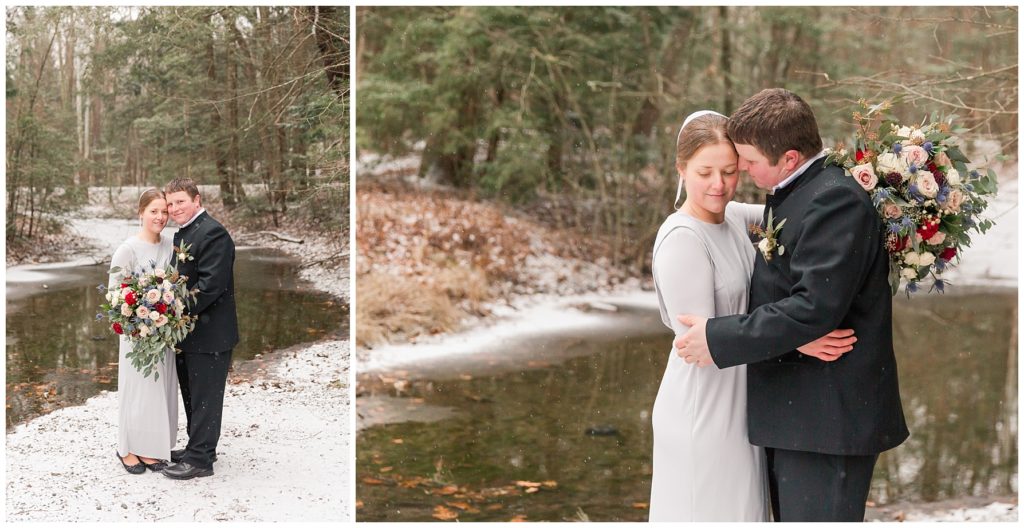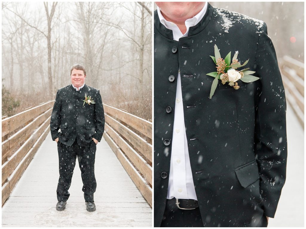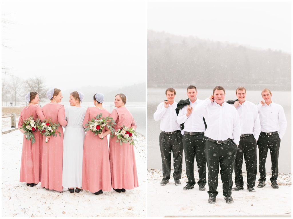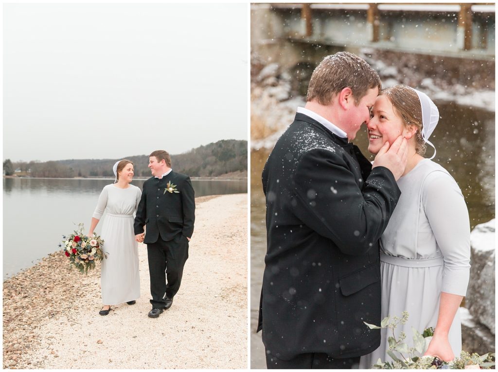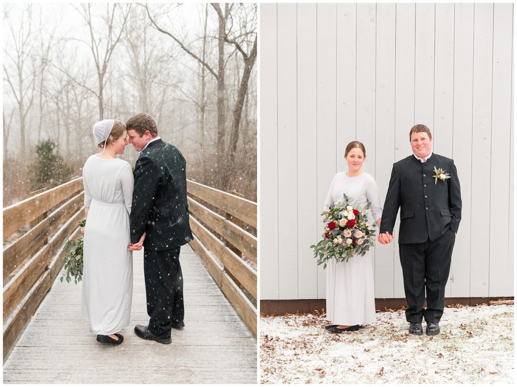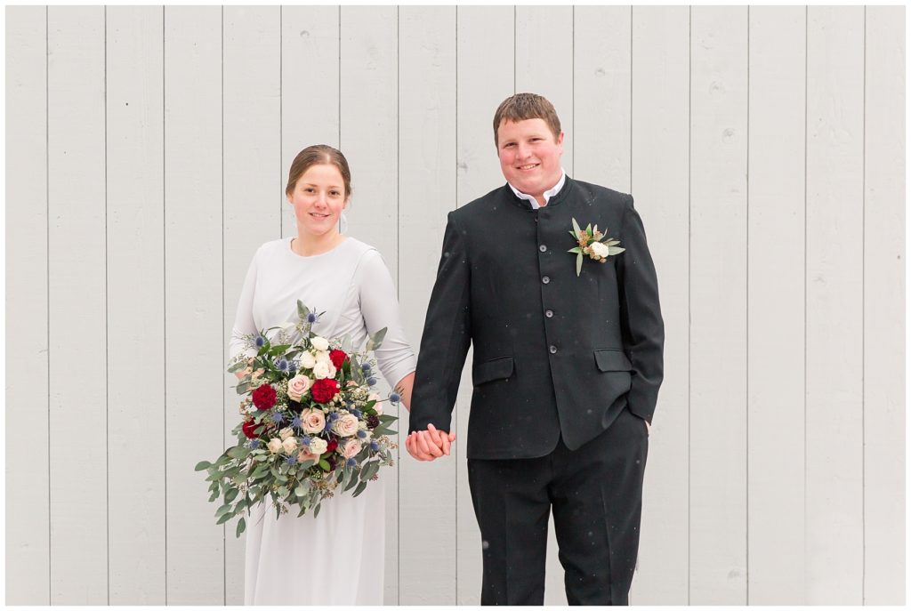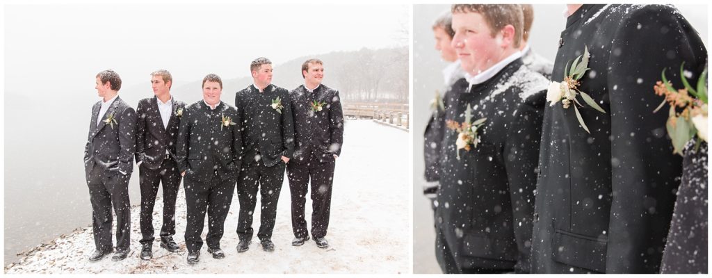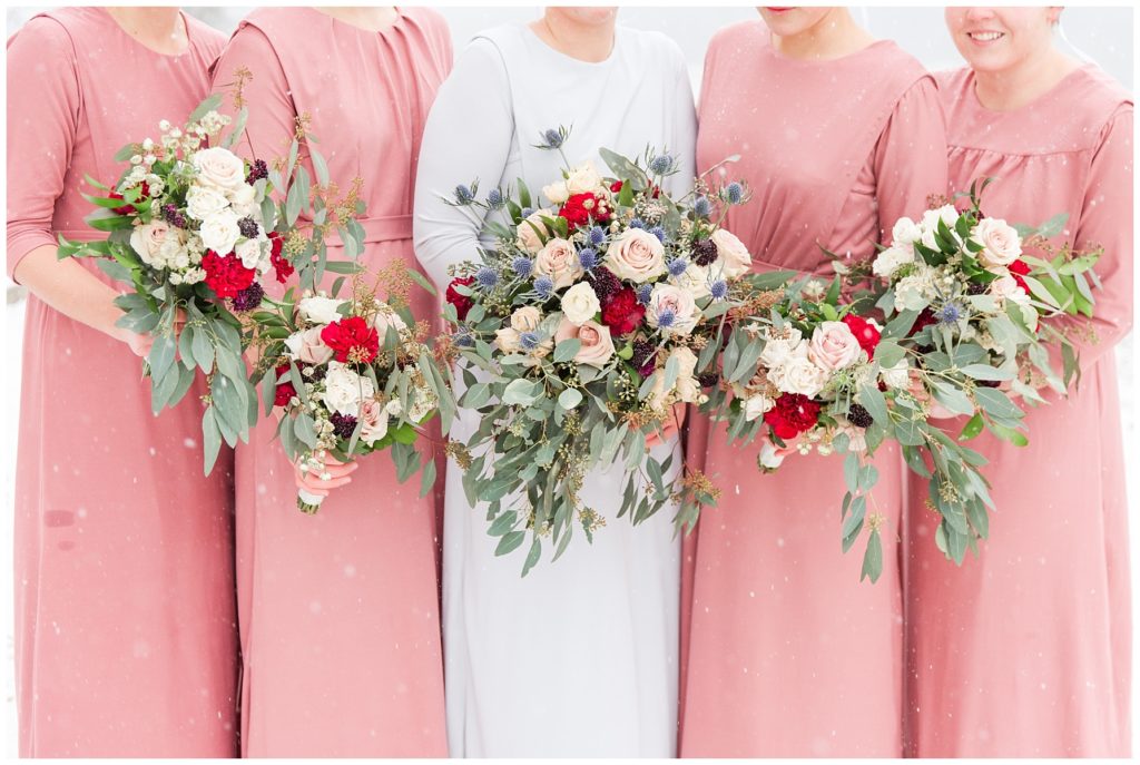 The first wedding of 2020 for Higher Focus Images was this absolutely gorgeous one! Curtis and Laura were married on a snowy day in Perry County, only a short drive from where we live. It started out very dark and gray, with leaden skies- then suddenly it started snowing and everything was white almost instantly! We were so happy it did because her colors of rose and blue were breathtaking with all that snow for a background. And those florals… I cannot get over how beautiful they were. Laura arranged them herself! The photos at the park did get cut a little short when there was just too much snow coming down and everyone was getting too cold! But I could have photographed everything all day.