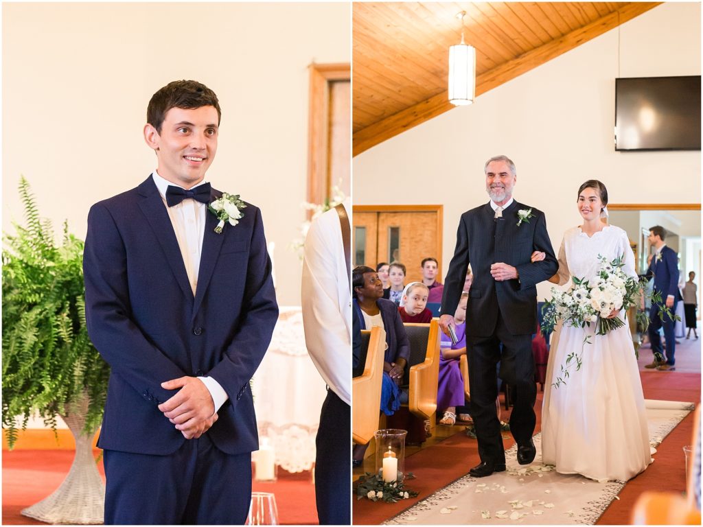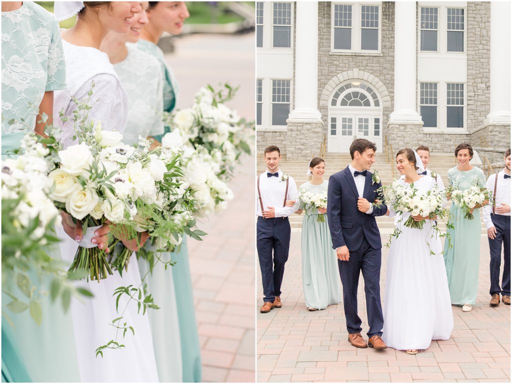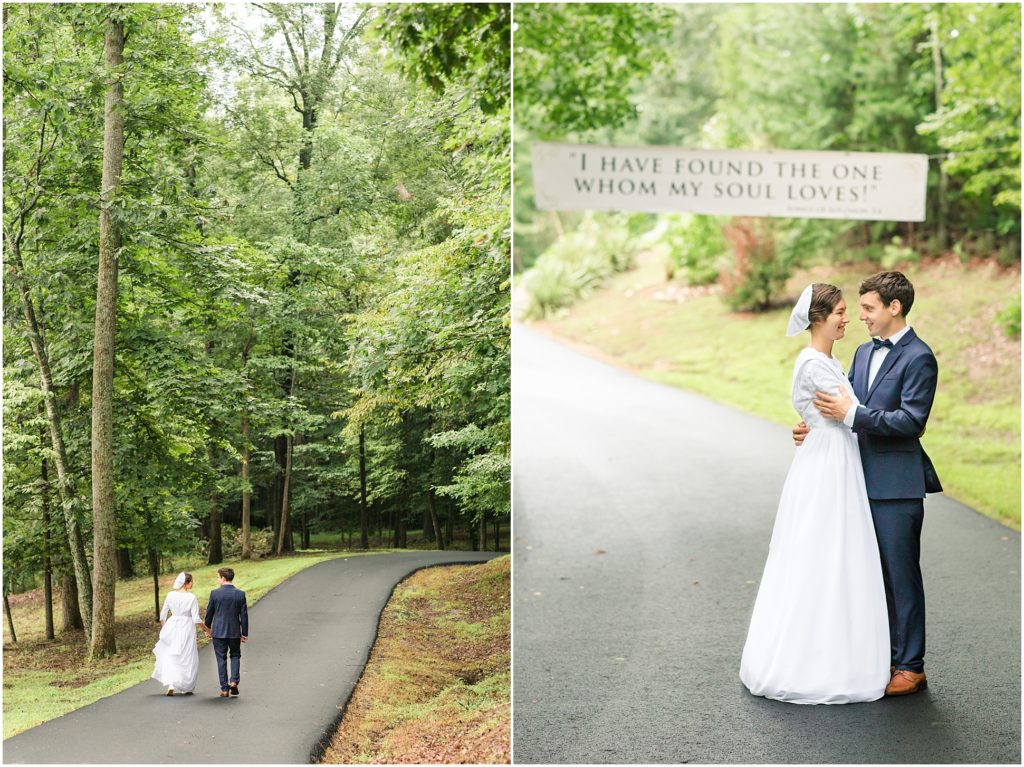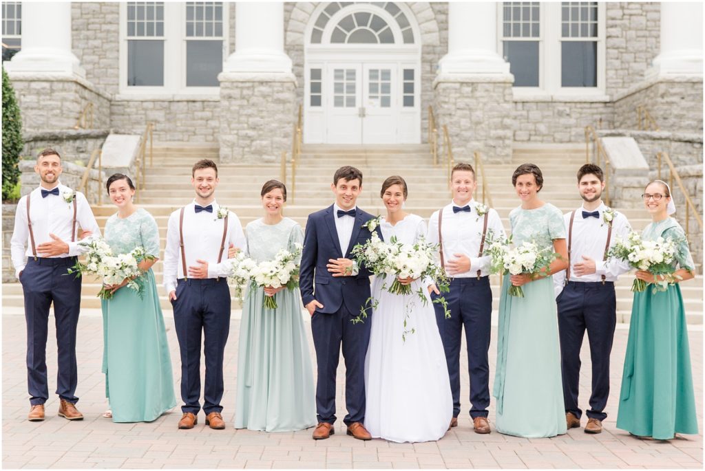 Where do I begin with this wedding!? Every detail was simply stunning. We began in the morning with a few detail and getting ready photos and her parent’s beautiful Victorian home. They shared a first look there as well, and we had to take a few photos with the sign the bride’s dad hung up as a surprise! After that we headed to Harrisonburg for portraits at a beautiful college. The rain stopped just as we began portraits! Due to a few unfortunate circumstances, the arrival of the bouquet was delayed and we had to do some of the portraits without it. But when it did arrive I couldn’t get over how stunning it was! The groom’s sister Rebekah Barkman did an absolutely amazing job on all the florals.