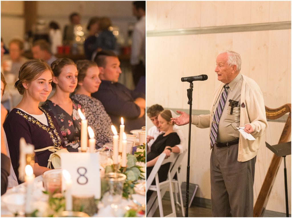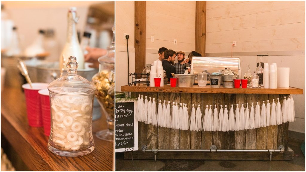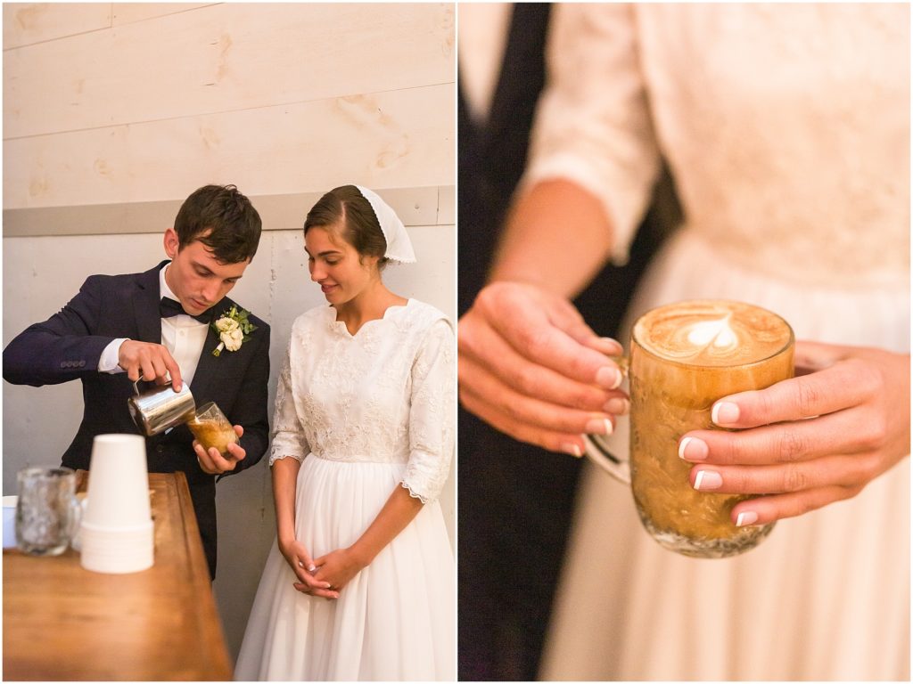 We grabbed a few portraits after the reception in a slight drizzle… And then the reception began, held at Frieden Farms, a lovely renovated barn in the Shenandoah Valley. So many stunning details were brought together by friends and family. Candles and dimmed lights lent such a romantic atmosphere. And there was even a latte bar, y’all! Sower’s Harvest Cafe brought their espresso machine and made custom drinks ( with latte art!) for all the guests. It was a big hit with everyone! The food was fantastic and the dessert ice cream bar was adorable. But the best part was the atmosphere of love and celebration surrounding Hans and Chandra.. and it is no wonder they are loved, with the way they love and serve others!