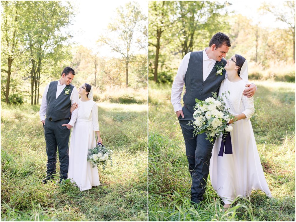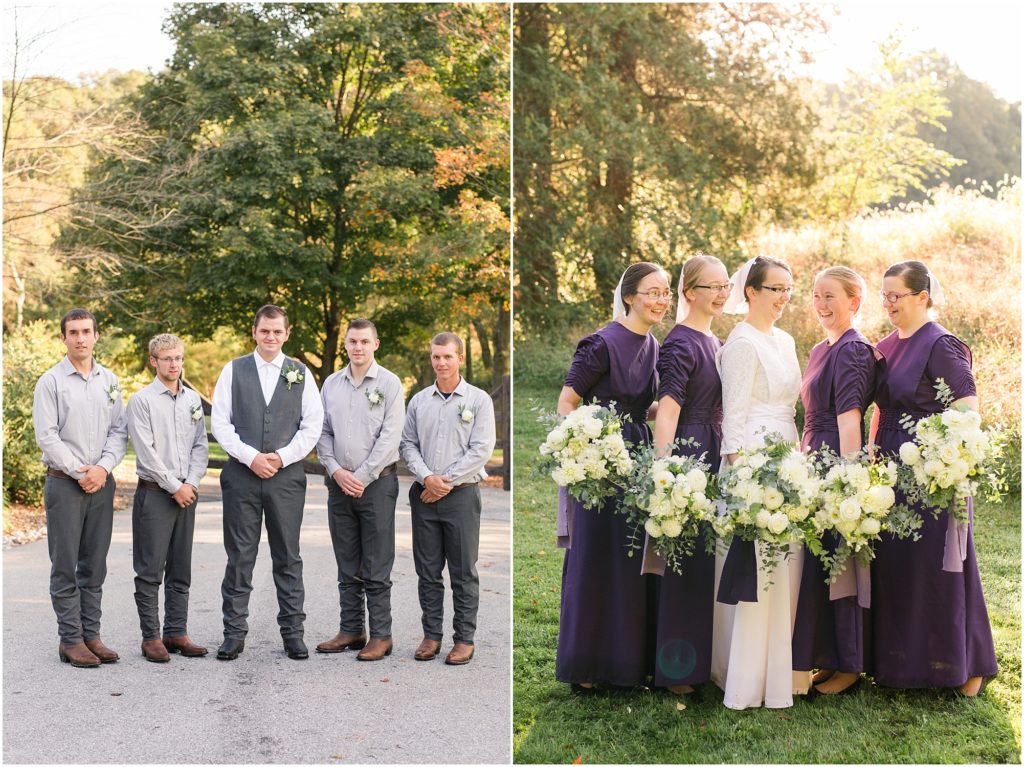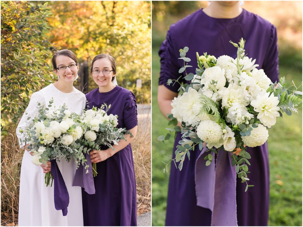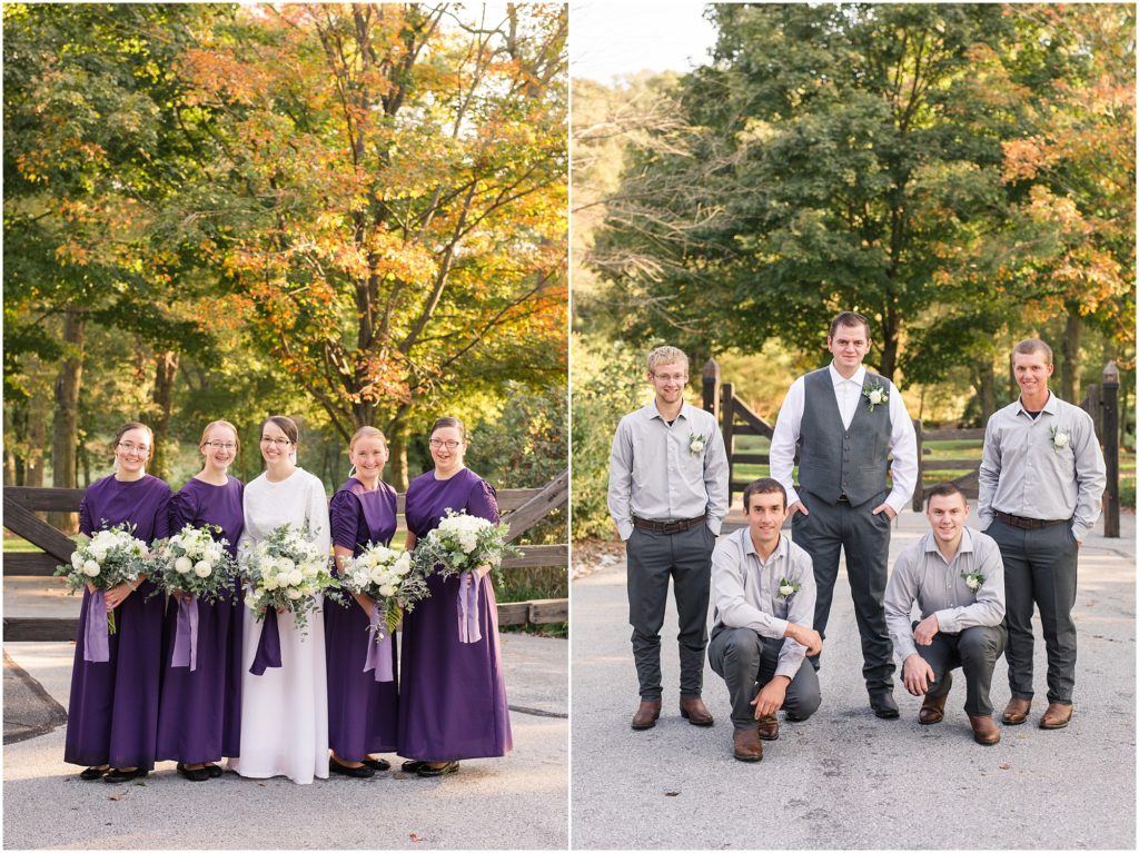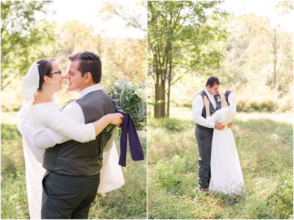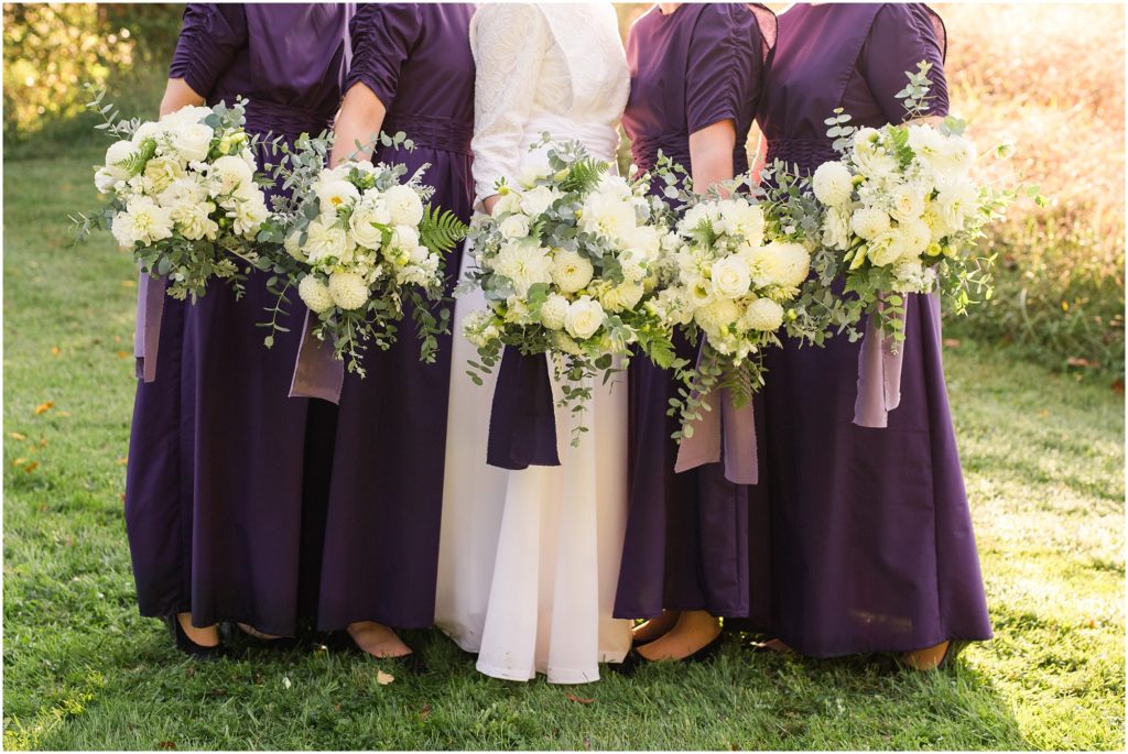 Andrew & Abigail were married on the most perfect October day. We started out in the morning with their first look at Wolf’s Hollow Park, tramping around in the dewy grass as the sun came over the hill and down into the hollow. The bridal party joined us there as well. The girls wore beautiful deep purple dresses and carried white and green bouquets made by Pinewood and Posies. They were so gorgeous!
