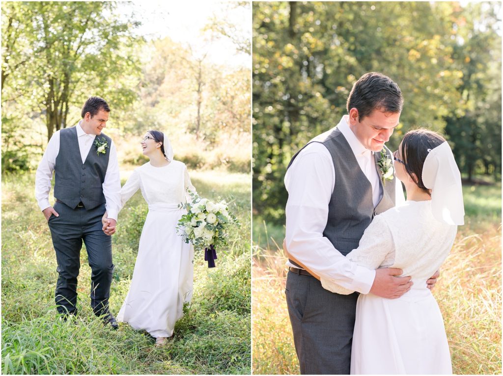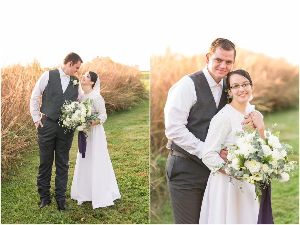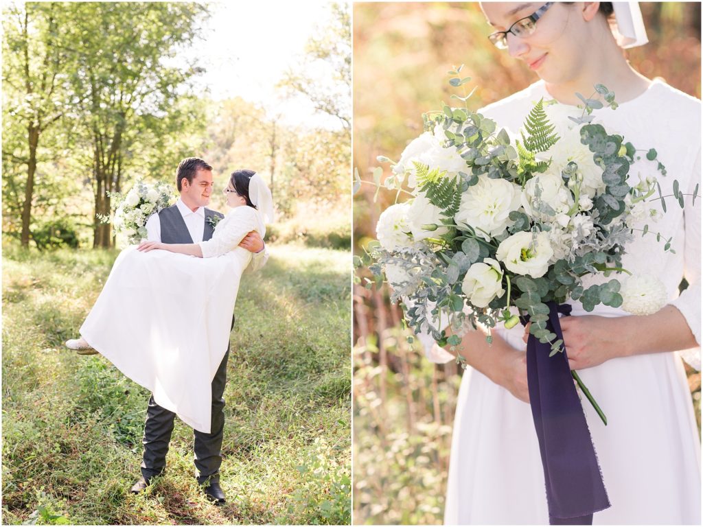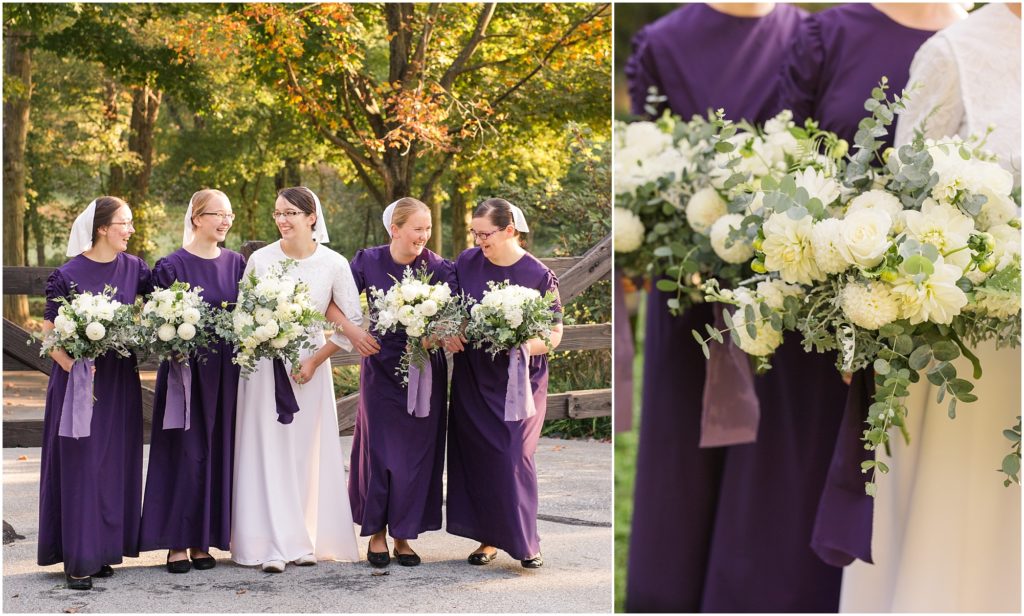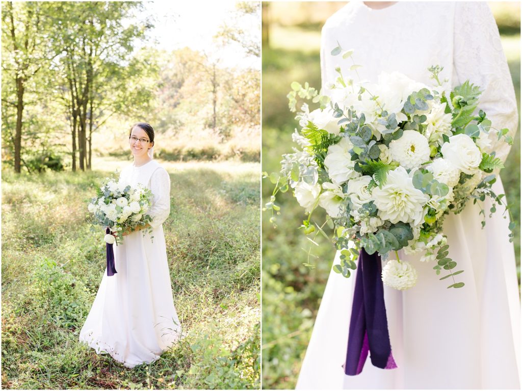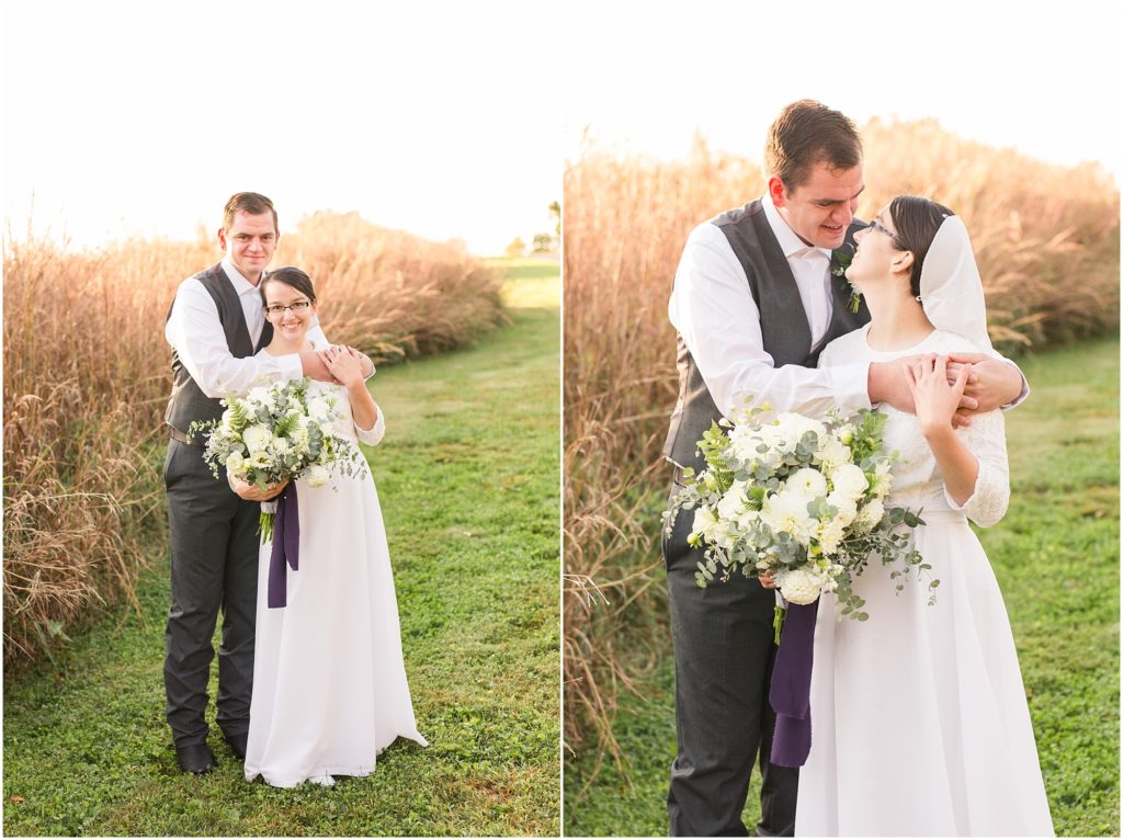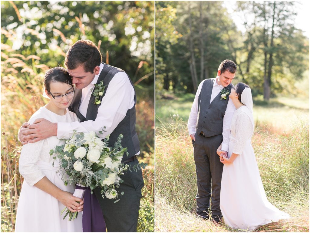 Andrew & Abigail were married on the most perfect October day. We started out in the morning with their first look at Wolf’s Hollow Park, tramping around in the dewy grass as the sun came over the hill and down into the hollow. The bridal party joined us there as well. The girls wore beautiful deep purple dresses and carried white and green bouquets made by Pinewood and Posies. They were so gorgeous!