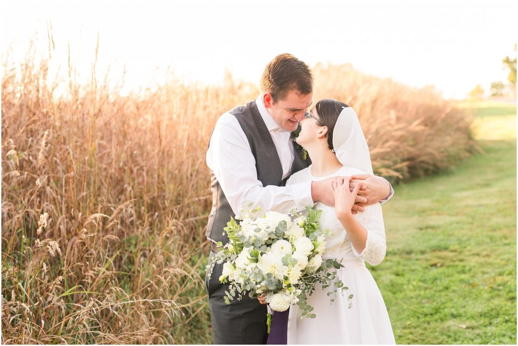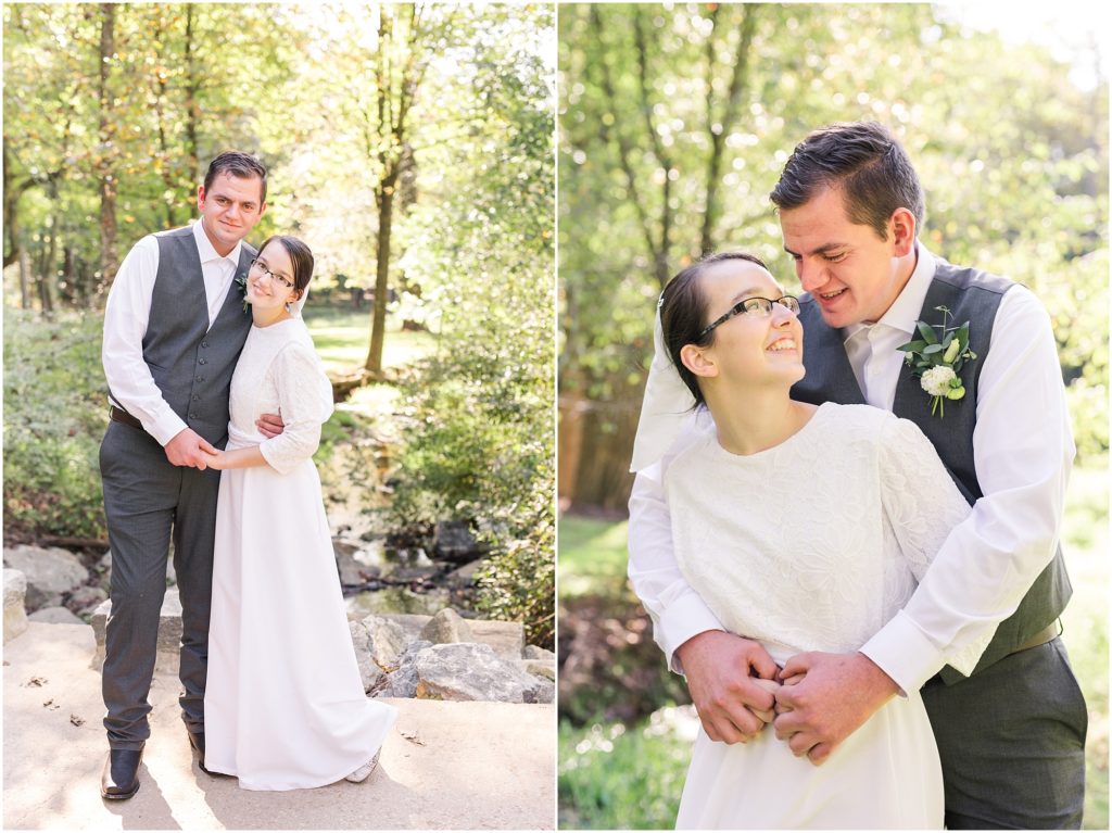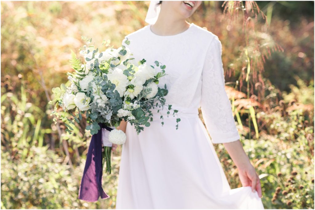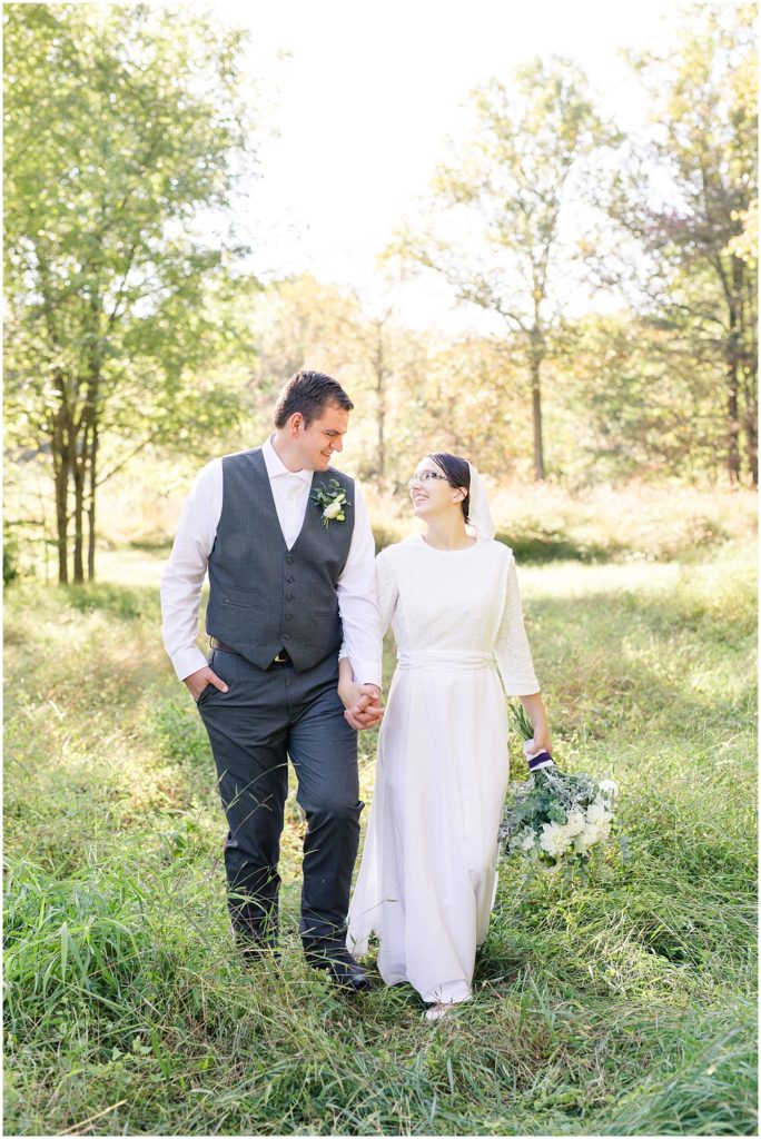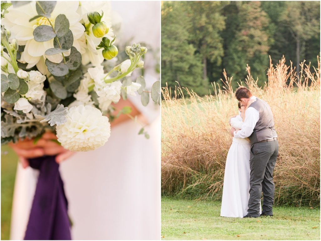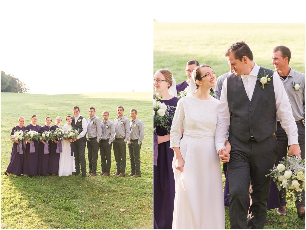 Andrew & Abigail were married on the most perfect October day. We started out in the morning with their first look at Wolf’s Hollow Park, tramping around in the dewy grass as the sun came over the hill and down into the hollow. The bridal party joined us there as well. The girls wore beautiful deep purple dresses and carried white and green bouquets made by Pinewood and Posies. They were so gorgeous!