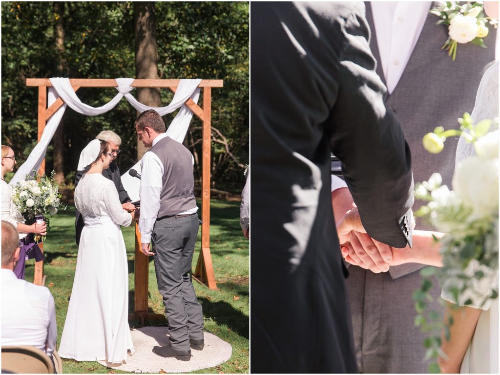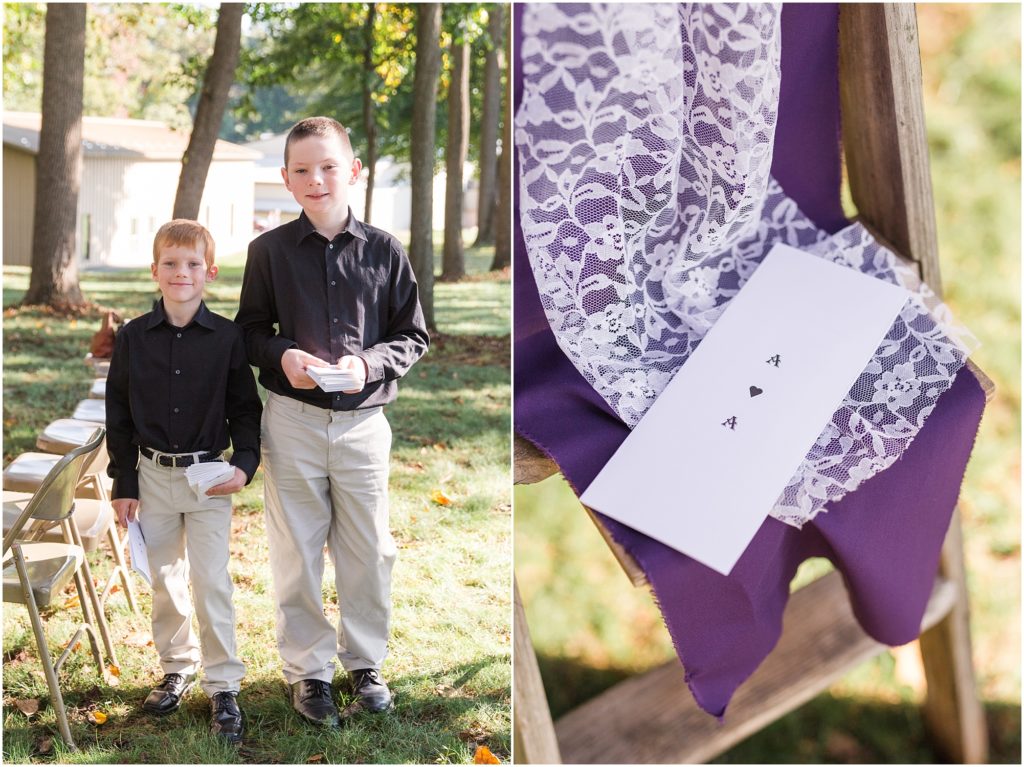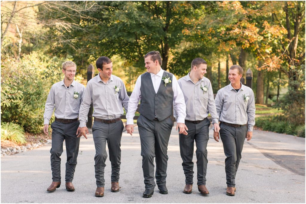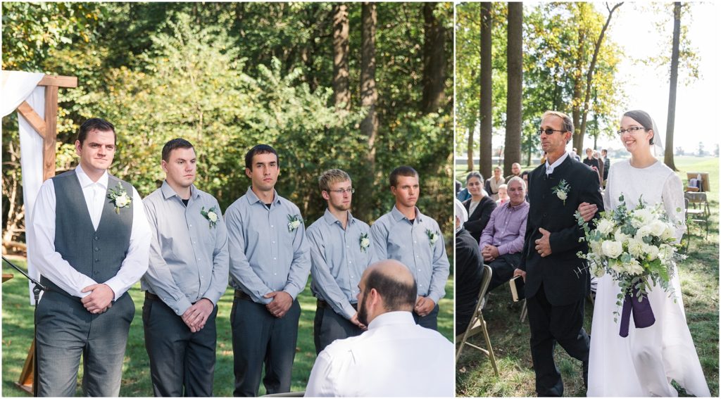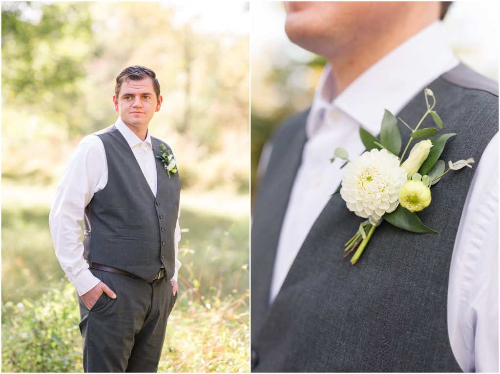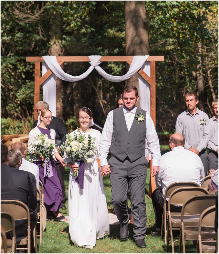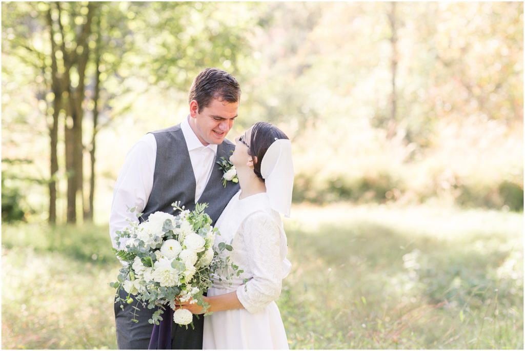 Andrew & Abigail were married on the most perfect October day. We started out in the morning with their first look at Wolf’s Hollow Park, tramping around in the dewy grass as the sun came over the hill and down into the hollow. The bridal party joined us there as well. The girls wore beautiful deep purple dresses and carried white and green bouquets made by Pinewood and Posies. They were so gorgeous!