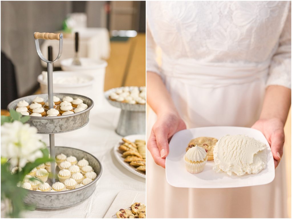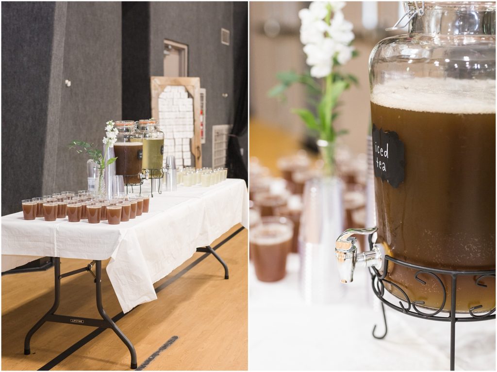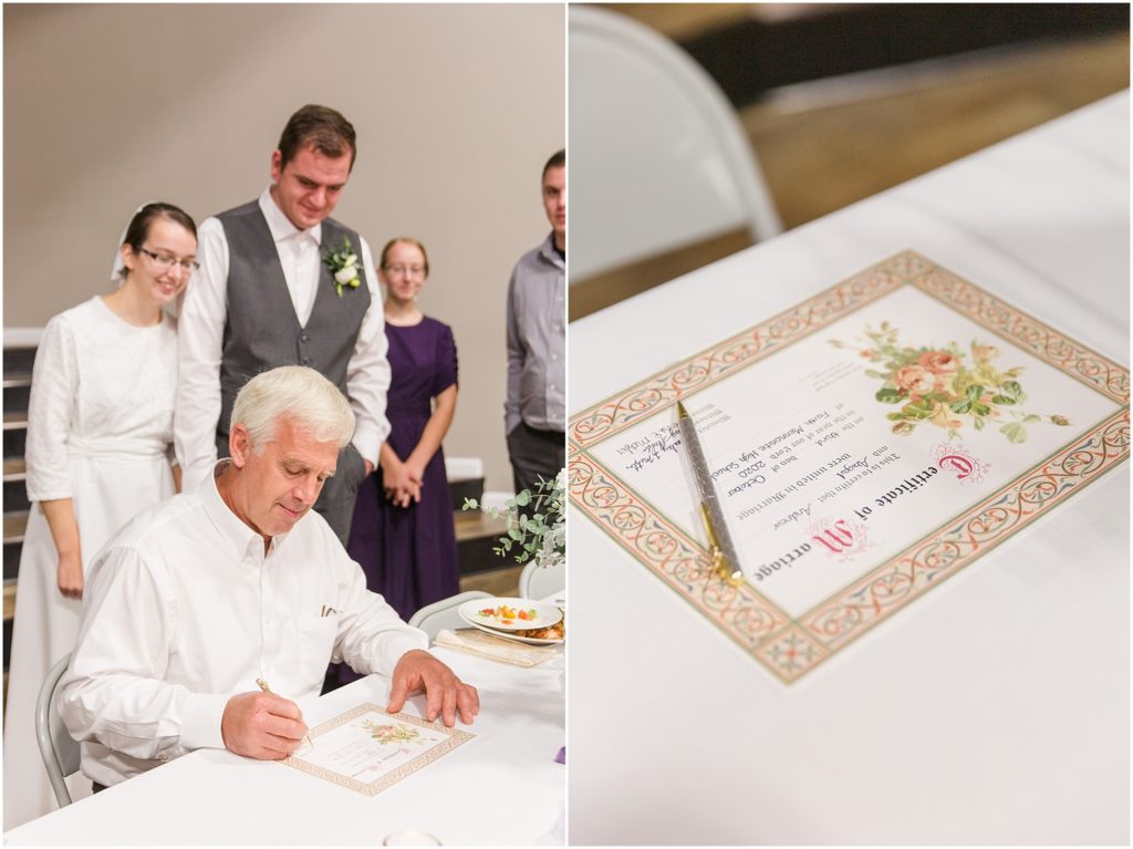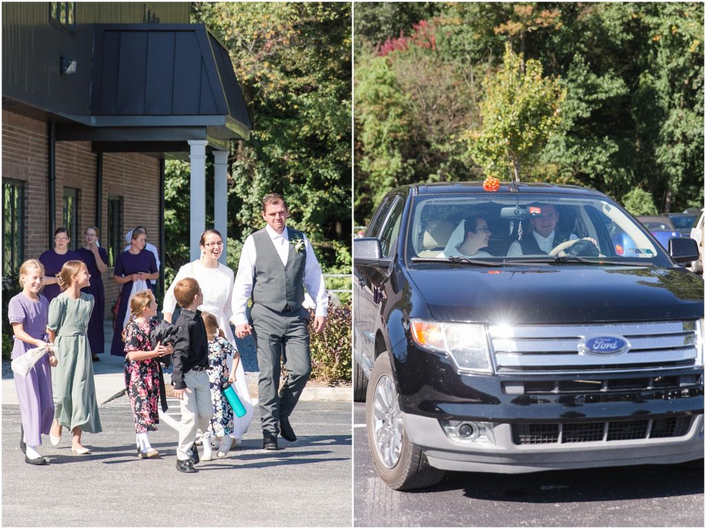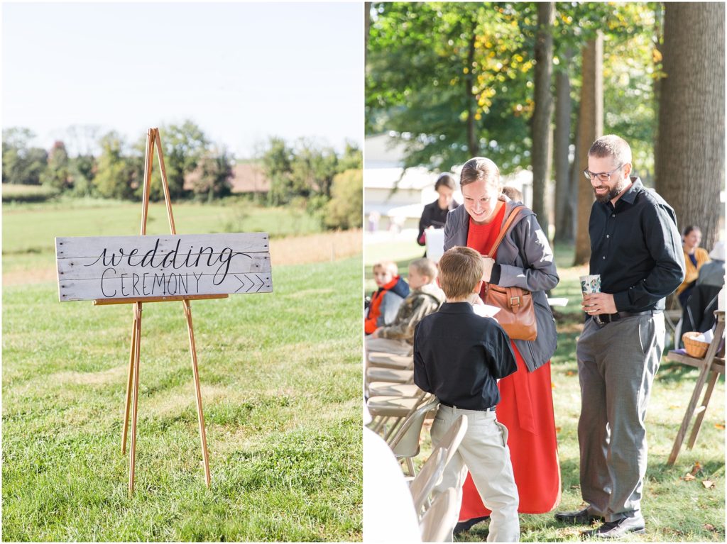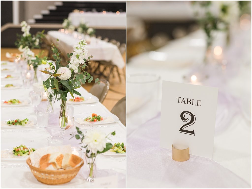 The ceremony was held outdoors under the tall trees after their rented church backed out on them. Thankfully the October sunshine warm and it was lovely! The reception was held at Faith Mennonite High School, with beautiful dahlias and candles.