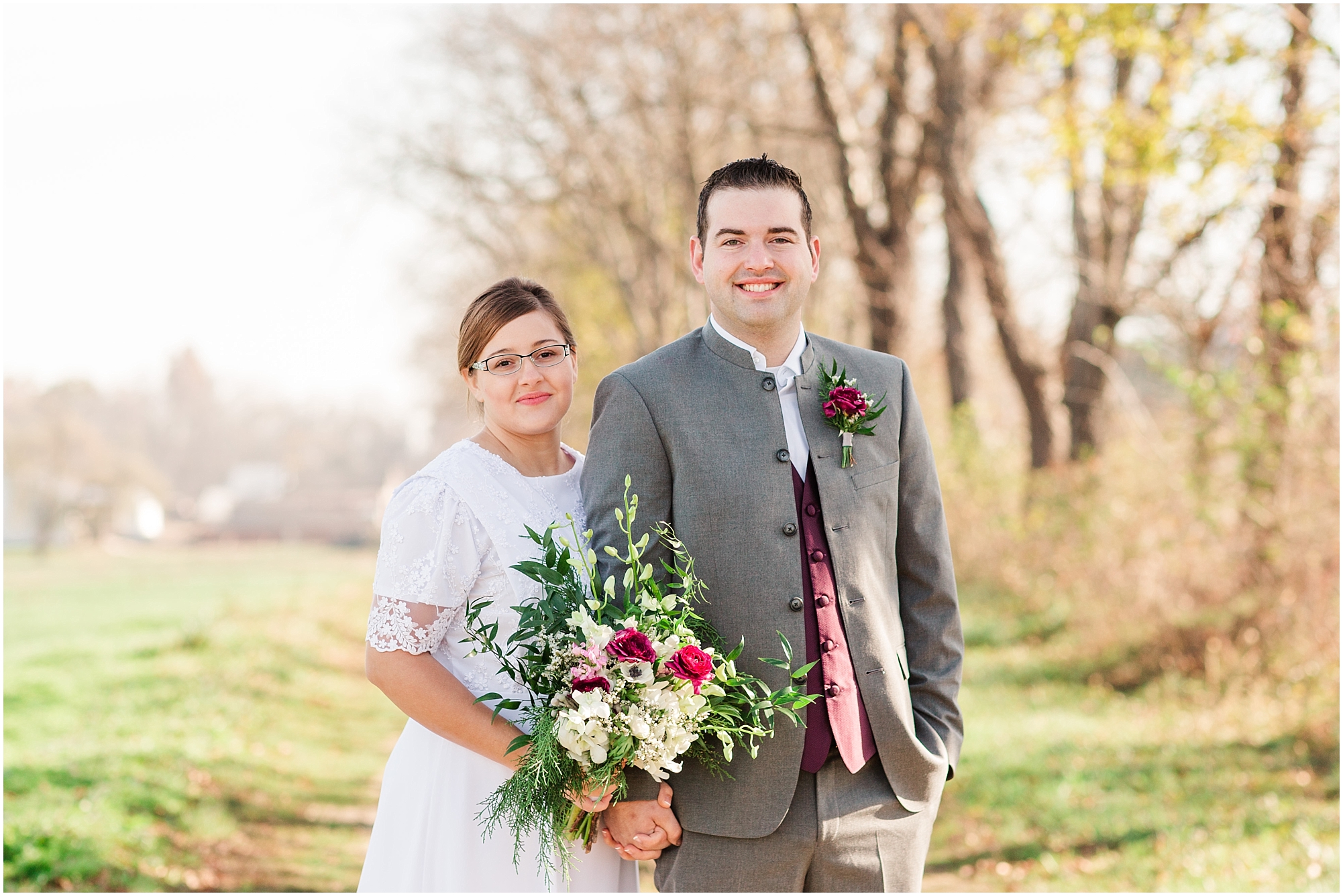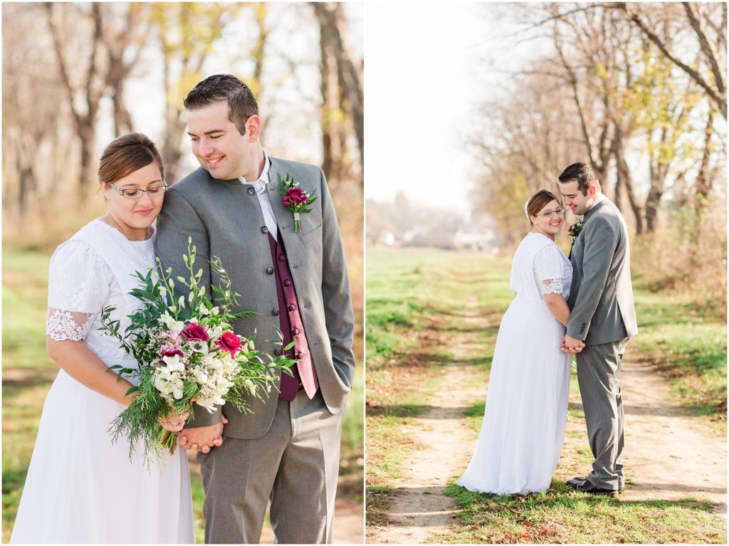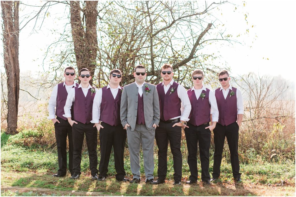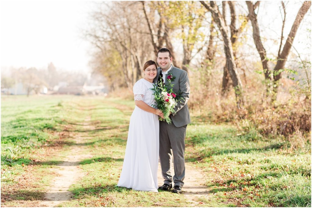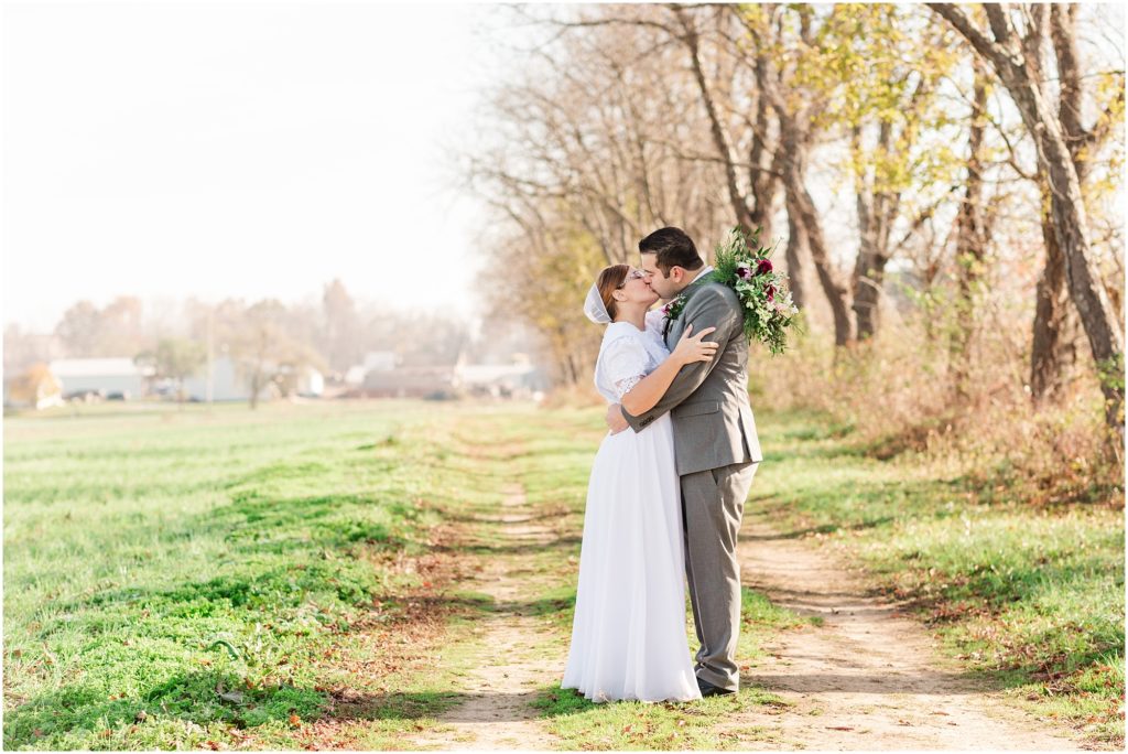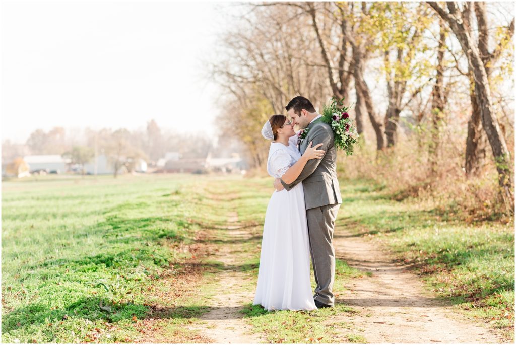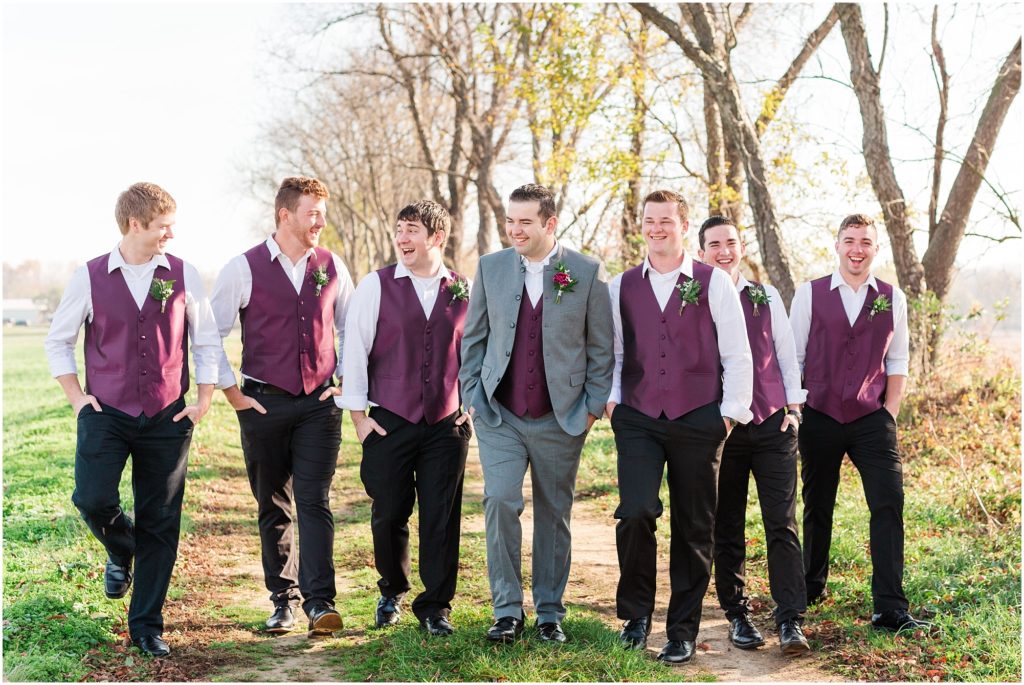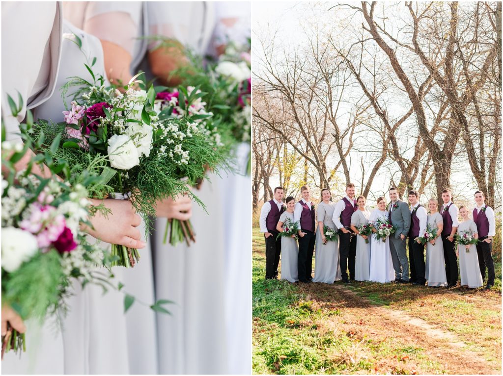 Chad and Ivy shared their first look under the colorful autumn trees along the lane. We started out with portraits at the neighbors barn and then met the bridal party at one of the farm field lanes. They have such a fun group of friends! Trucks were a central theme of the day as that is Chad’s family occupation. He and his co drivers had all their trucks at the wedding venue, so of course we had to do some pictures with those!