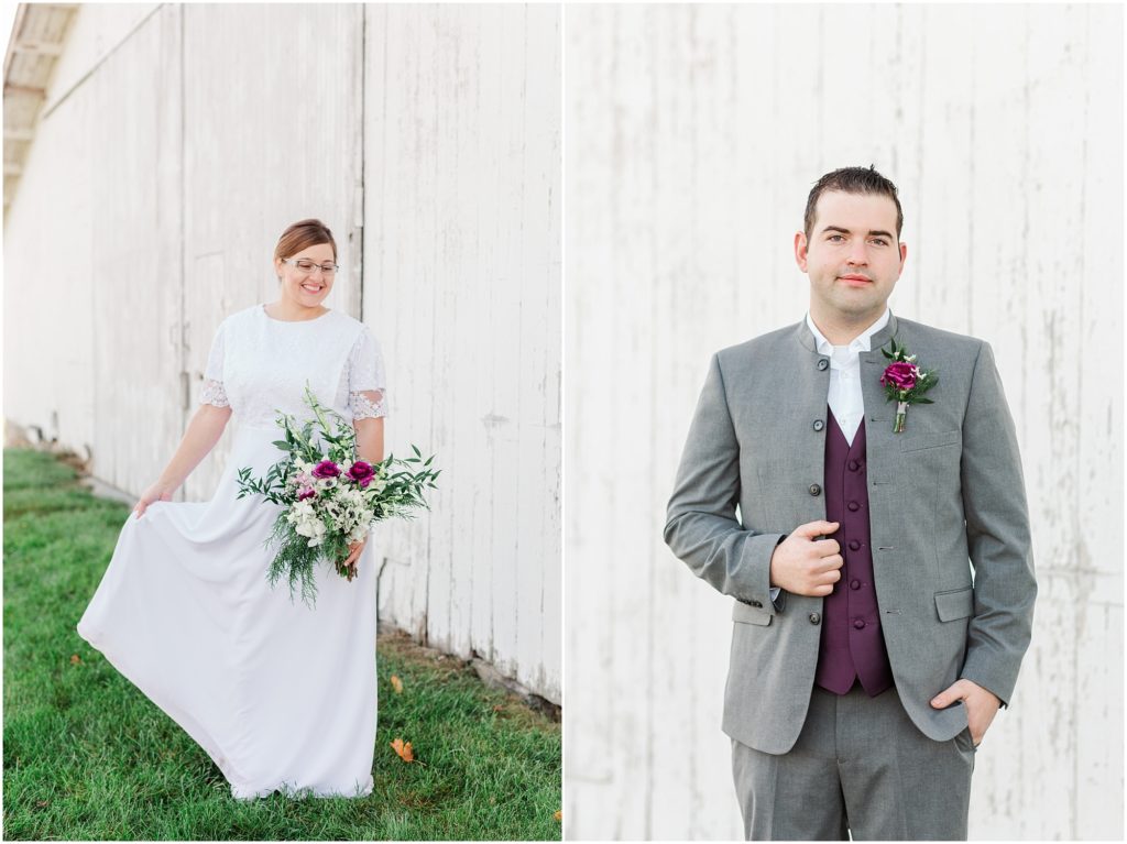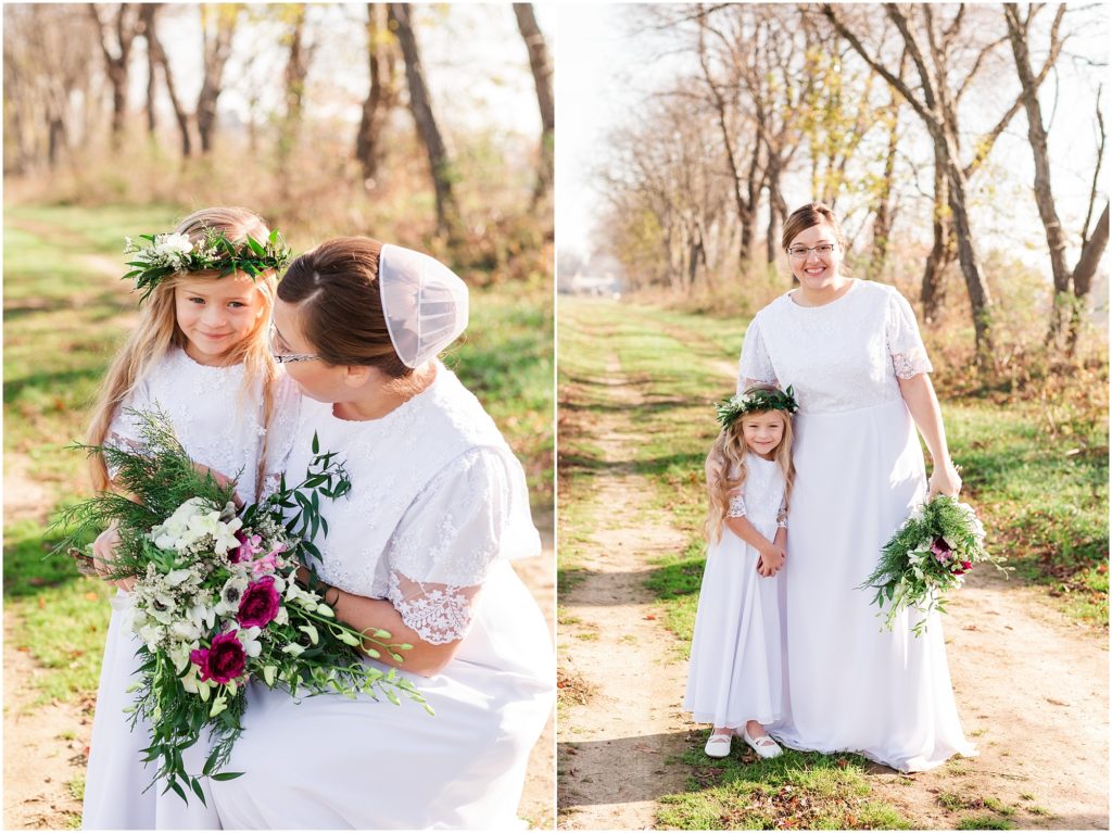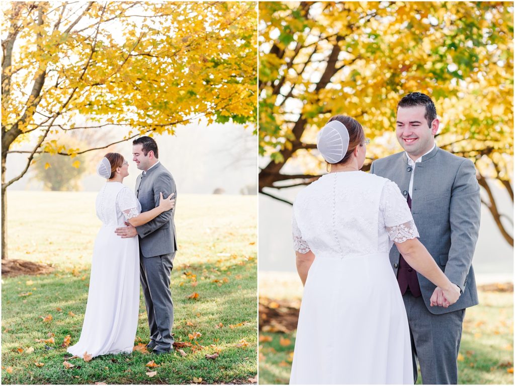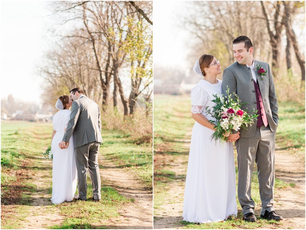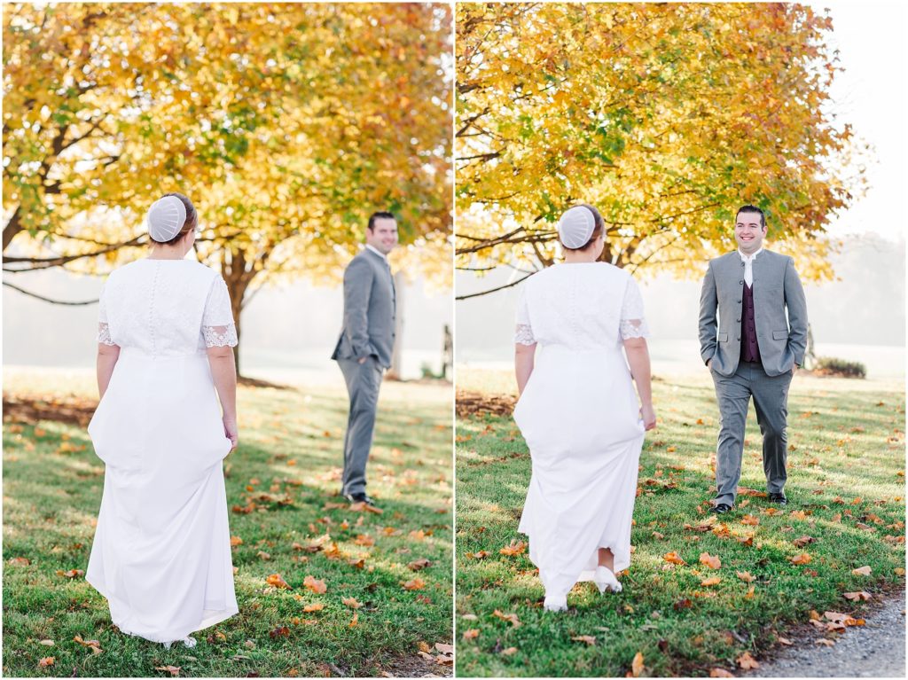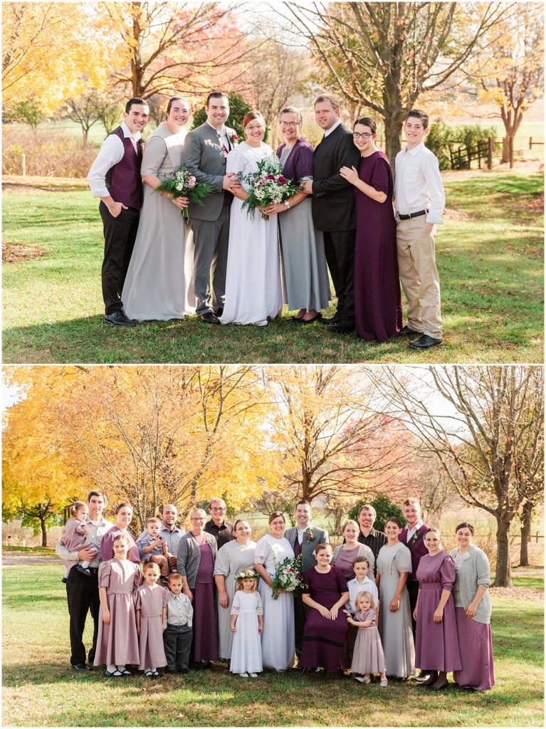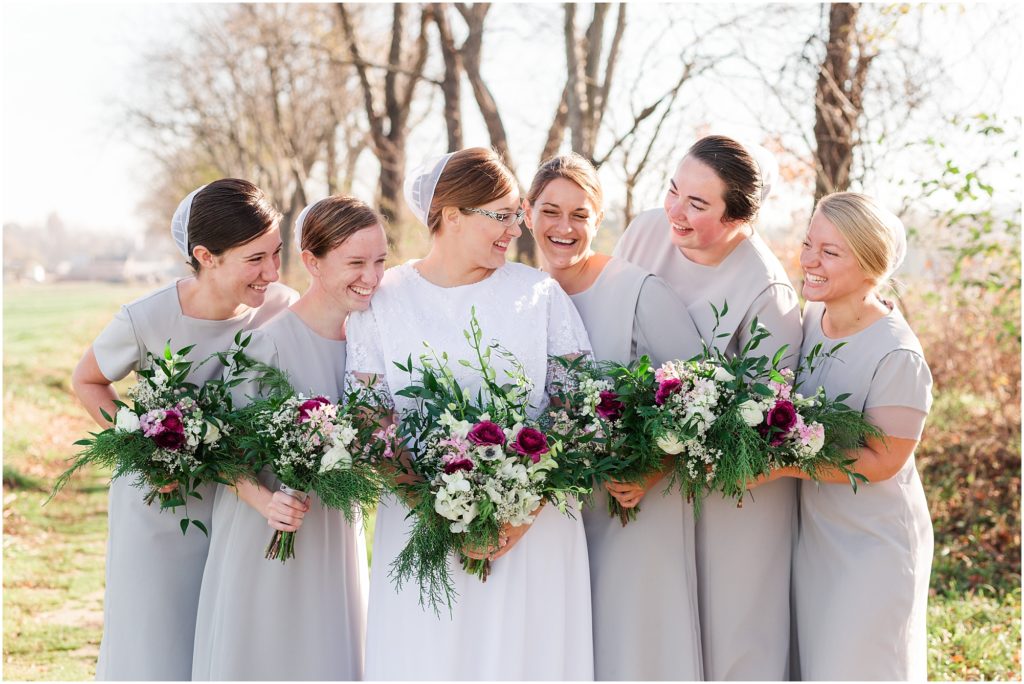 Chad and Ivy shared their first look under the colorful autumn trees along the lane. We started out with portraits at the neighbors barn and then met the bridal party at one of the farm field lanes. They have such a fun group of friends! Trucks were a central theme of the day as that is Chad’s family occupation. He and his co drivers had all their trucks at the wedding venue, so of course we had to do some pictures with those!