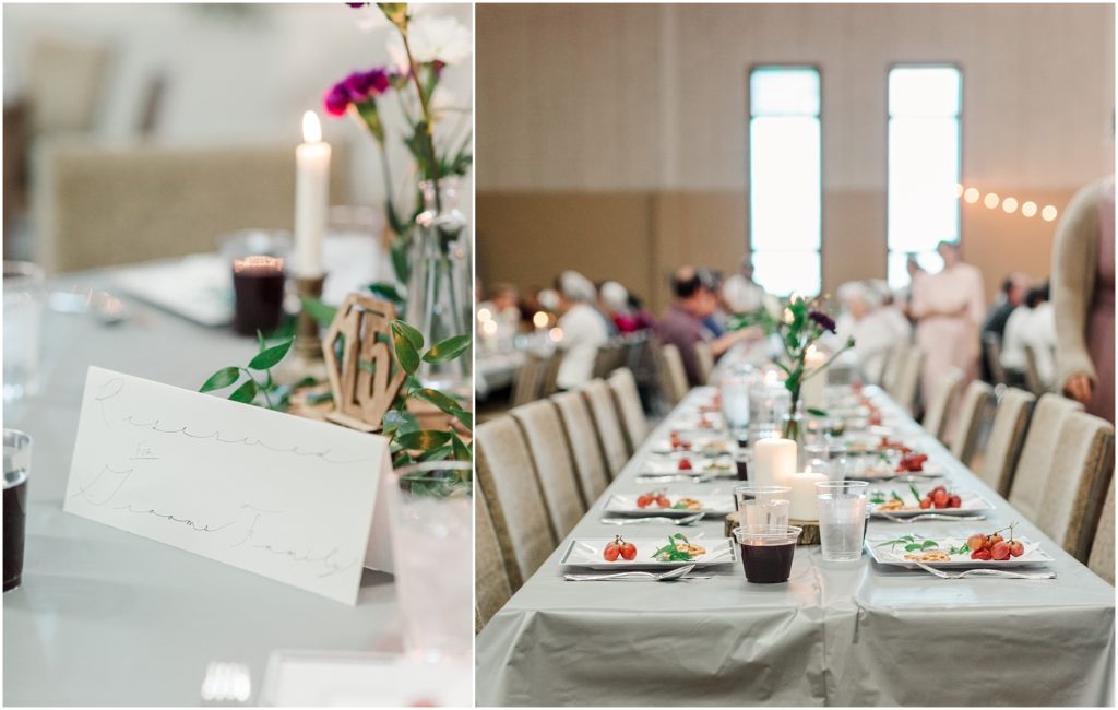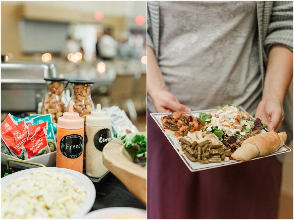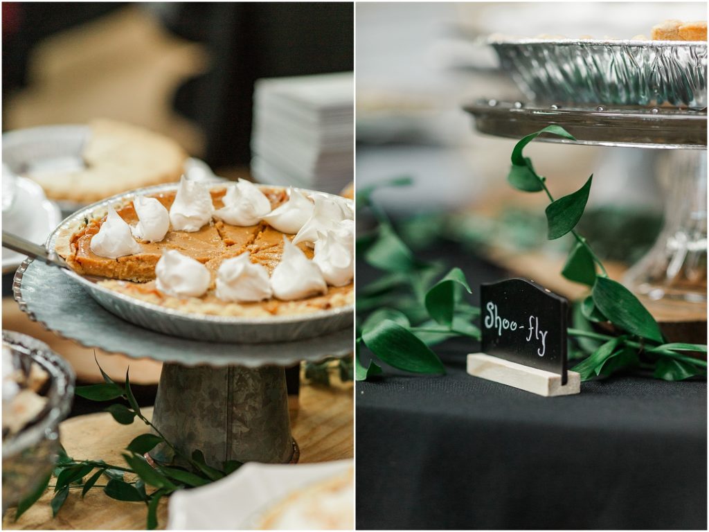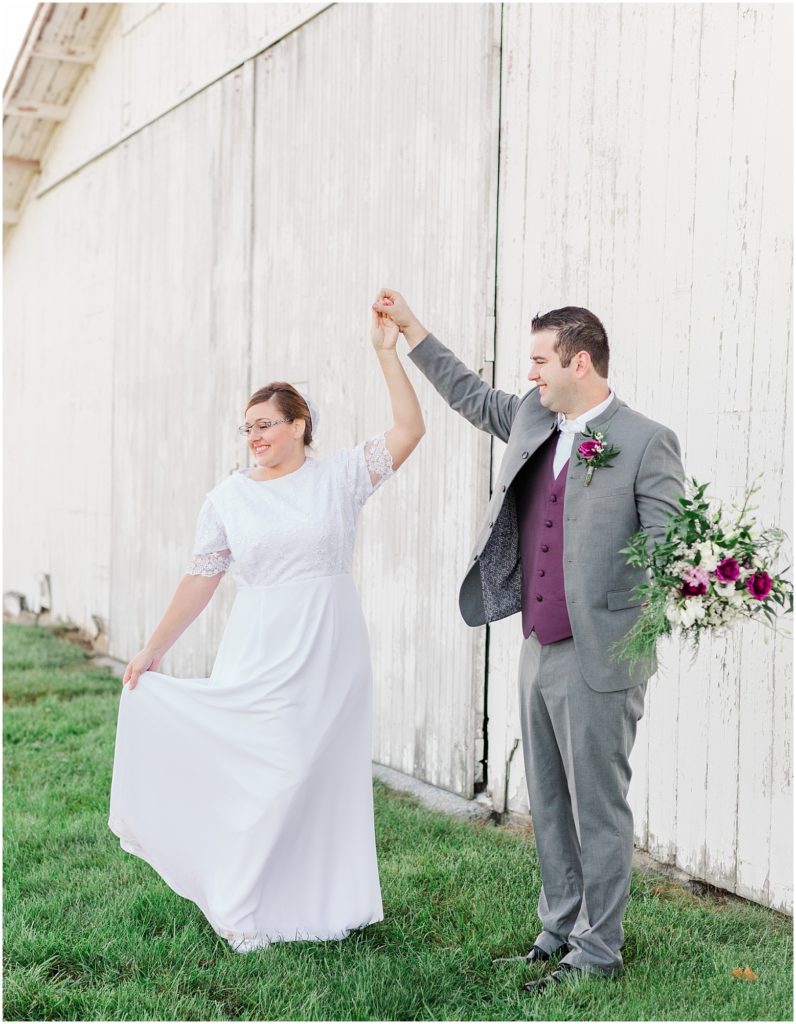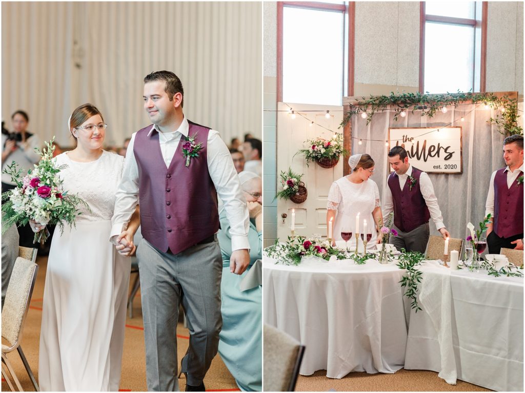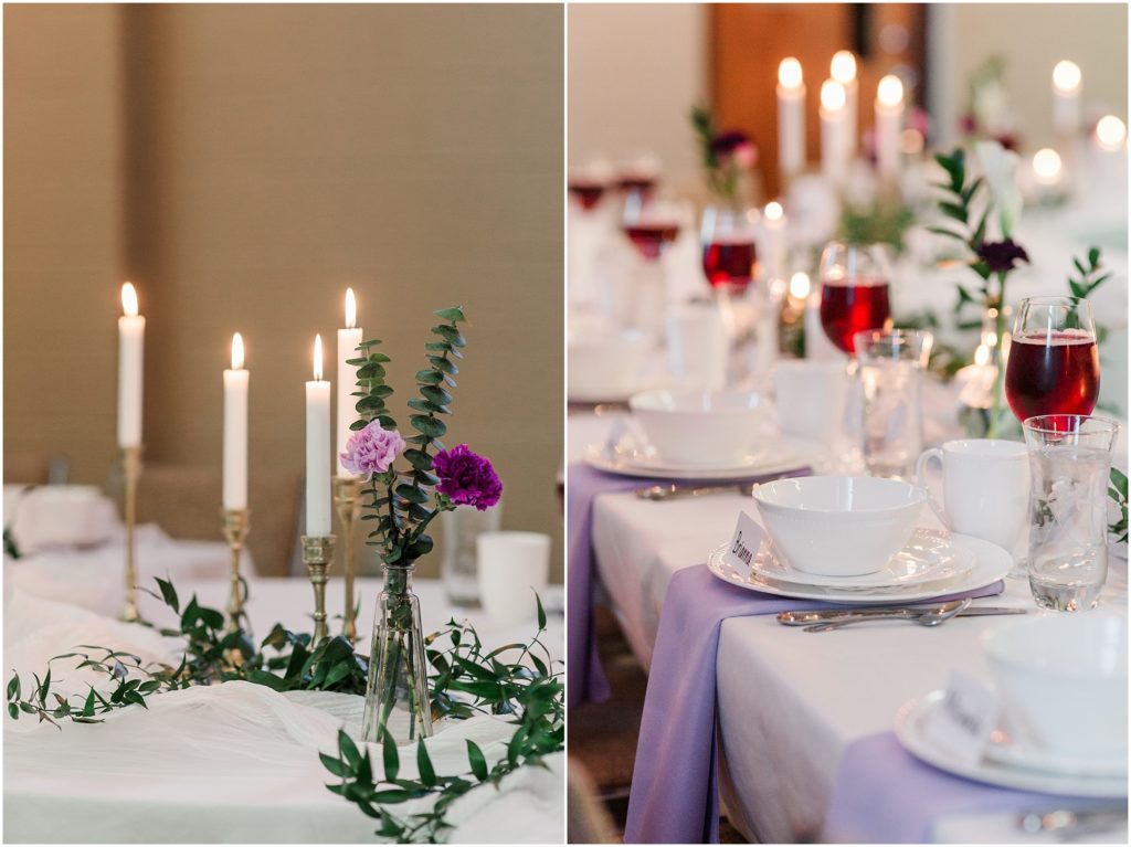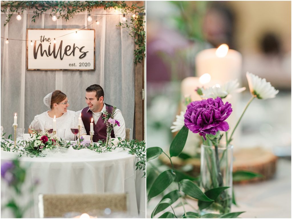 The reception was beautifully decorated with purple and grey, with lots of glowy light and candles. The meal was catered by Country Cooks Catering & Bakery and it was absolutely amazing! The pulled pork was perfection. Dessert was a variety of delicious pies. ( I have to say that one of my favorite parts of wedding receptions is getting to enjoy the wedding meals! 🙂 )