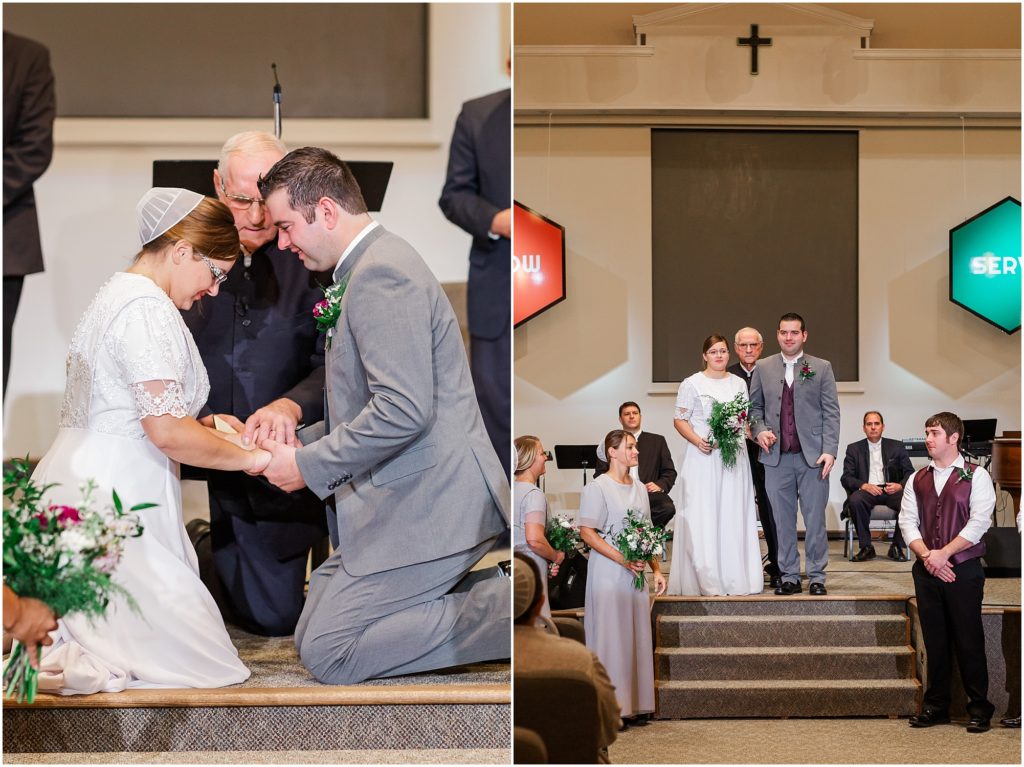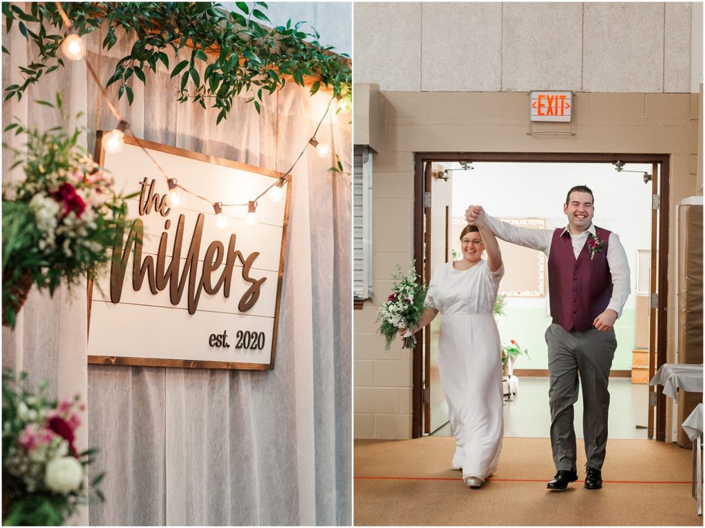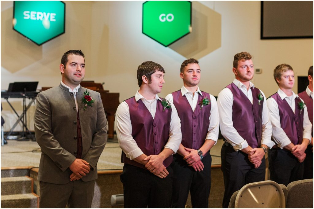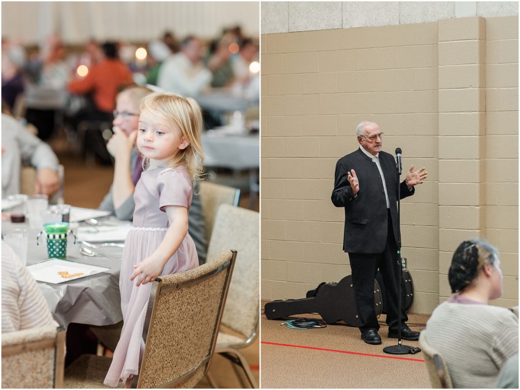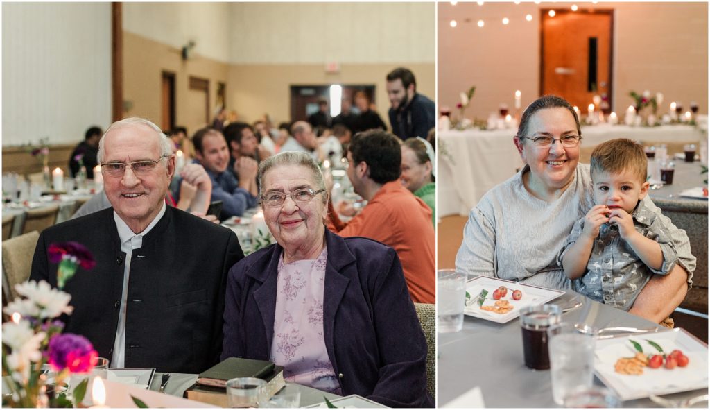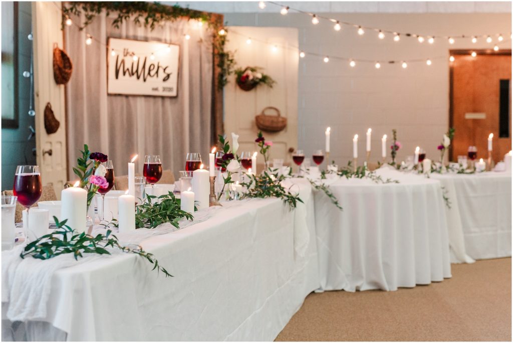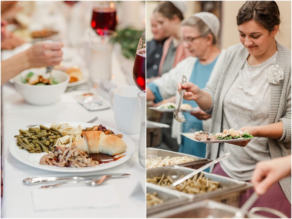 The reception was beautifully decorated with purple and grey, with lots of glowy light and candles. The meal was catered by Country Cooks Catering & Bakery and it was absolutely amazing! The pulled pork was perfection. Dessert was a variety of delicious pies. ( I have to say that one of my favorite parts of wedding receptions is getting to enjoy the wedding meals! 🙂 )