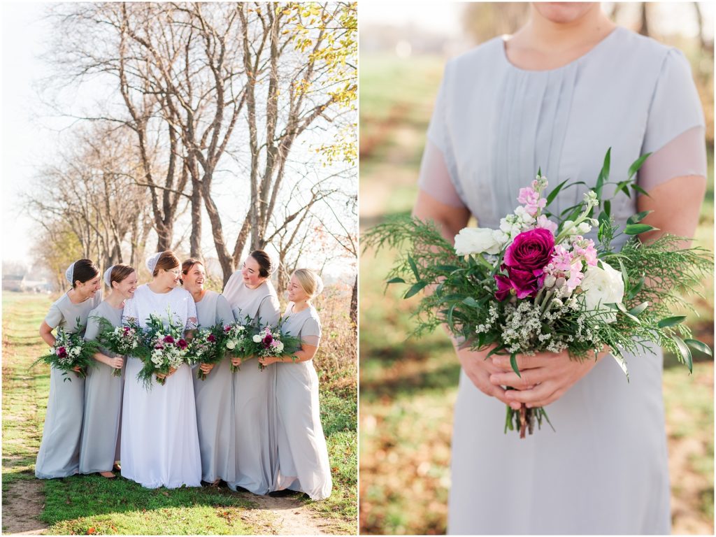 Ivy decided to do a first look with her bridesmaids and it was so fun! Every bride needs friends to fuss over you on your wedding day 🙂 The girl’s dresses were such a beautiful shade of grey with an elegant sheer overlay and the white and purple flowers complemented them perfectly.
