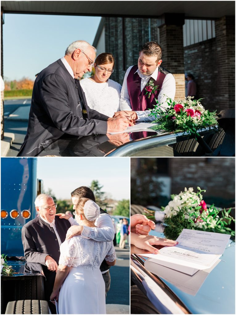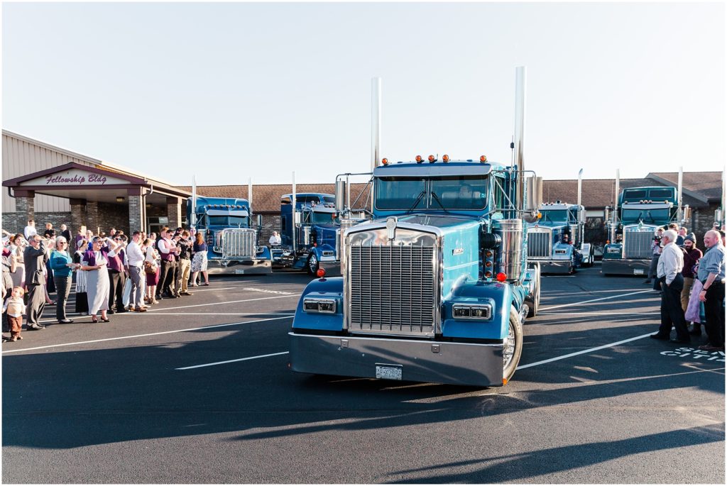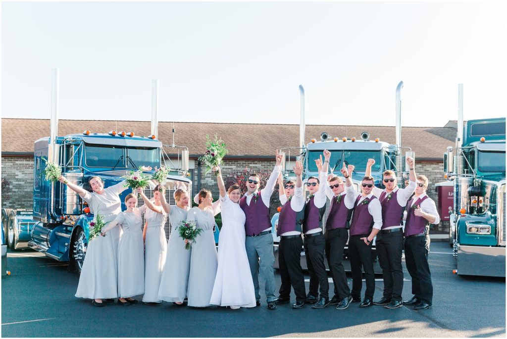 After the reception, we went outside with the bridal party to grab a few more photos with the semis. The newlyweds ended up signing their marriage license on the back of one of the semis which was quite fitting for them.