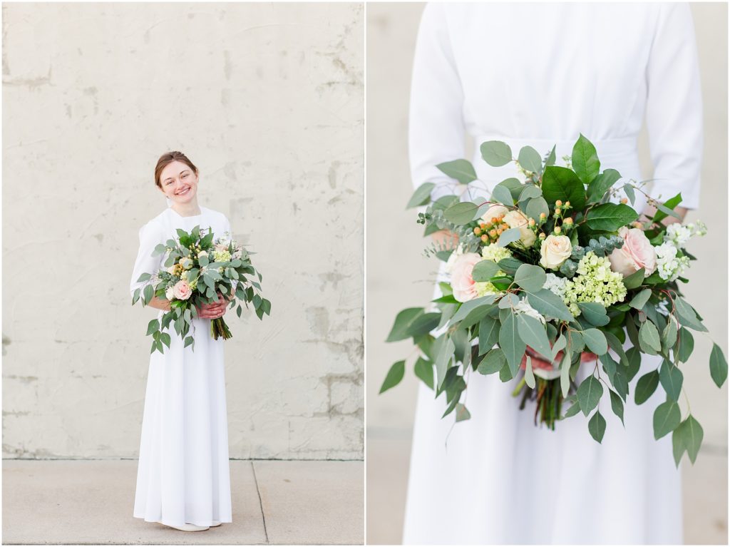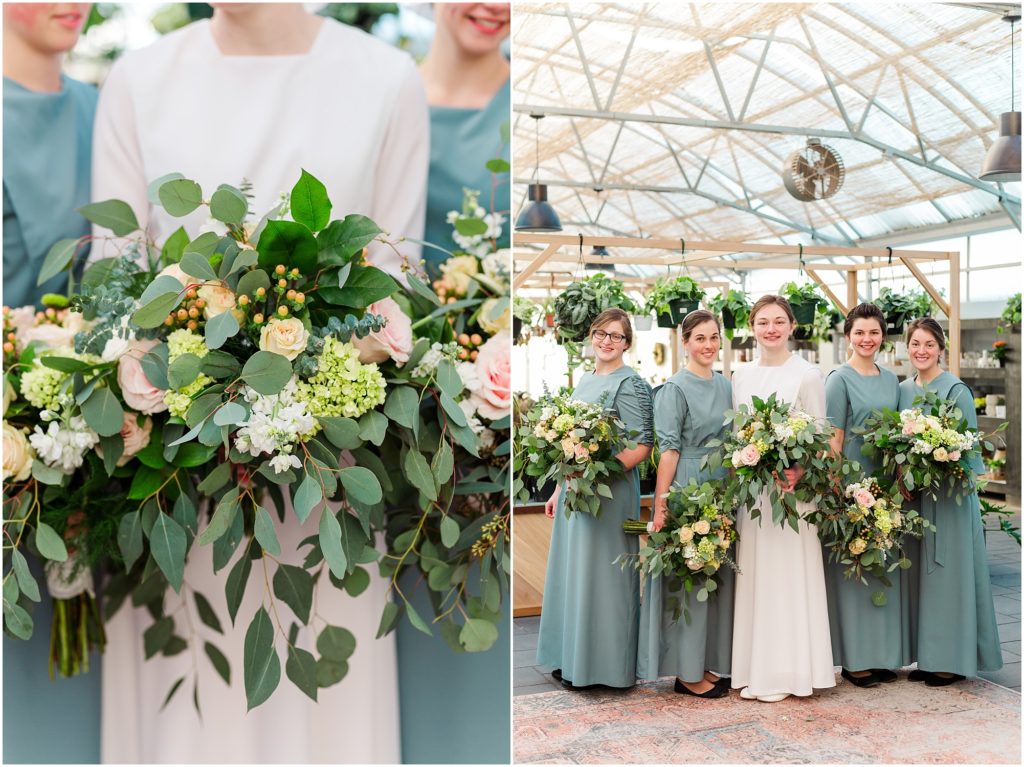 The bridesmaids wore eucalyptus colored dresses and carried beautiful flowy bouquets with lots of greenery- my favorite thing! The bride’s sister in law did such a wonderful job on the florals for the entire day.