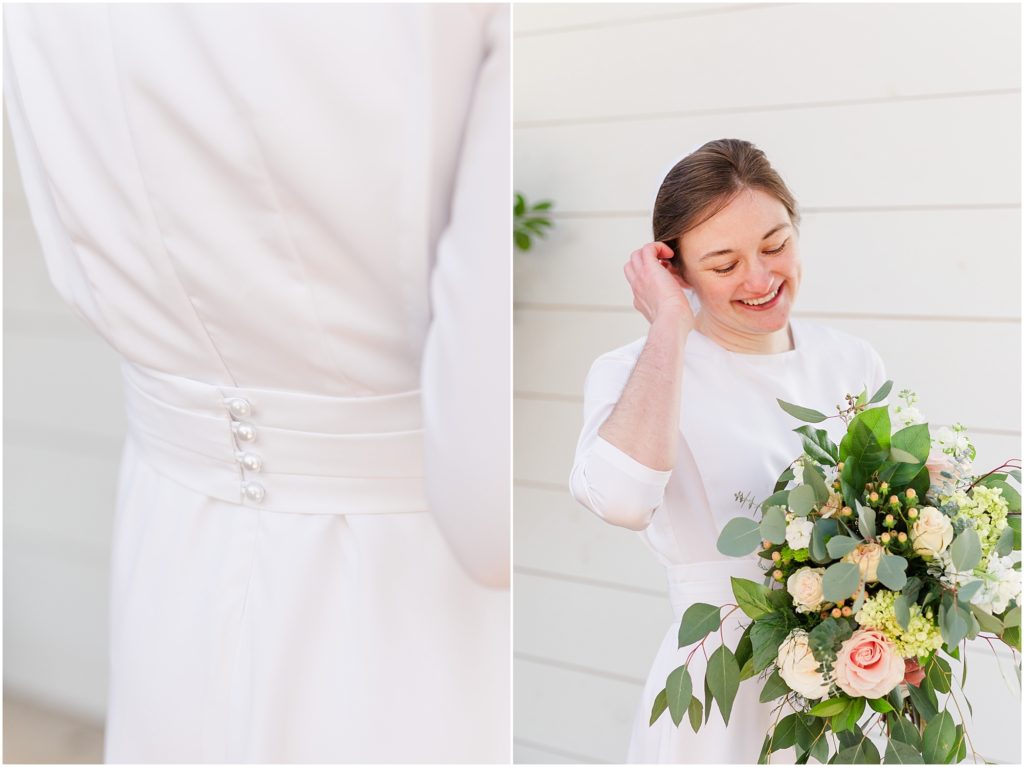 March weather can be unpredictable, so Katie decided to reserve Grayce Gardens for photos so there’d be a roof in case of rain and snow. But there wedding day dawned perfectly clear. and although it was chilly, we were able to take a bunch of their photos in the golden sunlight. Grayce Gardens is a beautiful place with lots of white walls and I loved getting to shoot there too!