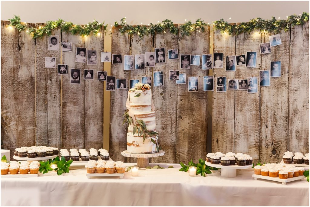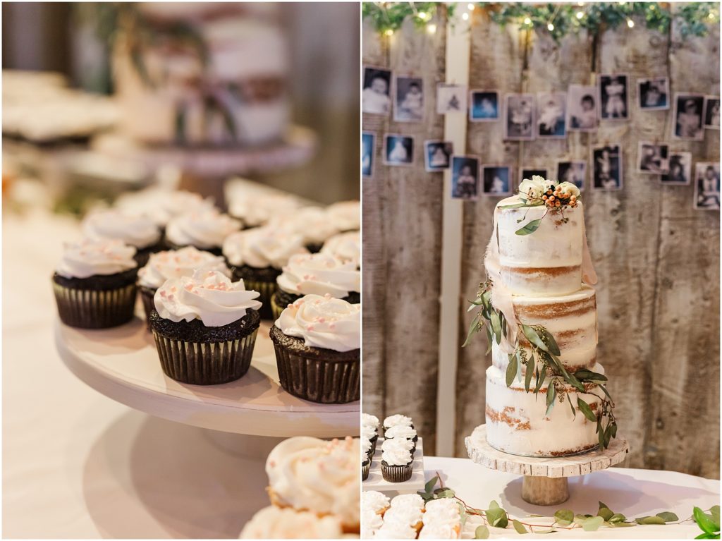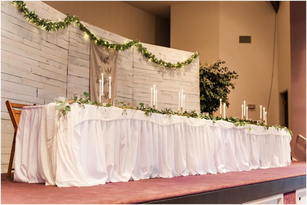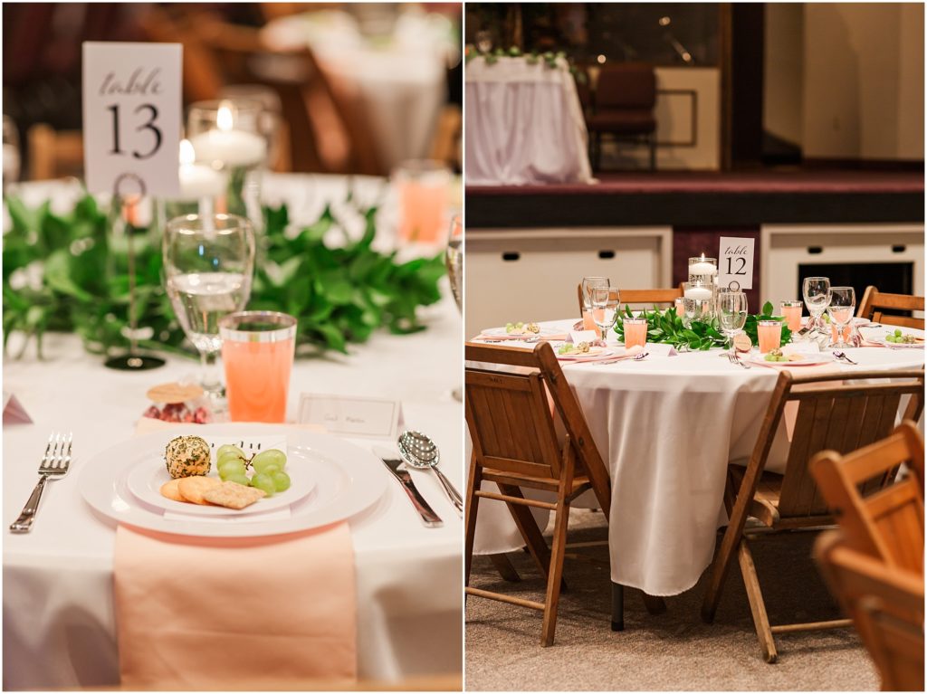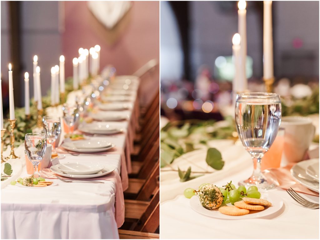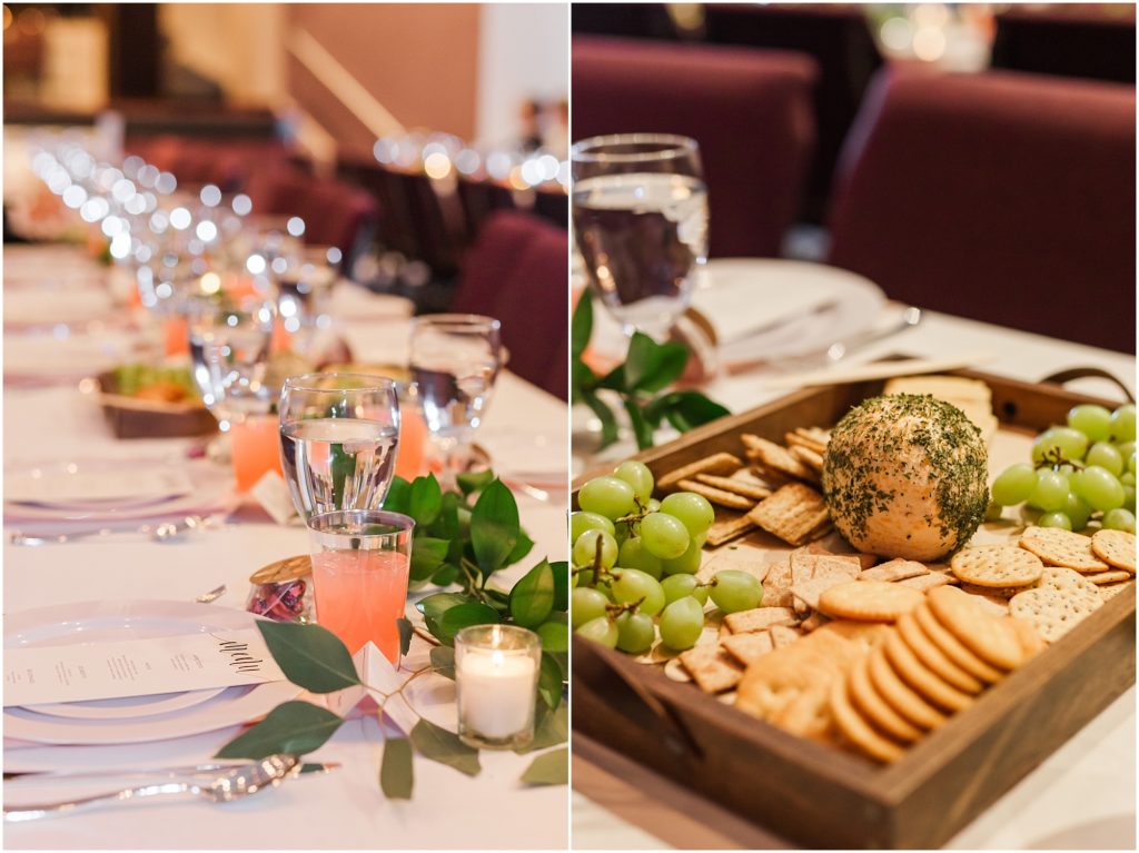 The reception was decorated with lots of greenery and candles. On the guest tables there were the prettiest wooden trays with a cheeseball and crackers to share. The wedding cake on the dessert table was made by Katie’s brother!