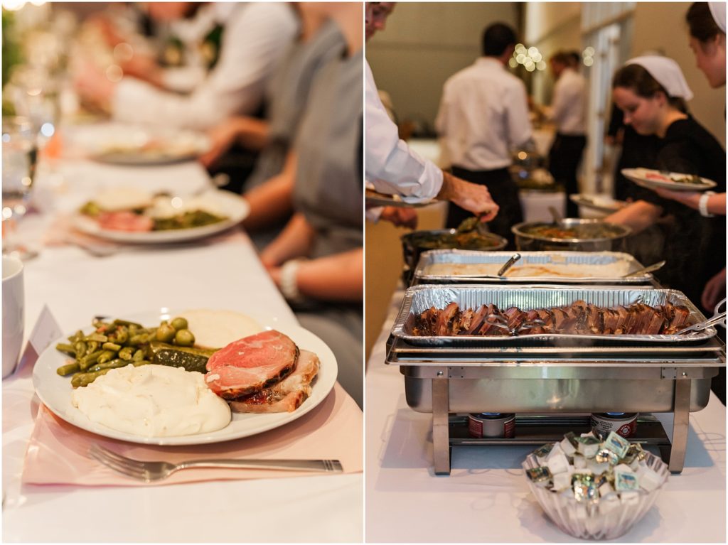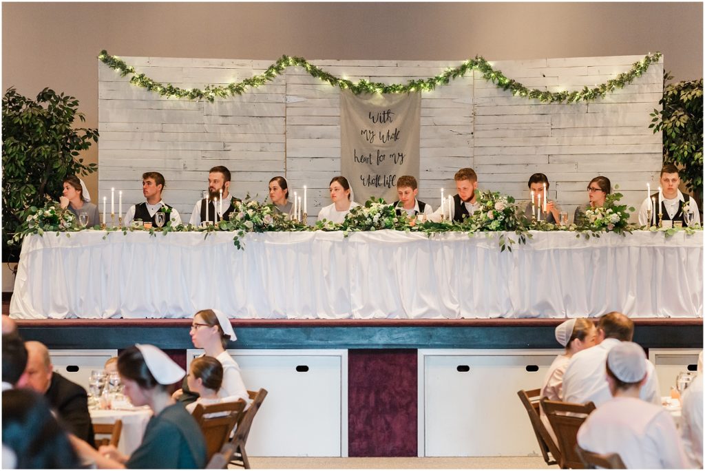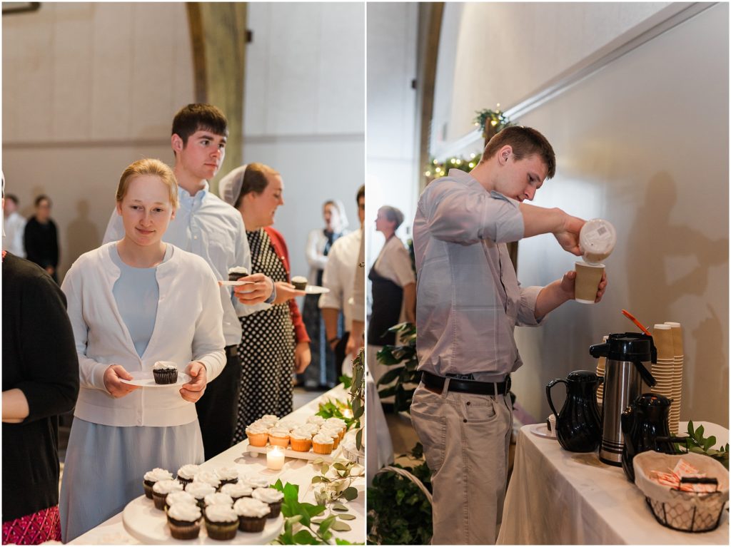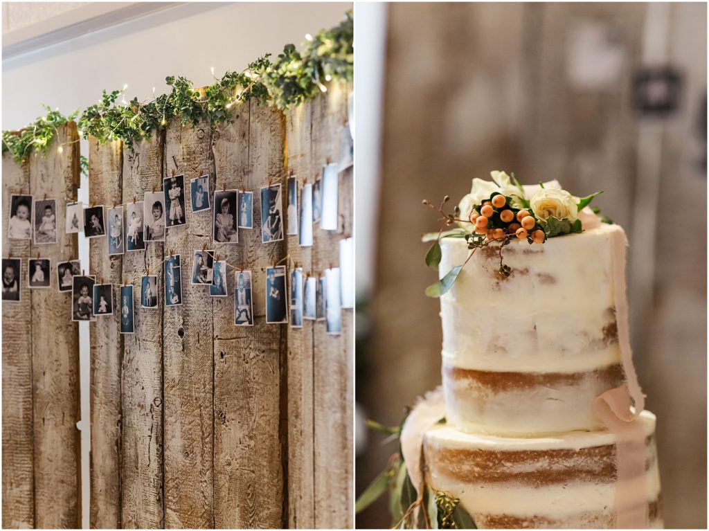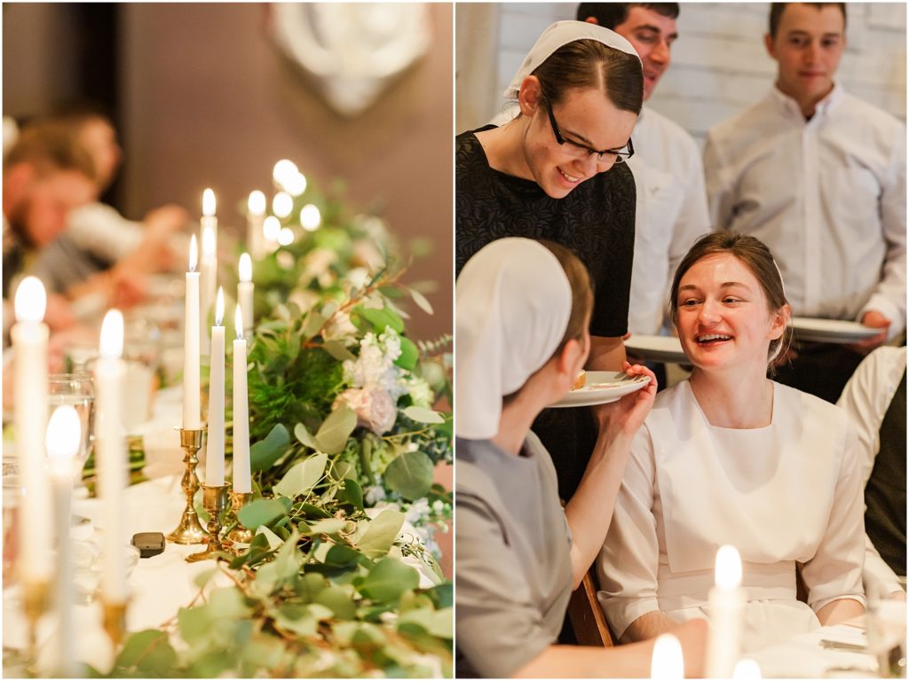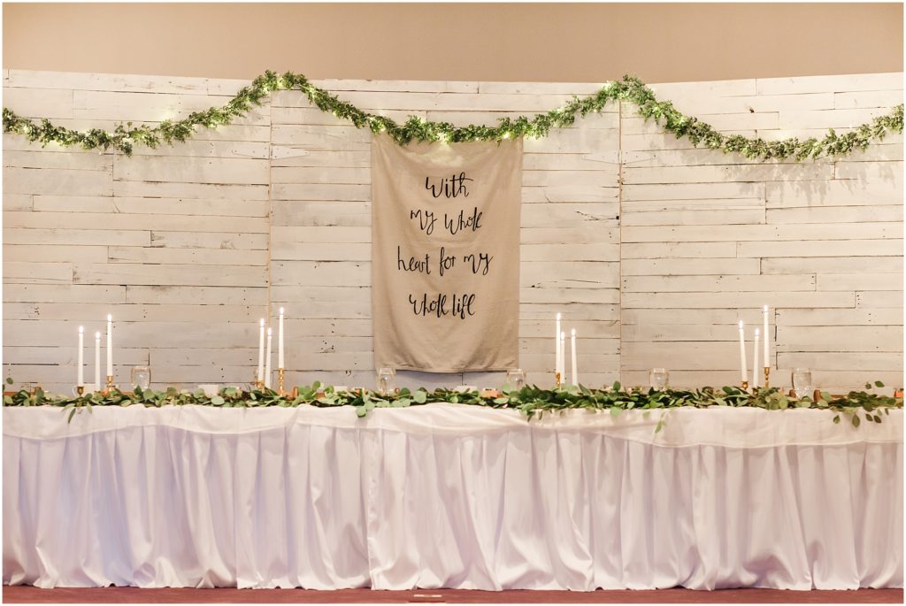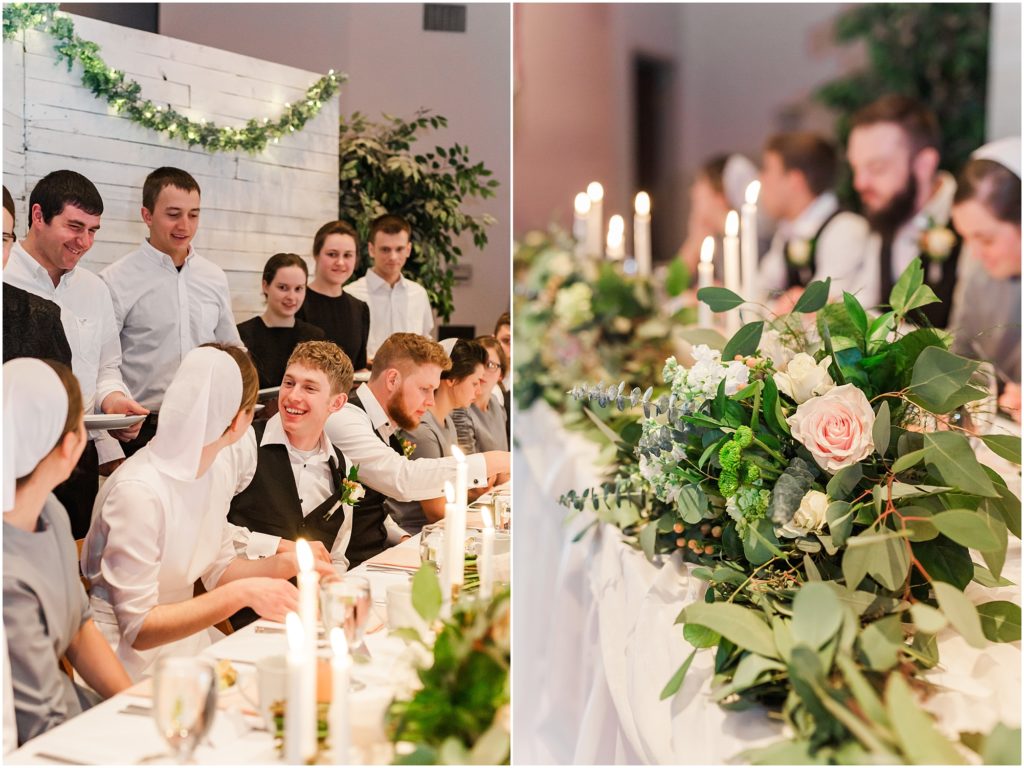 The reception was decorated with lots of greenery and candles. On the guest tables there were the prettiest wooden trays with a cheeseball and crackers to share. The wedding cake on the dessert table was made by Katie’s brother!