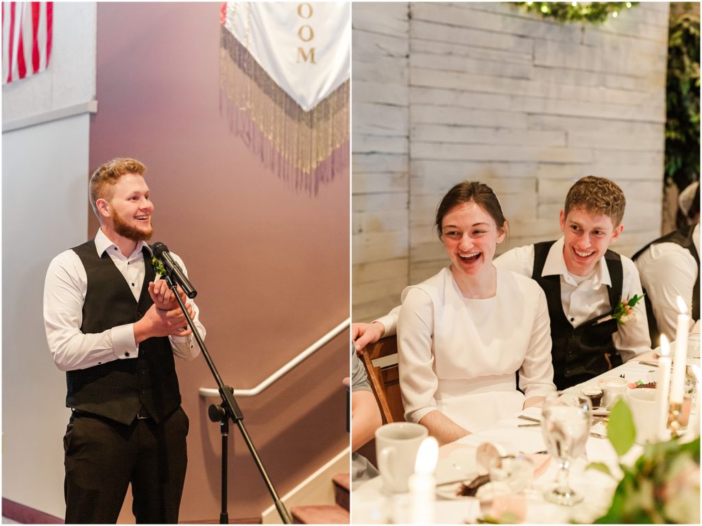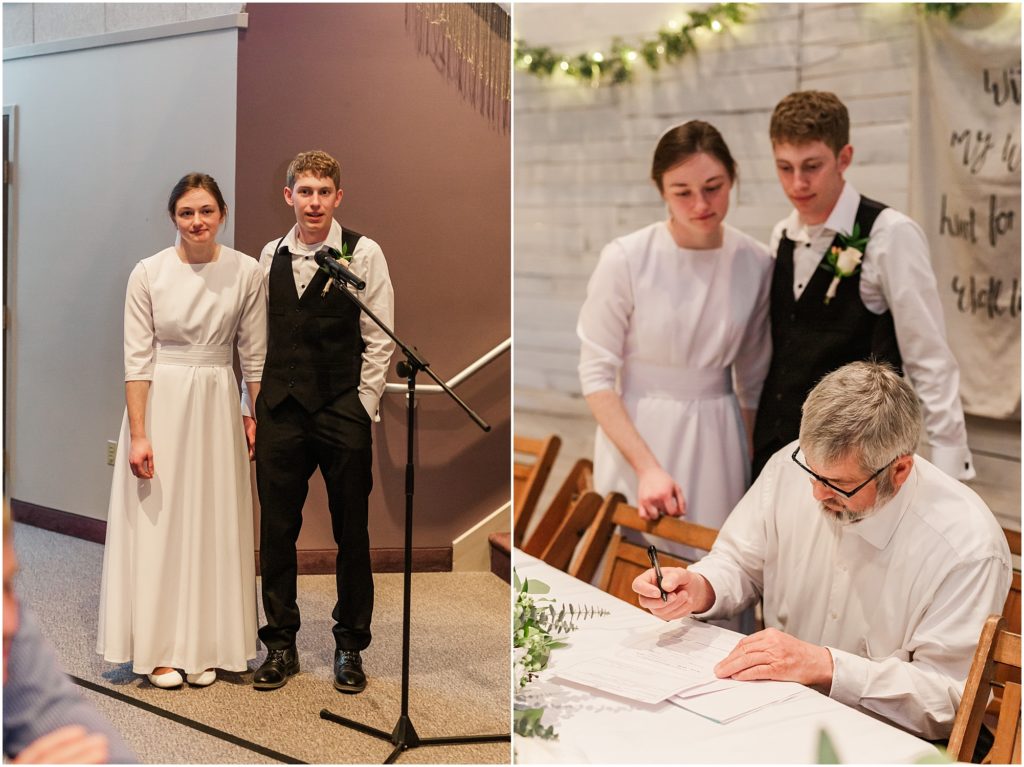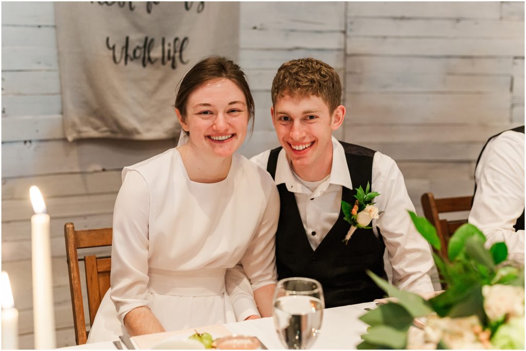 The ceremony was at the bride’s home church. A group of their friends sang from the back as they walked up the aisle and with the acoustics in that building, it was beautiful!
