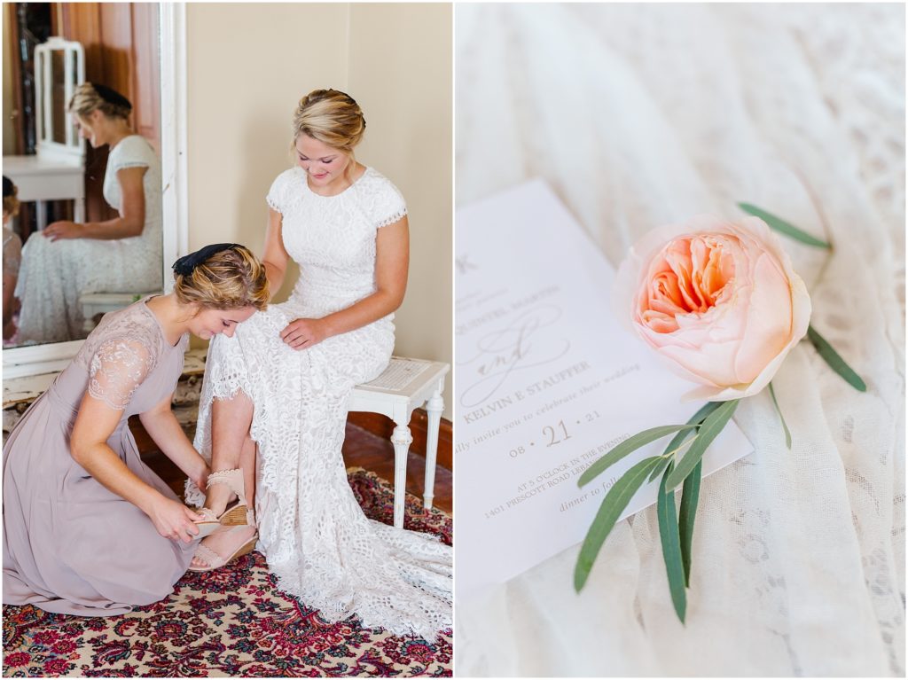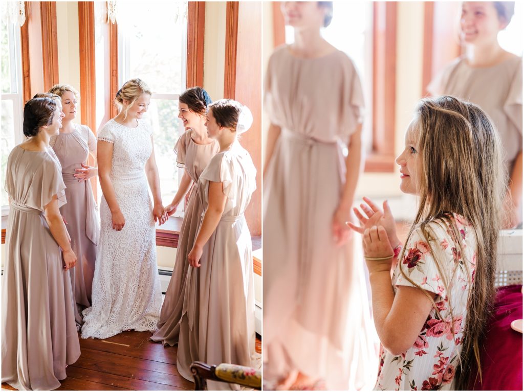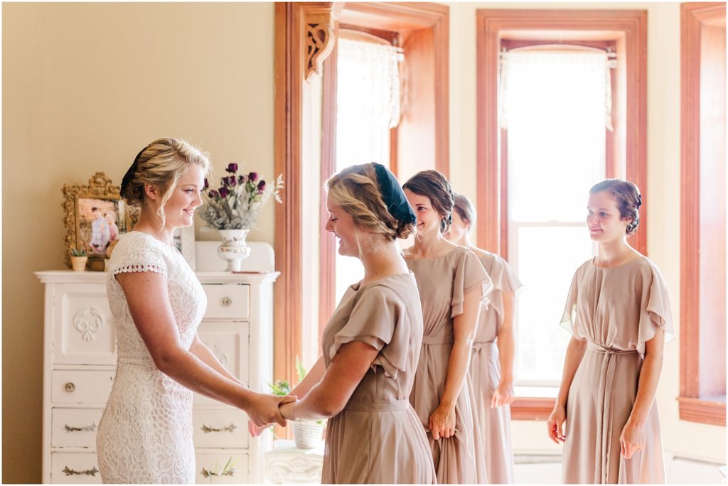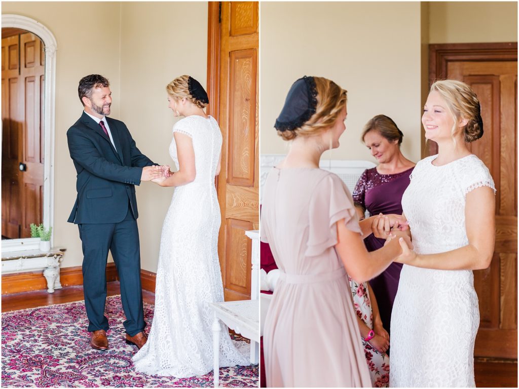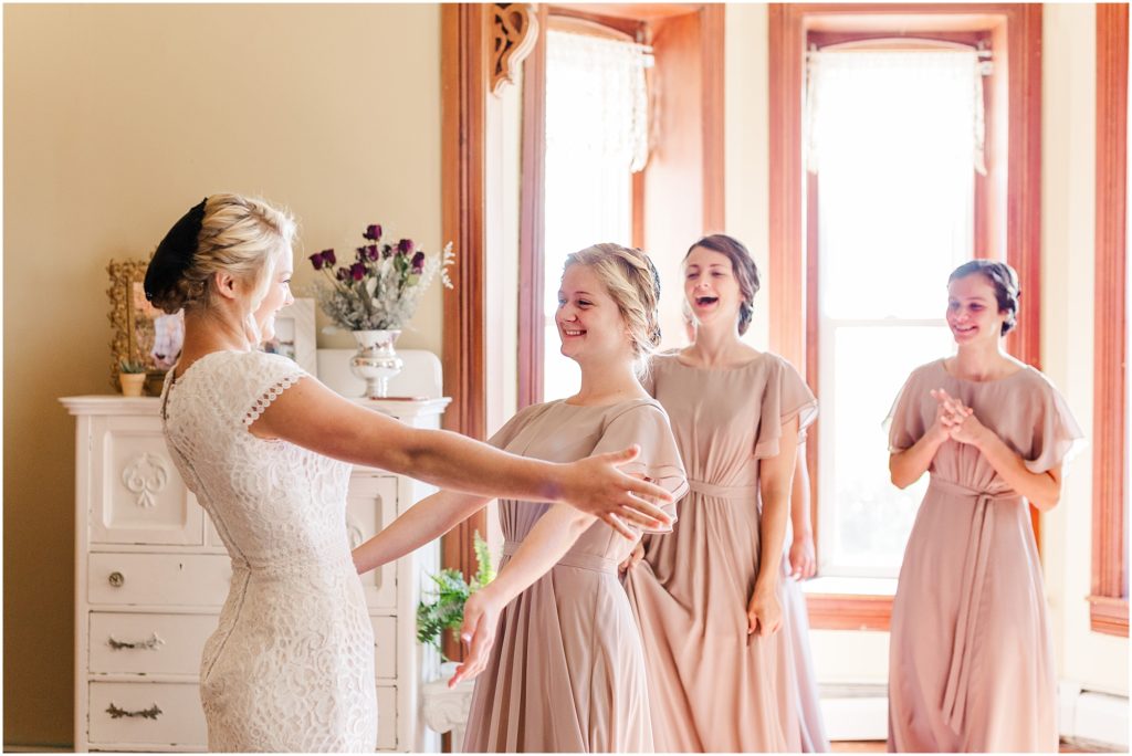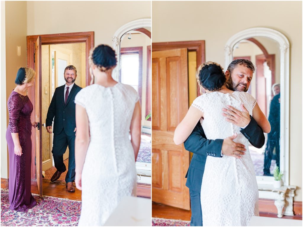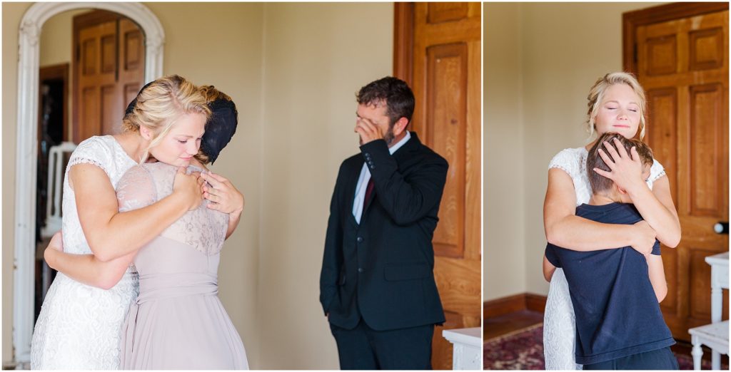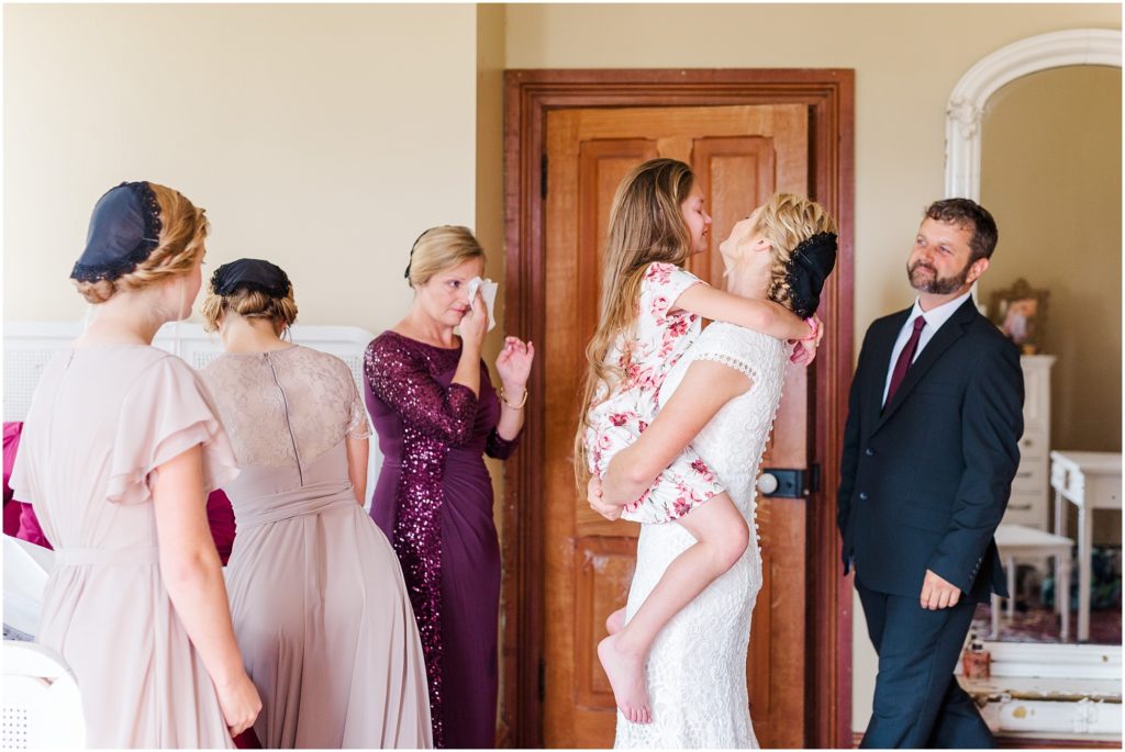 Mariah got ready with her sisters and bridesmaids in a sunlit east room. Her dad came in for a daddy daughter first look and it was such a sweet, emotional moment with the song “My Little Girl” playing in the background. The rest of the family then joined them for tearful hugs before Mariah left for the first look. It was so precious and I am glad I got to witness it with my camera! It’s so important to be intentional about moments on a wedding day..it goes so fast!