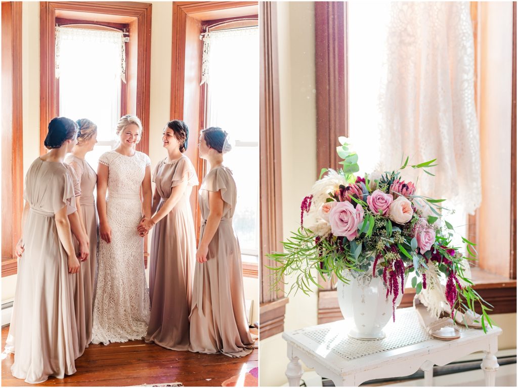 Mariah’s family lives in on an elegant 1888 homestead that they are renovating, so having the wedding there with the reception in the big bank barn was something Mariah had dreamt of for years. With lots of work, that dream came true!