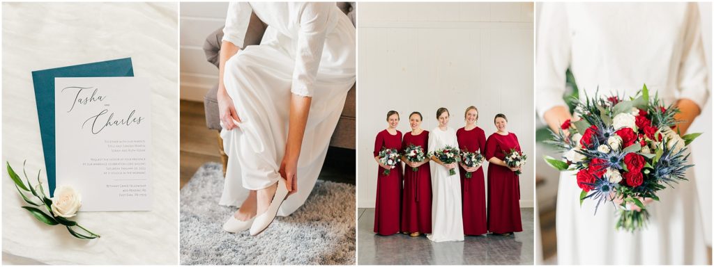 Charles and Tasha were married on one of the coldest days of January! As the forecast changed for the worse the week of the wedding, Tasha decided to rent Springside barn for photos instead of doing them all outdoors. That was the best decision- not only did we have a warm, bright indoor space for photos, she also got to use the beautiful bridal suite!