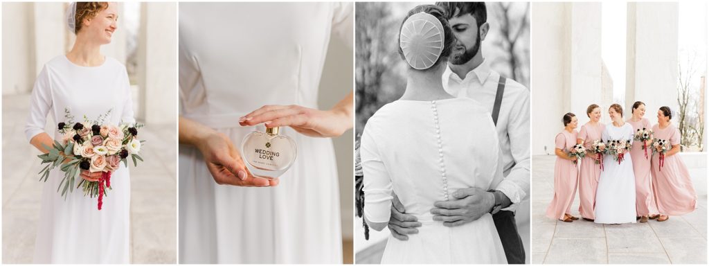 The portraits were done at the beautiful Hershey Founders Hall. The white marble was the perfect backdrop for the rose and gray colors. It was chilly and windy, but the bridal party were good sports 🙂