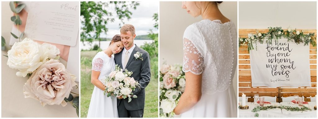 Brent & Danae’s wedding day felt more like September than June, but I don’t think anyone minded not sweating through portraits! The sun came out partway through the day and although it was a windy day, it was quite beautiful. Danae and her bridesmaids got ready upstairs in the church and Brent and his groomsmen were downstairs, so we were able to do indoor portraits for both of them in the brightly lit church foyer. (Yay for natural light!)