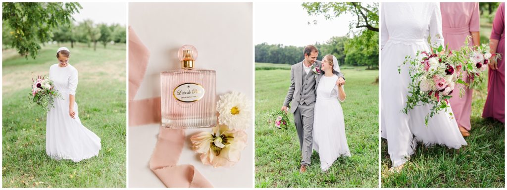 Tim and Amanda’s wedding day began with getting ready at the bride’s home and then a sweet first look in the woods. We went to a nearby peach orchard for the rest of the photos, and though there were few peaches left, it was such a perfect summery backdrop for the mauve and rose colors. The florals have to be some of my favorites of this year!