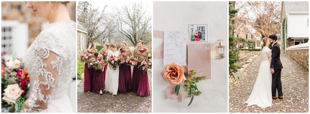 The couple’s style was so elegant and classic and everything was so cozy. The portrait location was a historic estate that matched the feel of the day so well. The reception took place at the bride’s home in a beautiful building with a big fireplace, and everything glowed with light in the dark December evening.