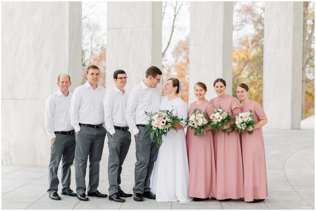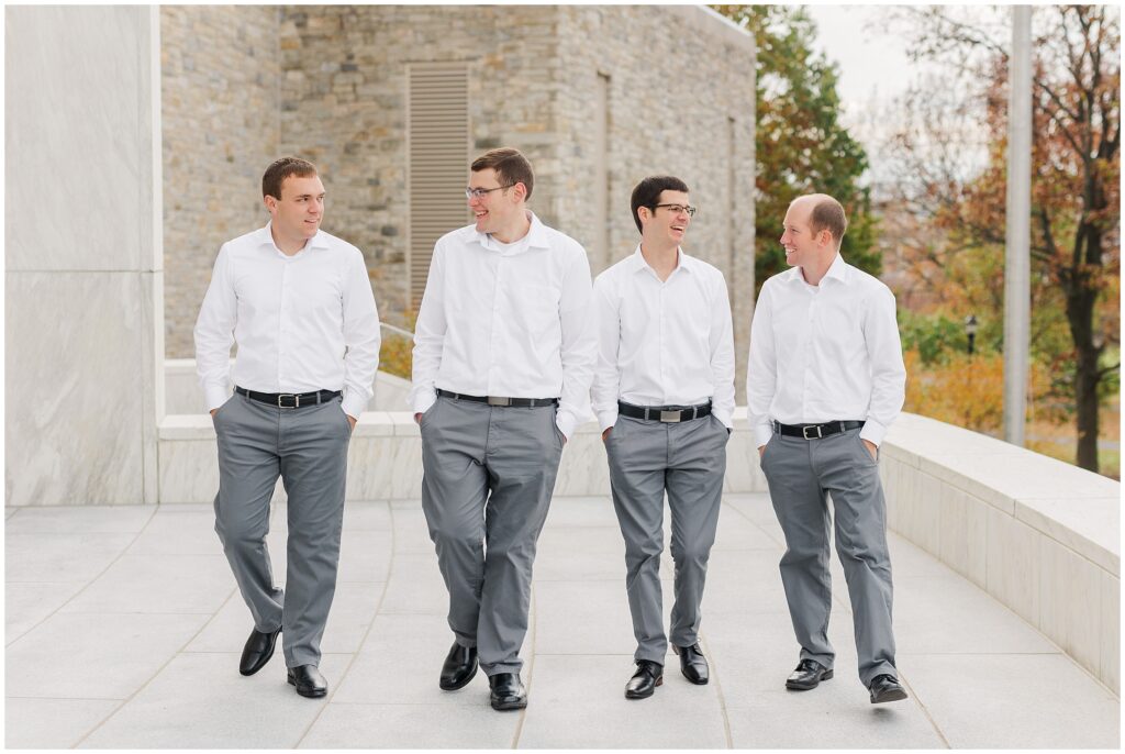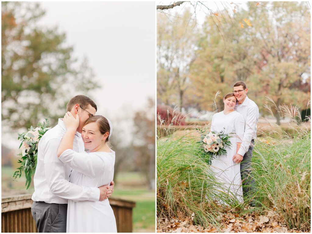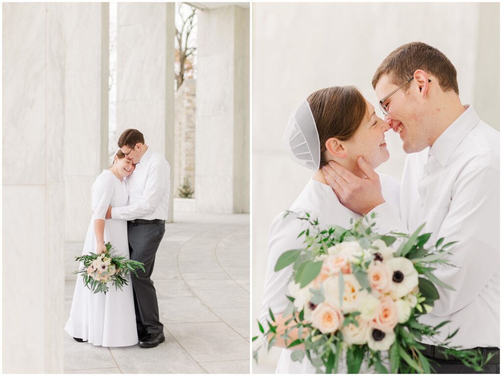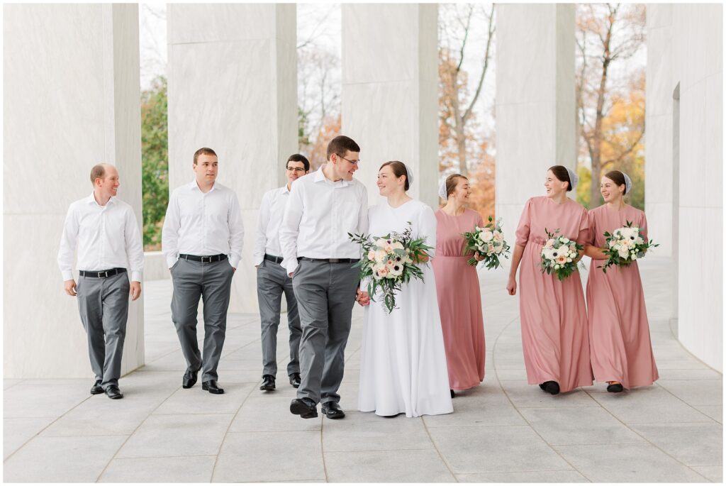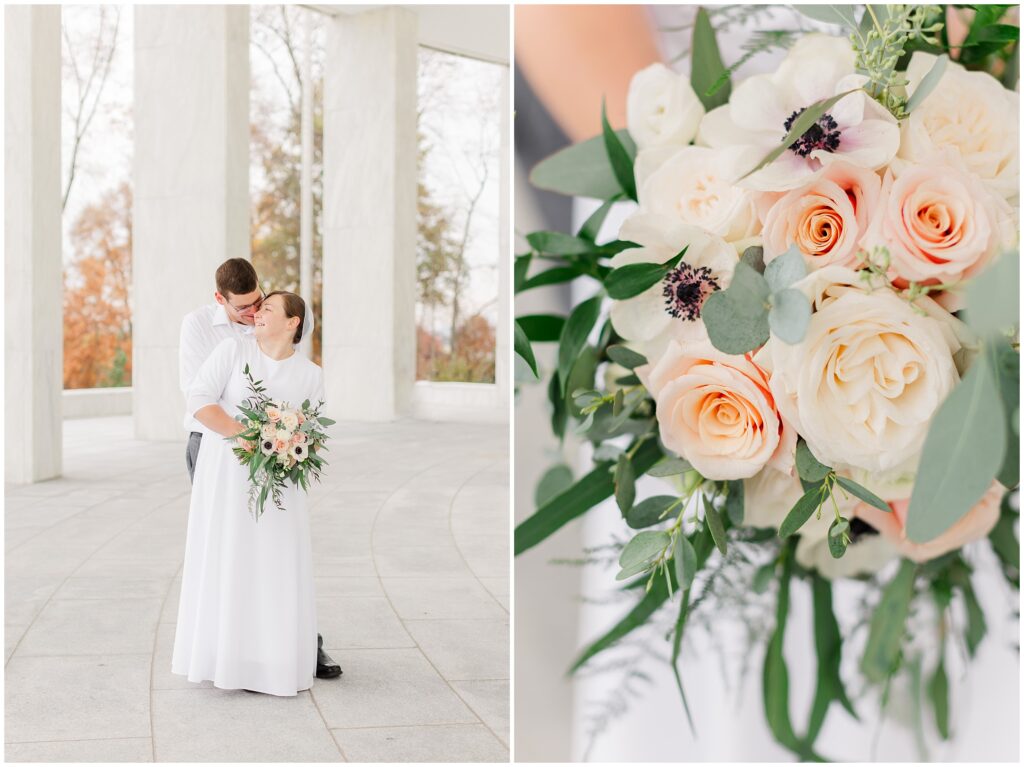 Although their wedding was late fall, Melody chose to go with shades of rose for her colors. So the white marble of Hershey Founders Hall was the perfect backdrop! As we started, I told them that they never had to look at the camera unless I aske them too- and they didn’t! 🙂 They were so happy to be getting married and were so easy to photograph.