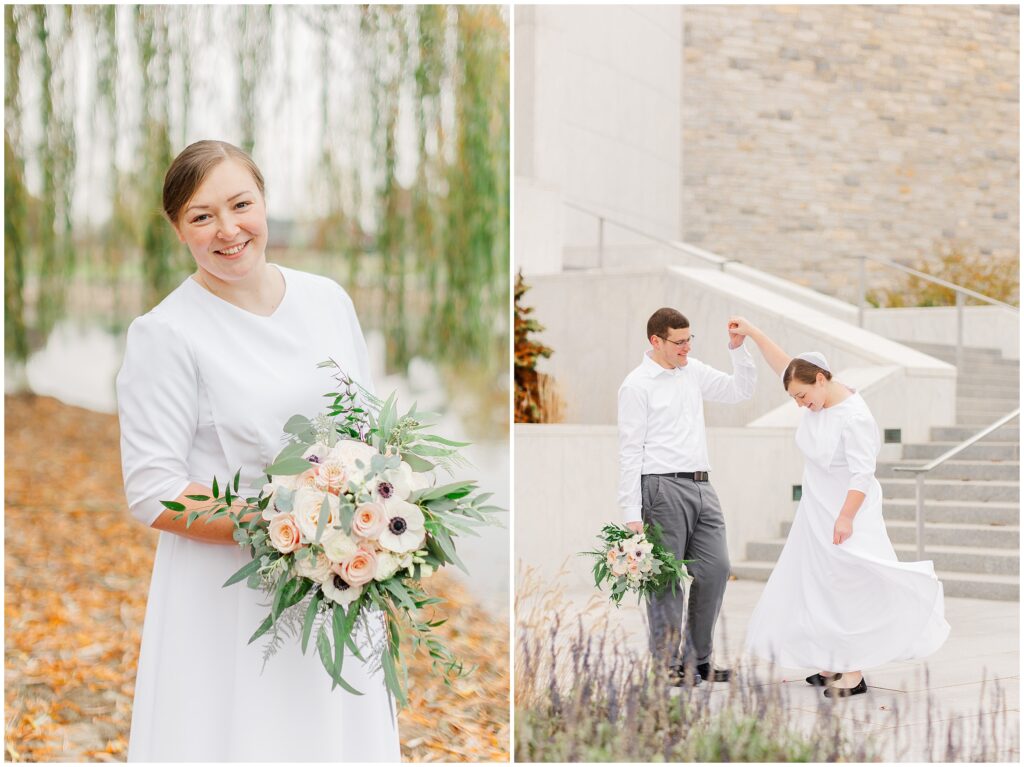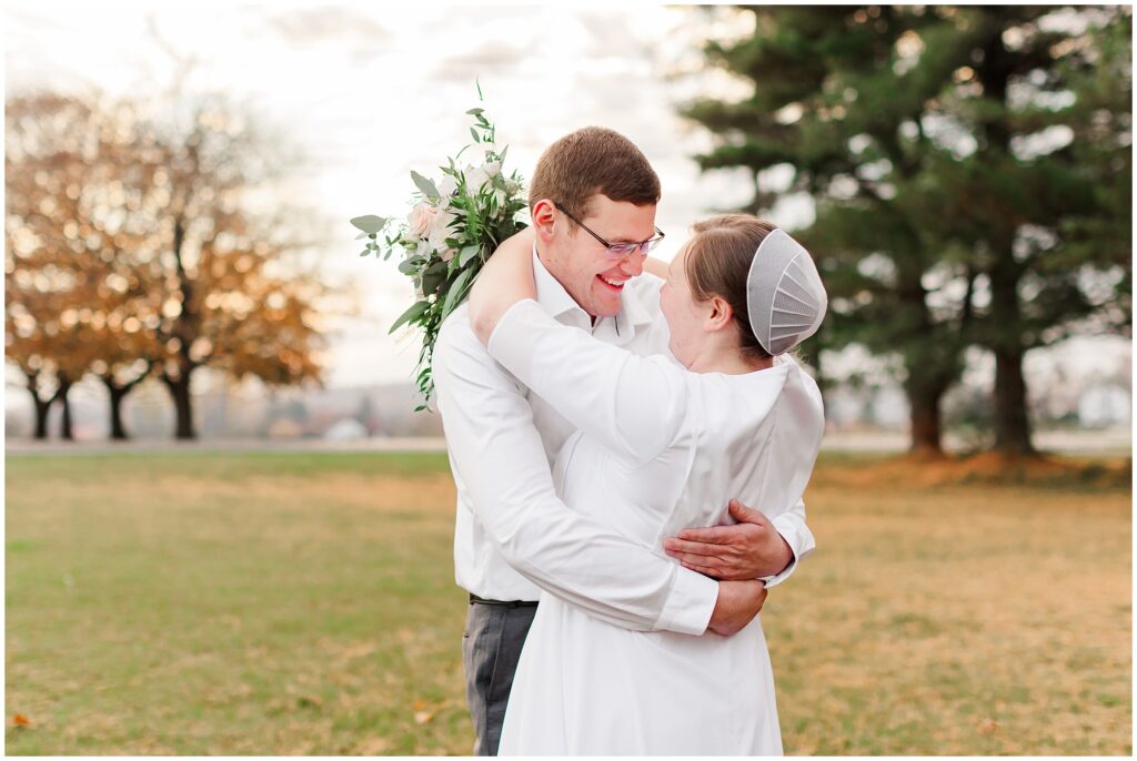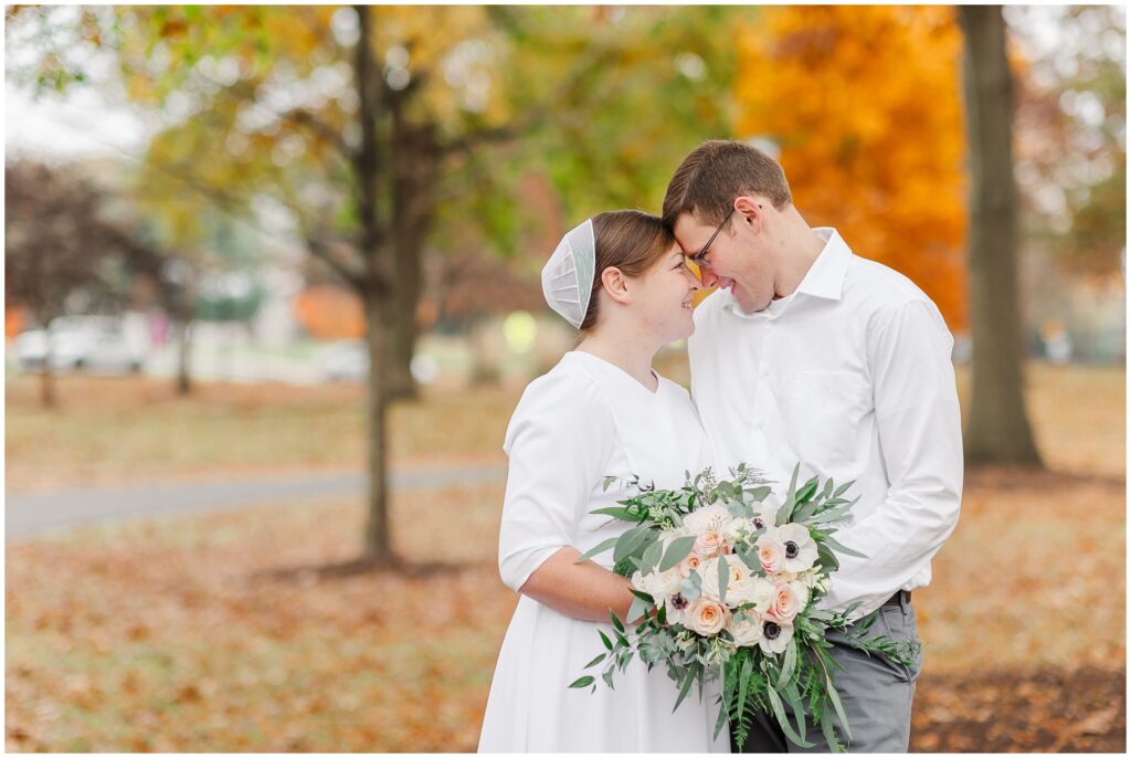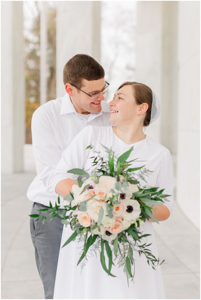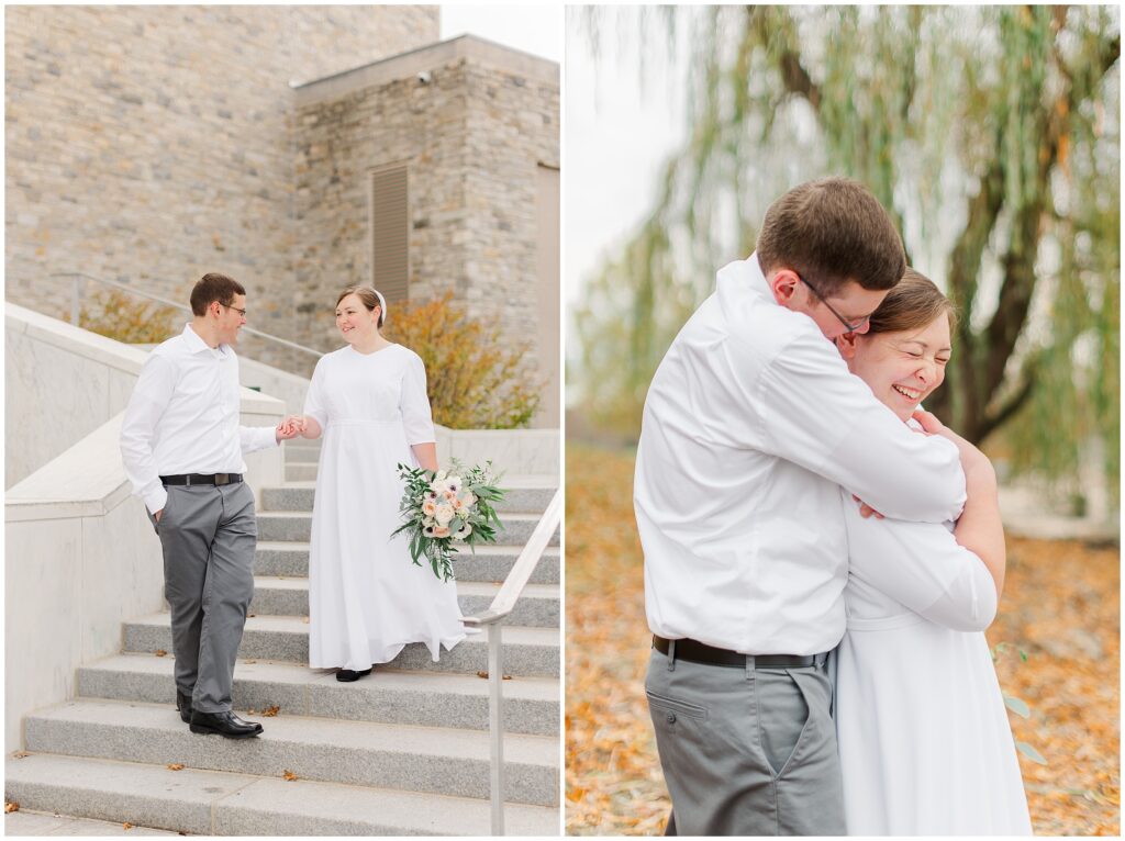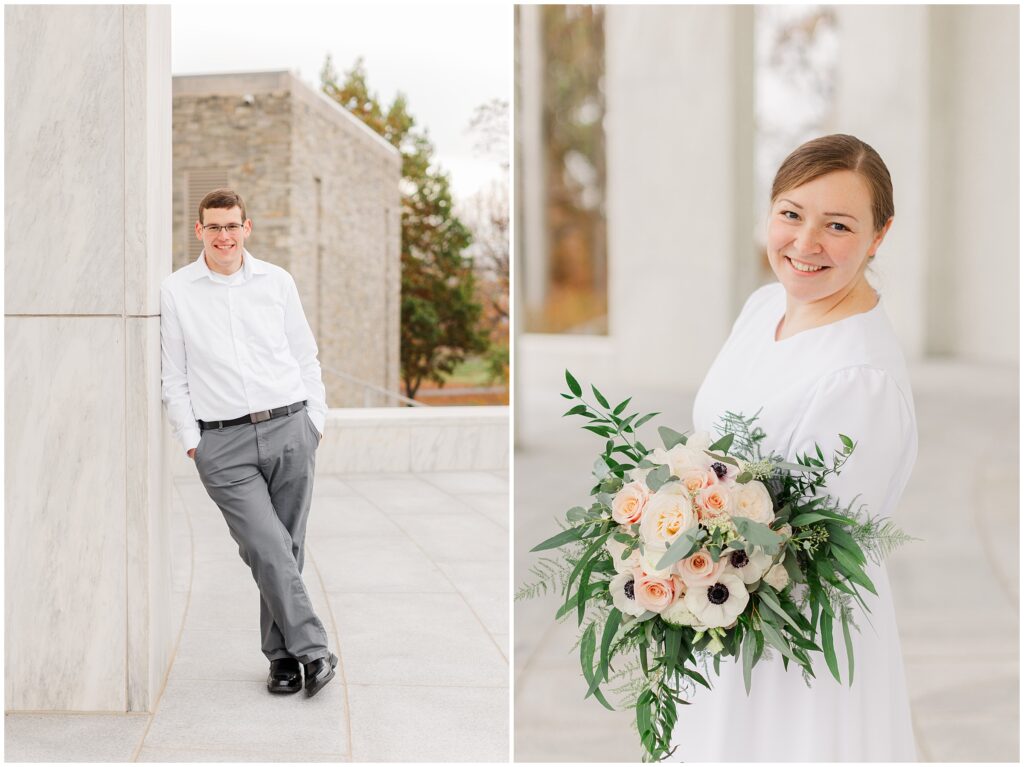 Although their wedding was late fall, Melody chose to go with shades of rose for her colors. So the white marble of Hershey Founders Hall was the perfect backdrop! As we started, I told them that they never had to look at the camera unless I aske them too- and they didn’t! 🙂 They were so happy to be getting married and were so easy to photograph.