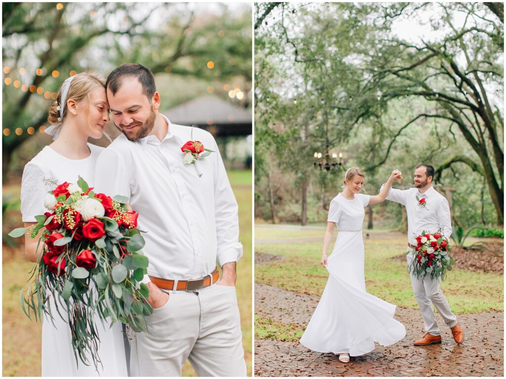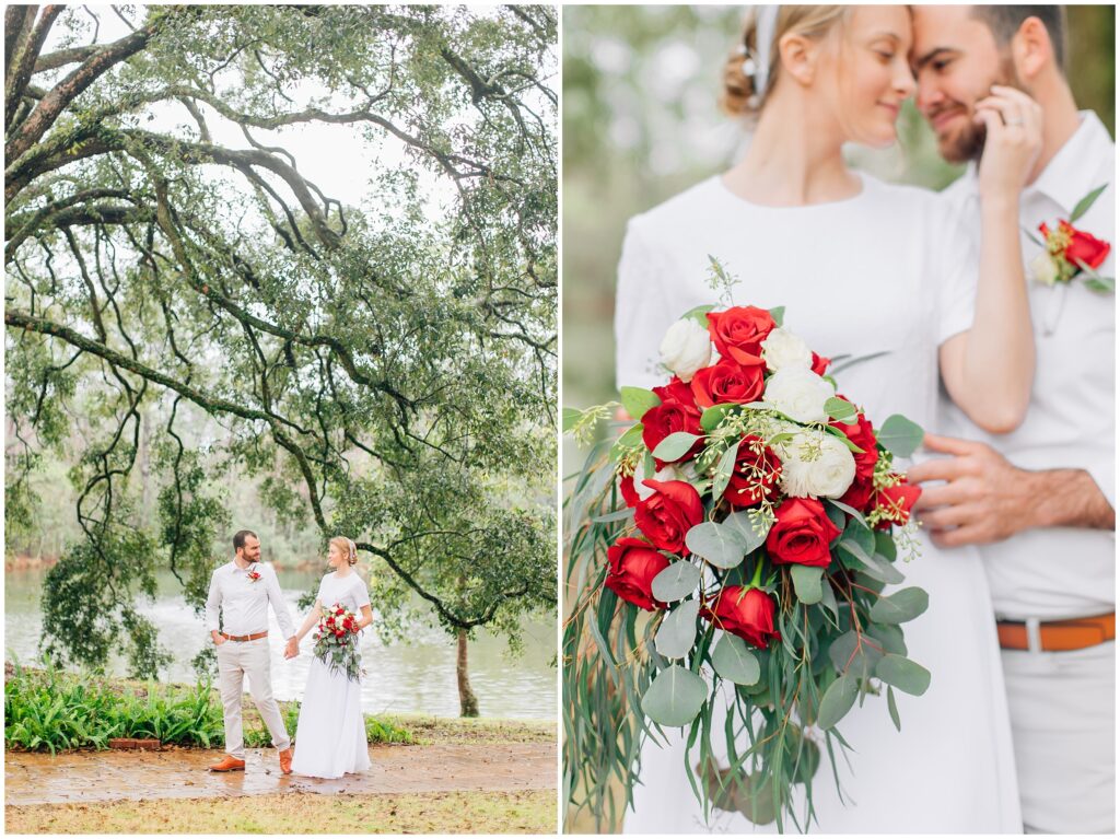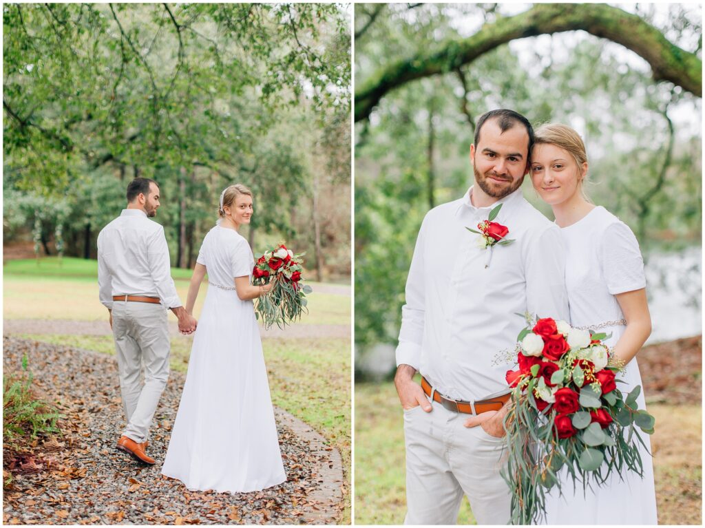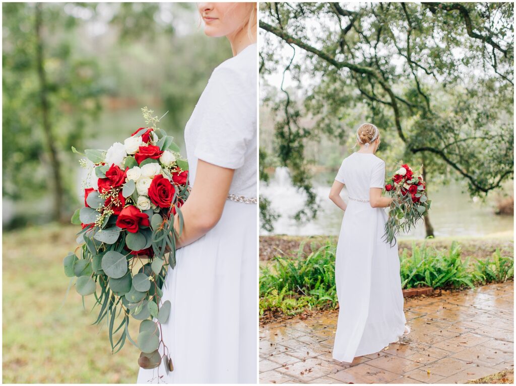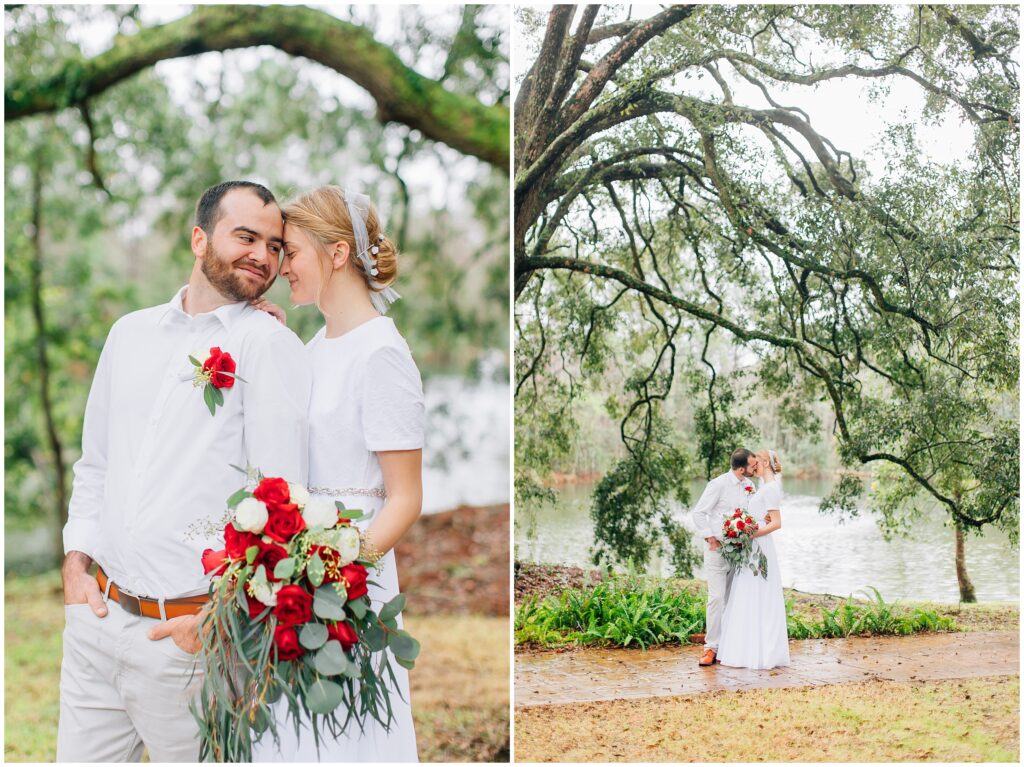 The wedding weekend ended up being quite rainy and I was glad I brought my umbrellas. It was raining/ dripping when we arrived at the portrait location. We waited a few minutes extra and then it stopped! It was still dripping from the trees but we didn’t even need the umbrellas. God was so good.