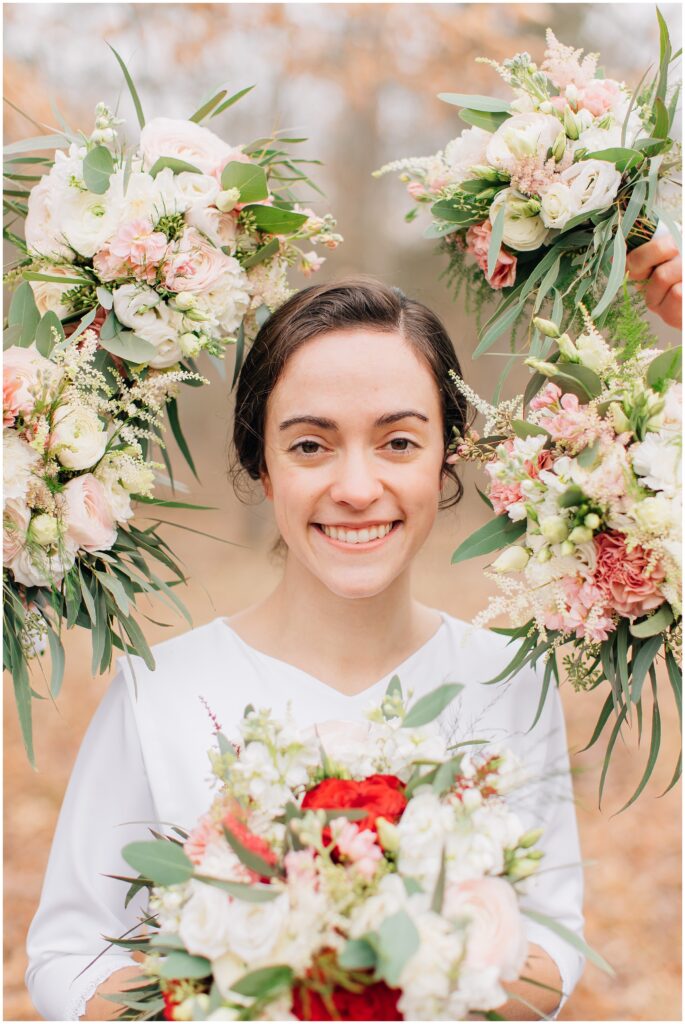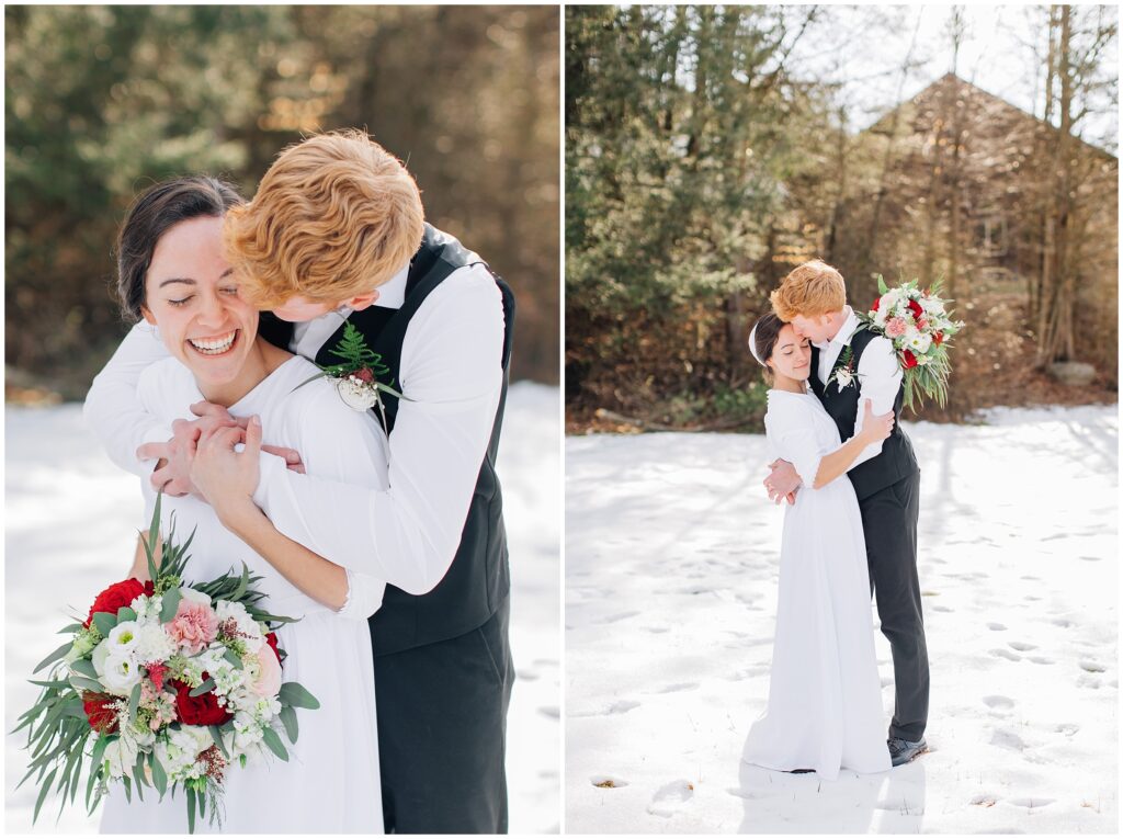 We had lots of fun with their bridal party. I just love it when the bridal party is all about celebrating the couple! The bouquets added so much life to the brown of February and I just adored all the texture.