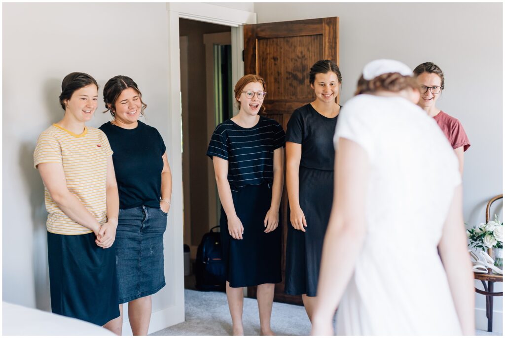The day started with bride and her girls getting ready in her family’s home in a light, bright room. This is the perfect kind of space for indoor photos!