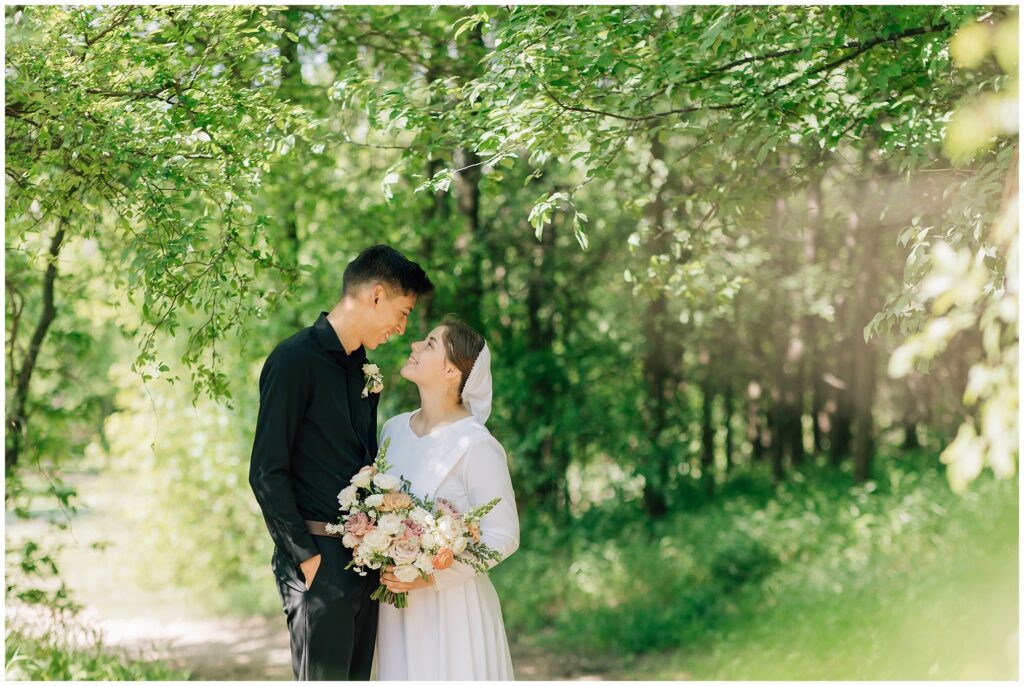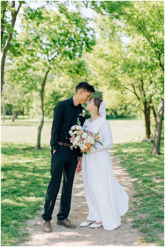 Their first look was a precious time sharing personal vows on a dappled shady path in a local park. Then they were joined by all their friends and family who celebrated them so well!