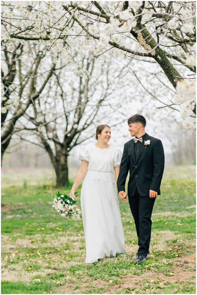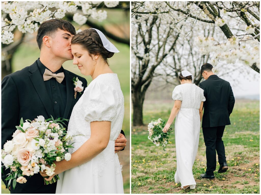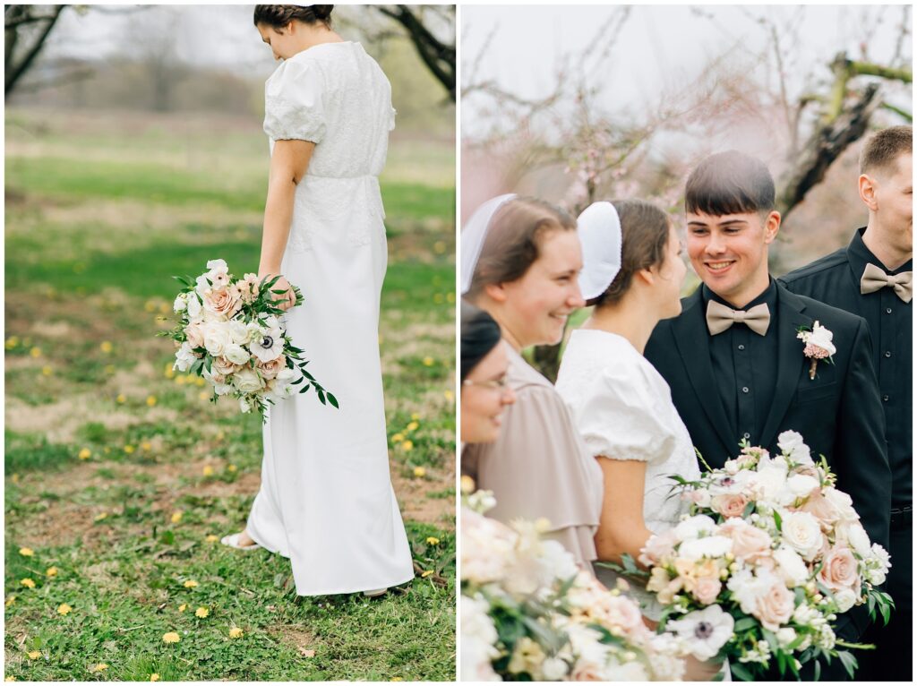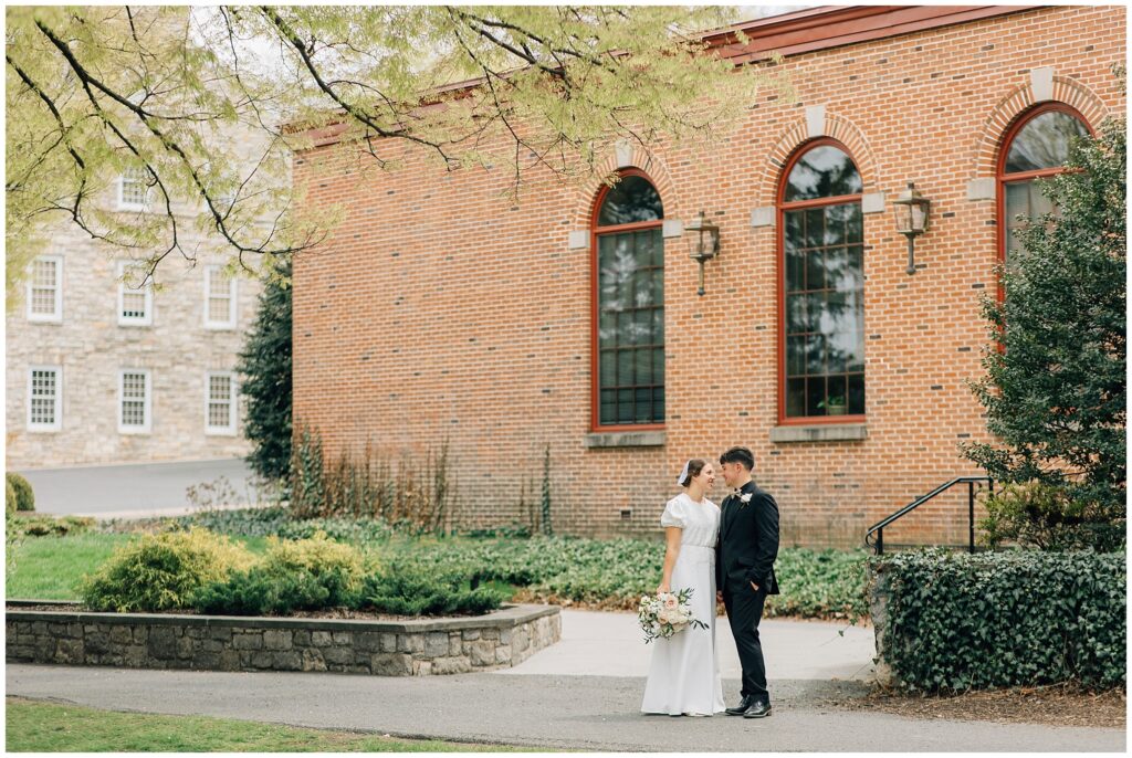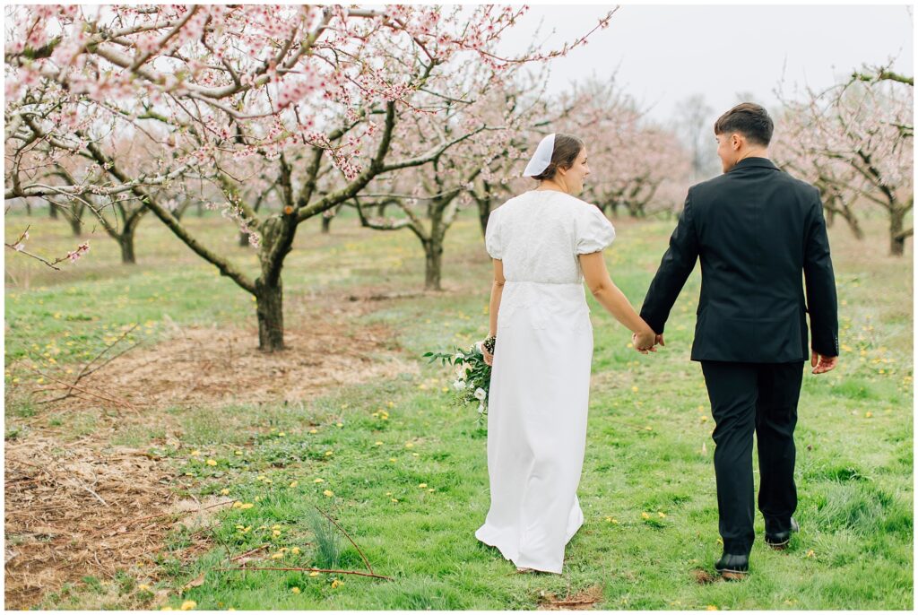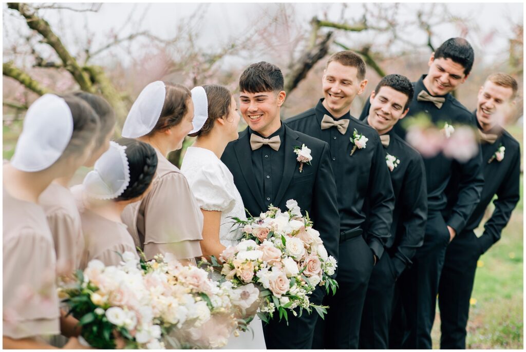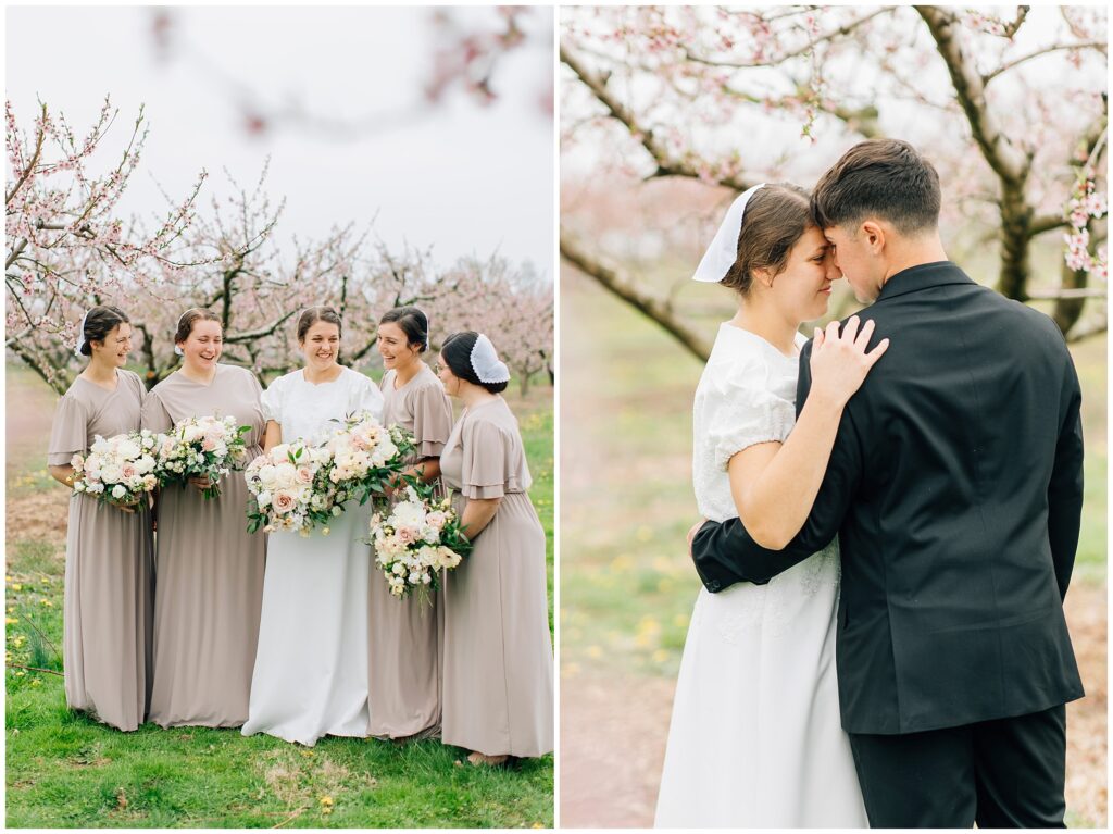 Brian and Mackenzie were married on a hazy, warm late April day. Their wedding was elegant and classic! Mackenzie had a relaxing morning getting ready at a family friend’s beautiful farmhouse with all her girls. Portraits began with a first look under some blossoming pears and more photos in a peach orchard. Then we walked around the little town of Lititz for even more. There were so many beautiful locations!