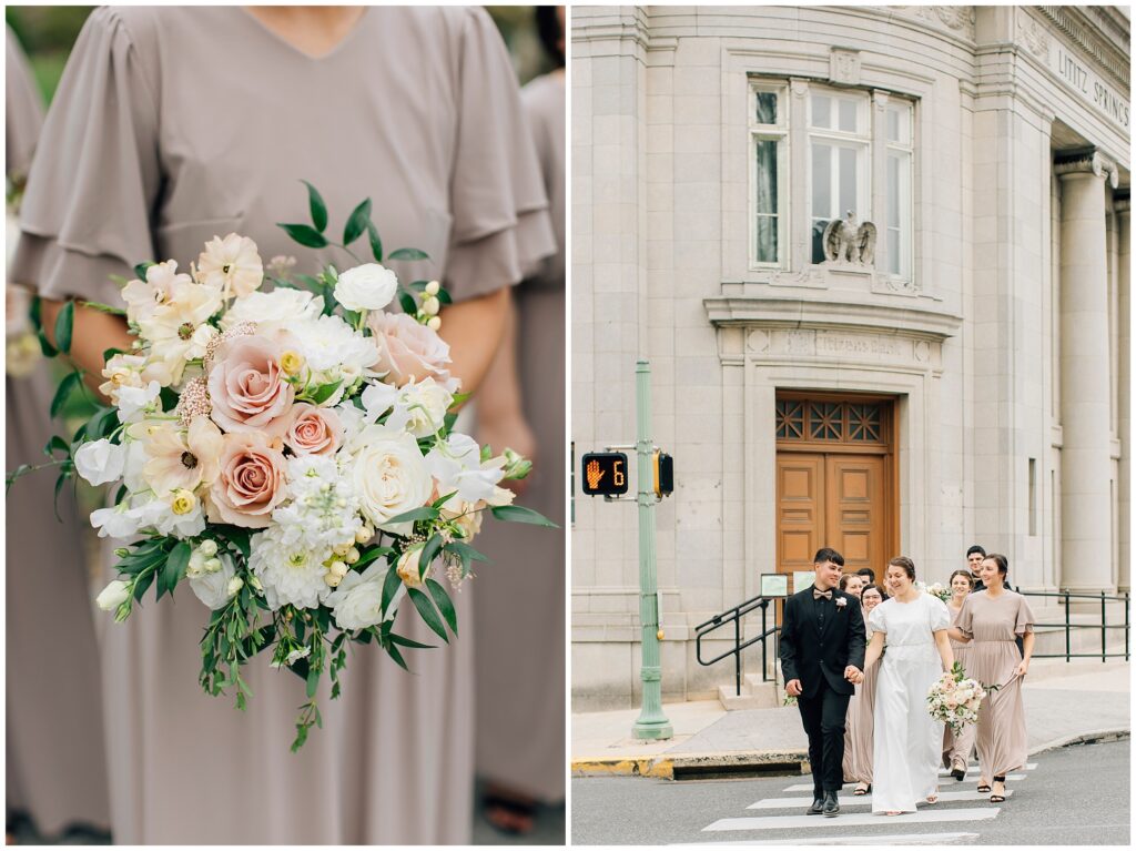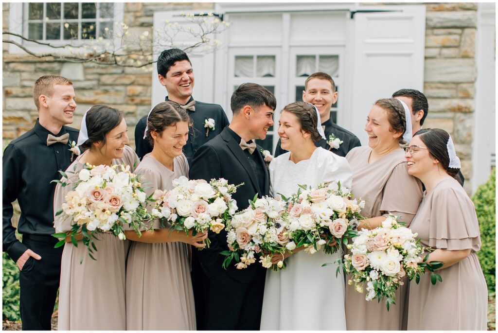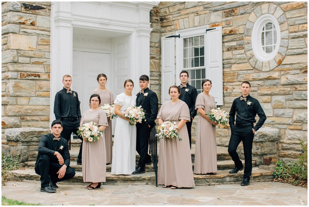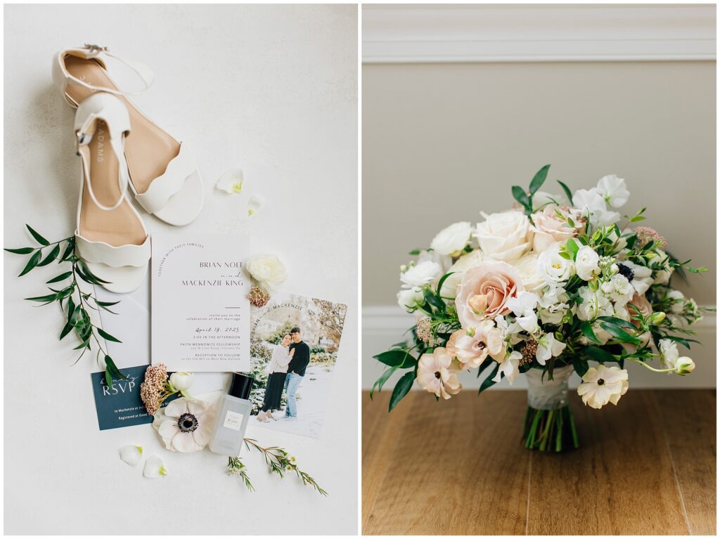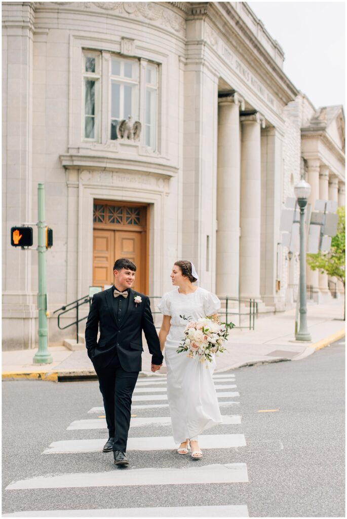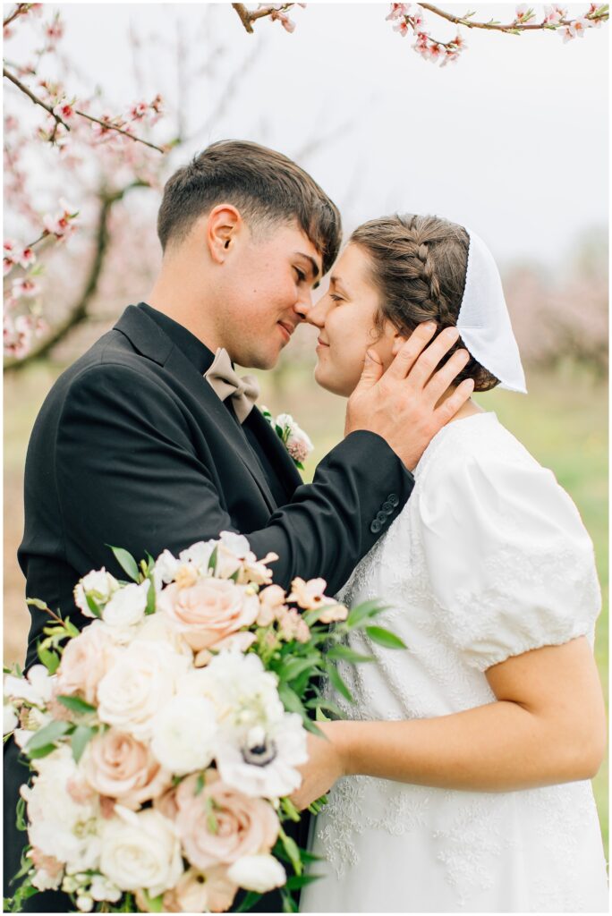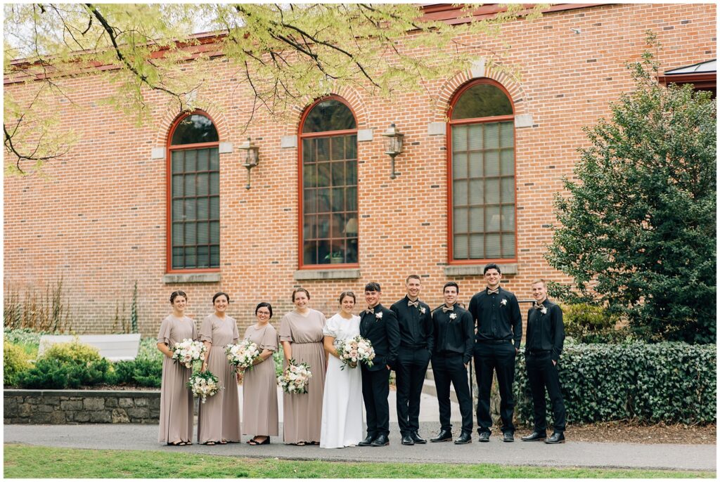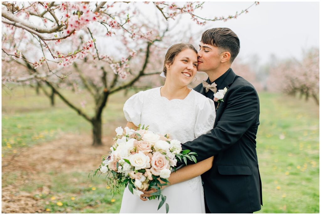 Brian and Mackenzie were married on a hazy, warm late April day. Their wedding was elegant and classic! Mackenzie had a relaxing morning getting ready at a family friend’s beautiful farmhouse with all her girls. Portraits began with a first look under some blossoming pears and more photos in a peach orchard. Then we walked around the little town of Lititz for even more. There were so many beautiful locations!