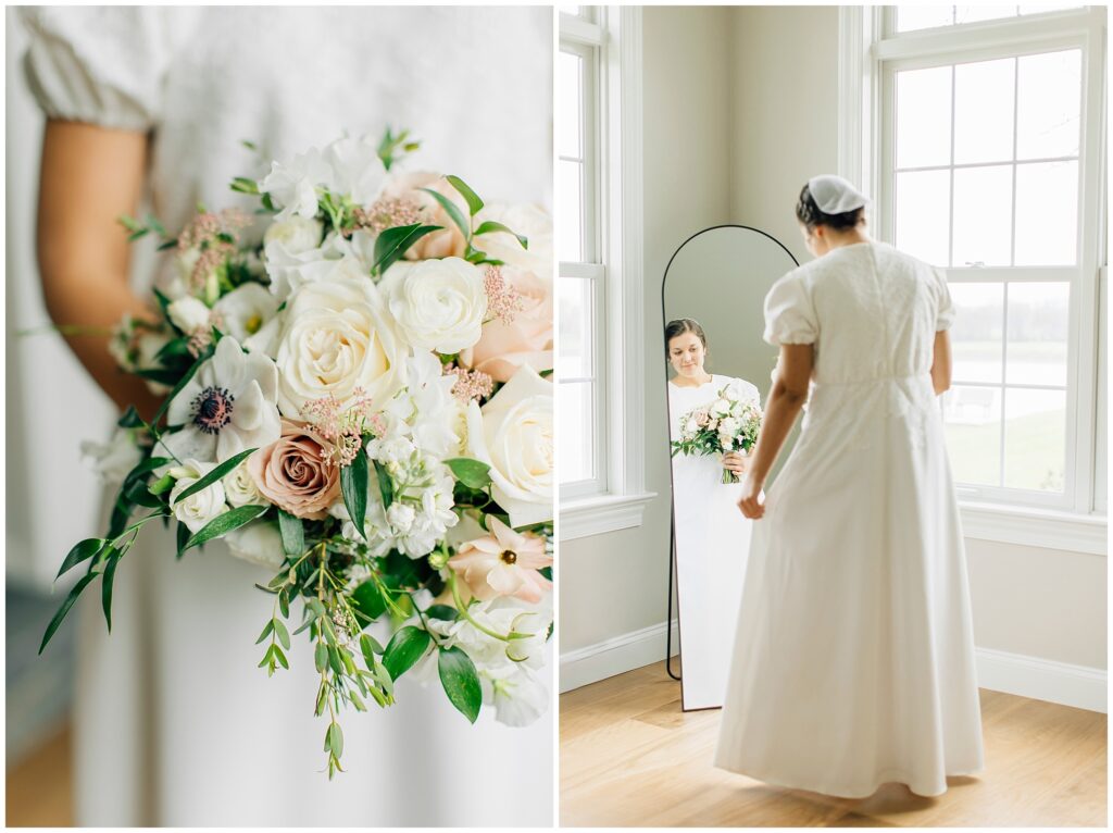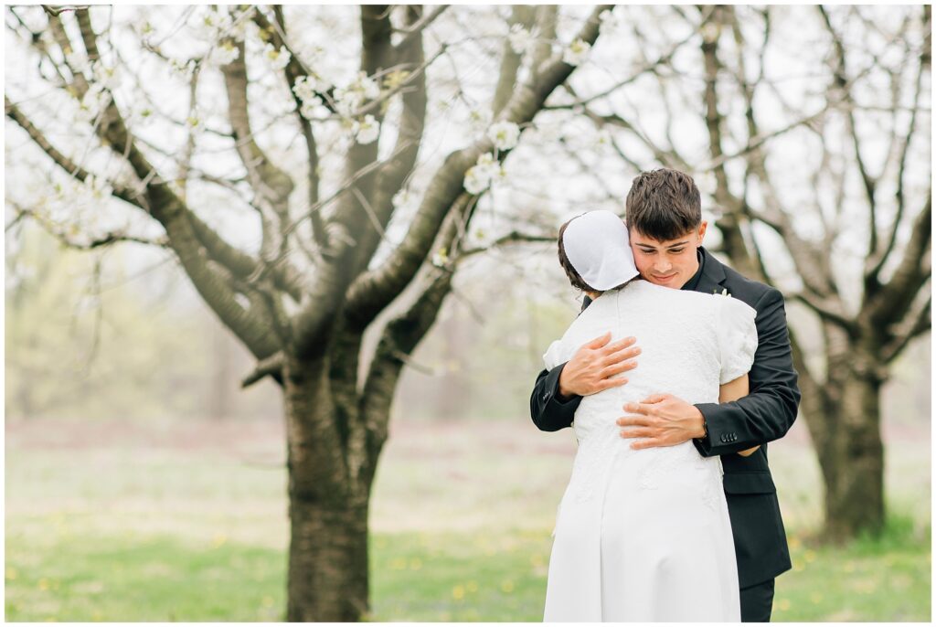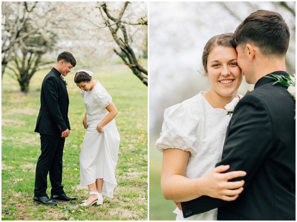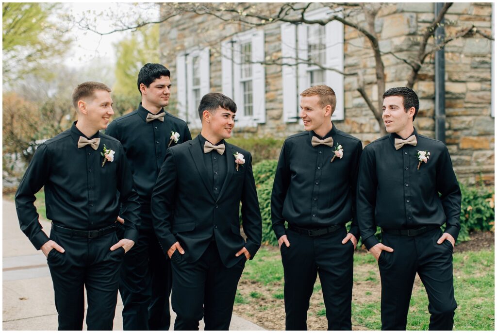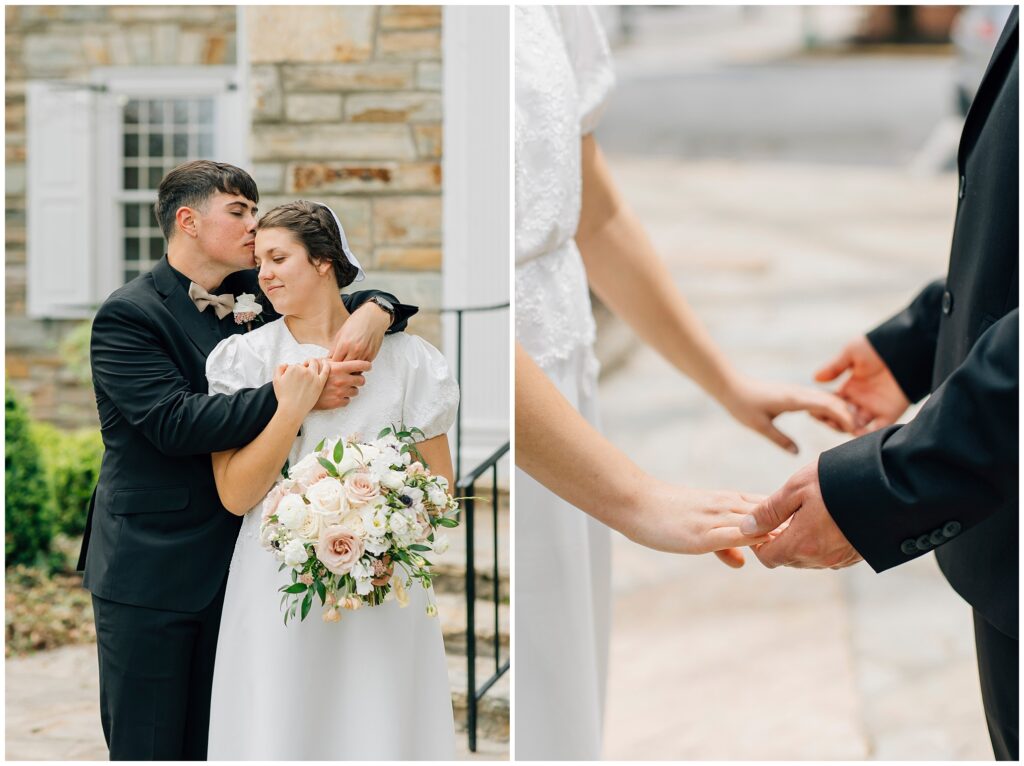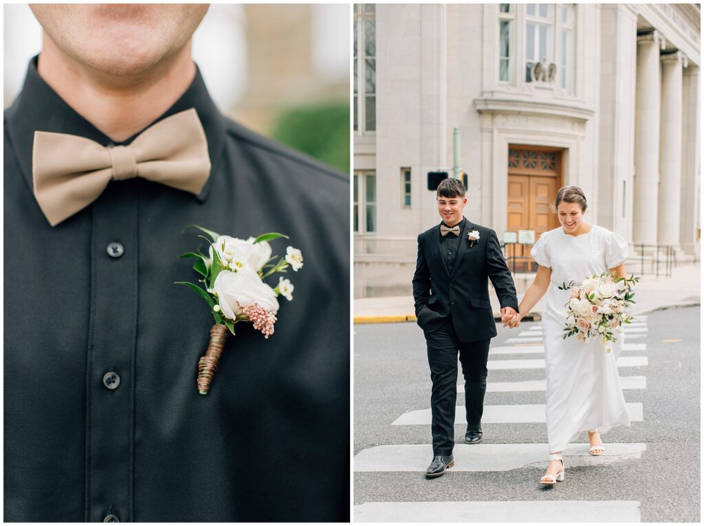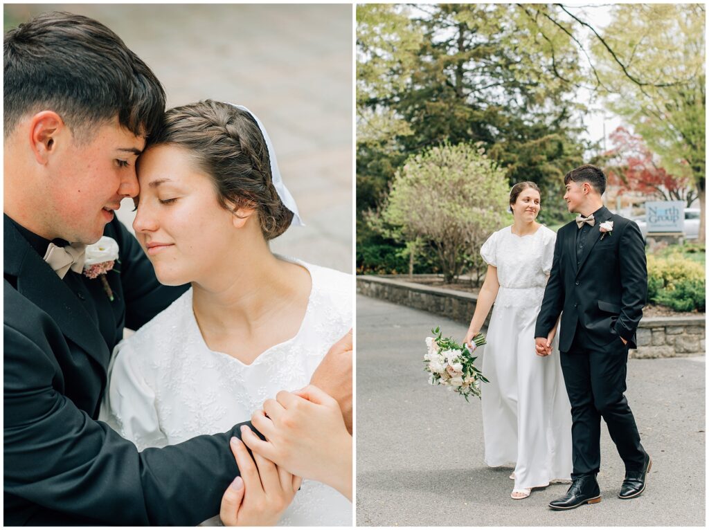 Brian and Mackenzie were married on a hazy, warm late April day. Their wedding was elegant and classic! Mackenzie had a relaxing morning getting ready at a family friend’s beautiful farmhouse with all her girls. Portraits began with a first look under some blossoming pears and more photos in a peach orchard. Then we walked around the little town of Lititz for even more. There were so many beautiful locations!