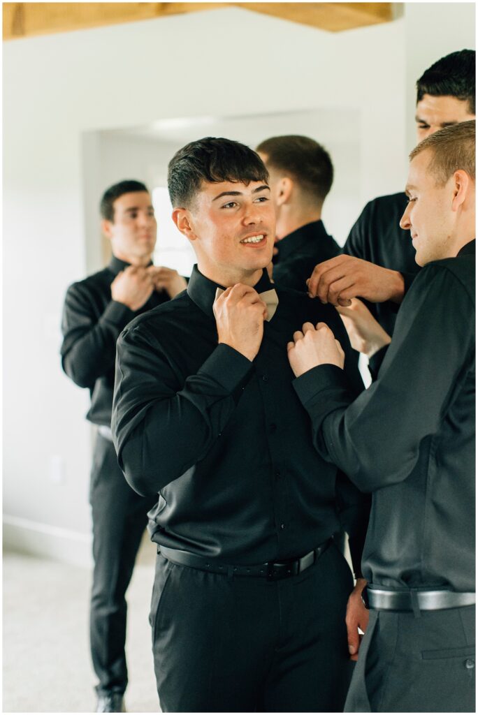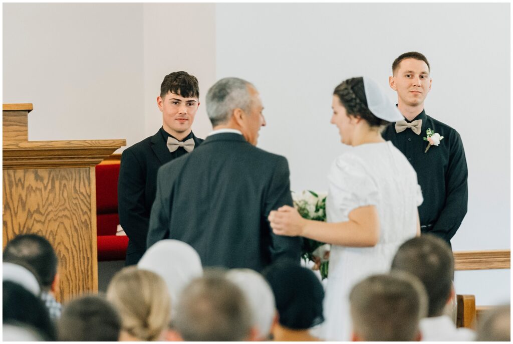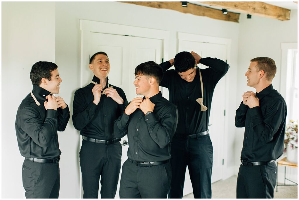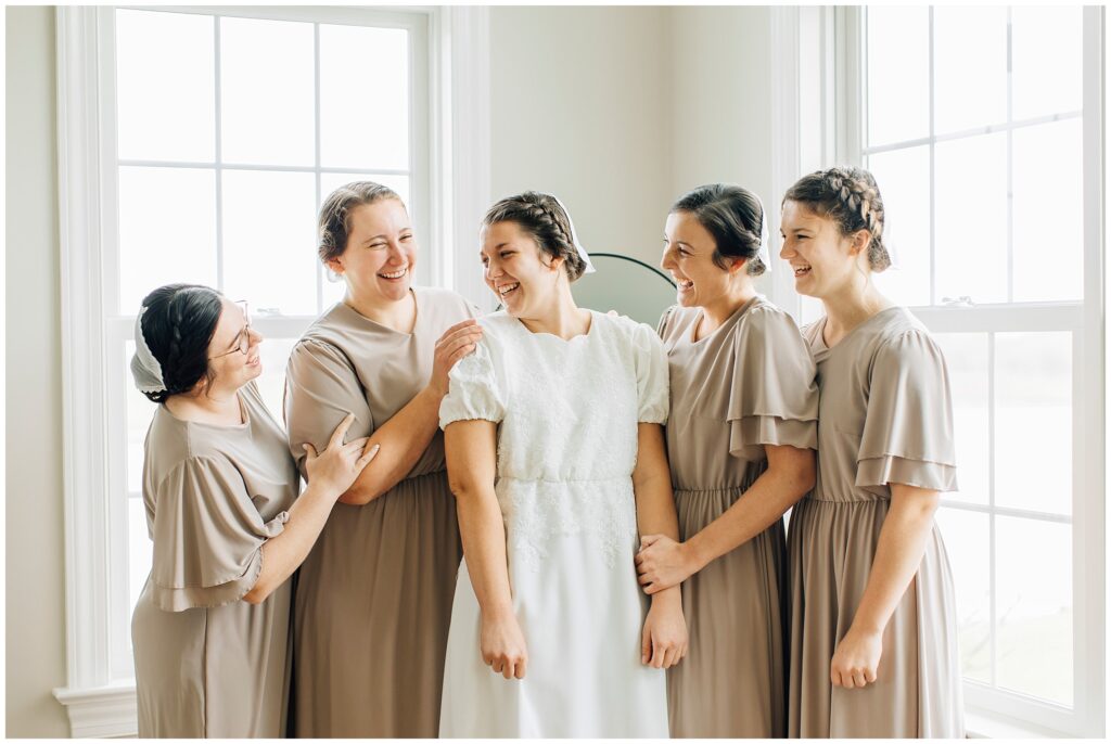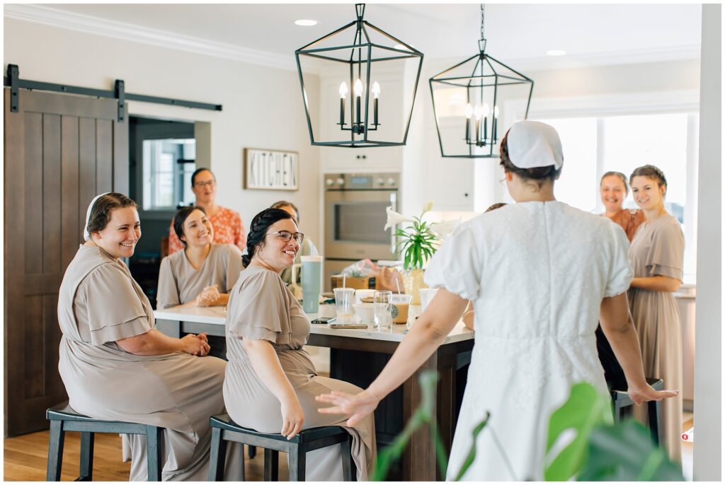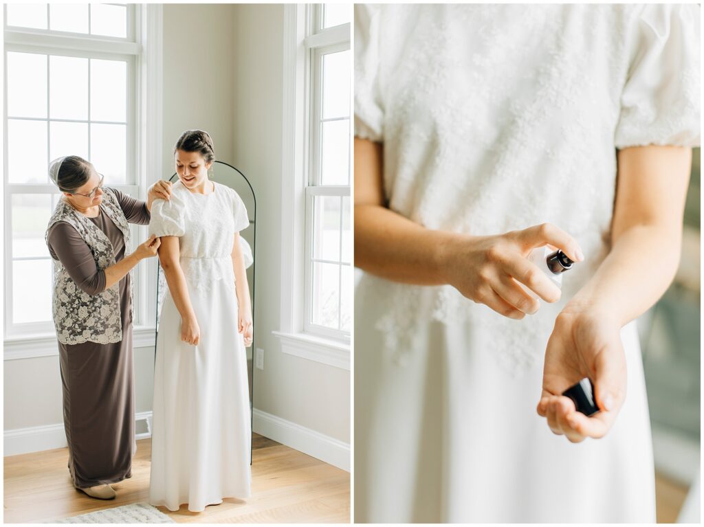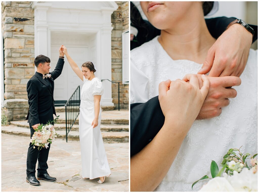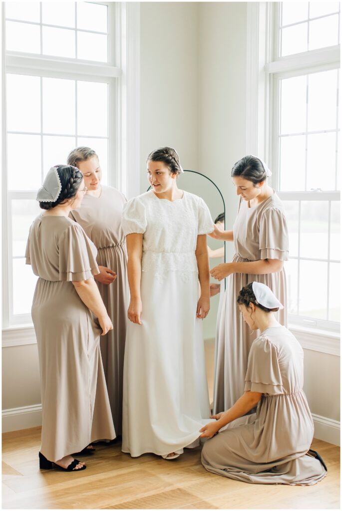 Brian and Mackenzie were married on a hazy, warm late April day. Their wedding was elegant and classic! Mackenzie had a relaxing morning getting ready at a family friend’s beautiful farmhouse with all her girls. Portraits began with a first look under some blossoming pears and more photos in a peach orchard. Then we walked around the little town of Lititz for even more. There were so many beautiful locations!