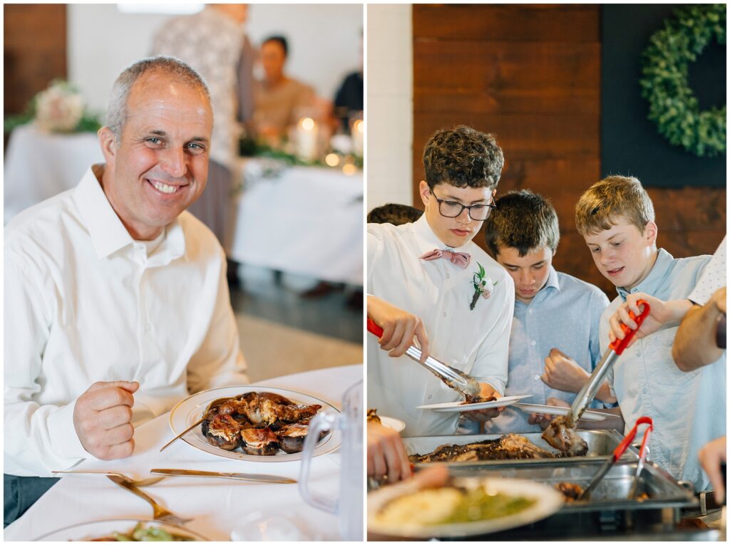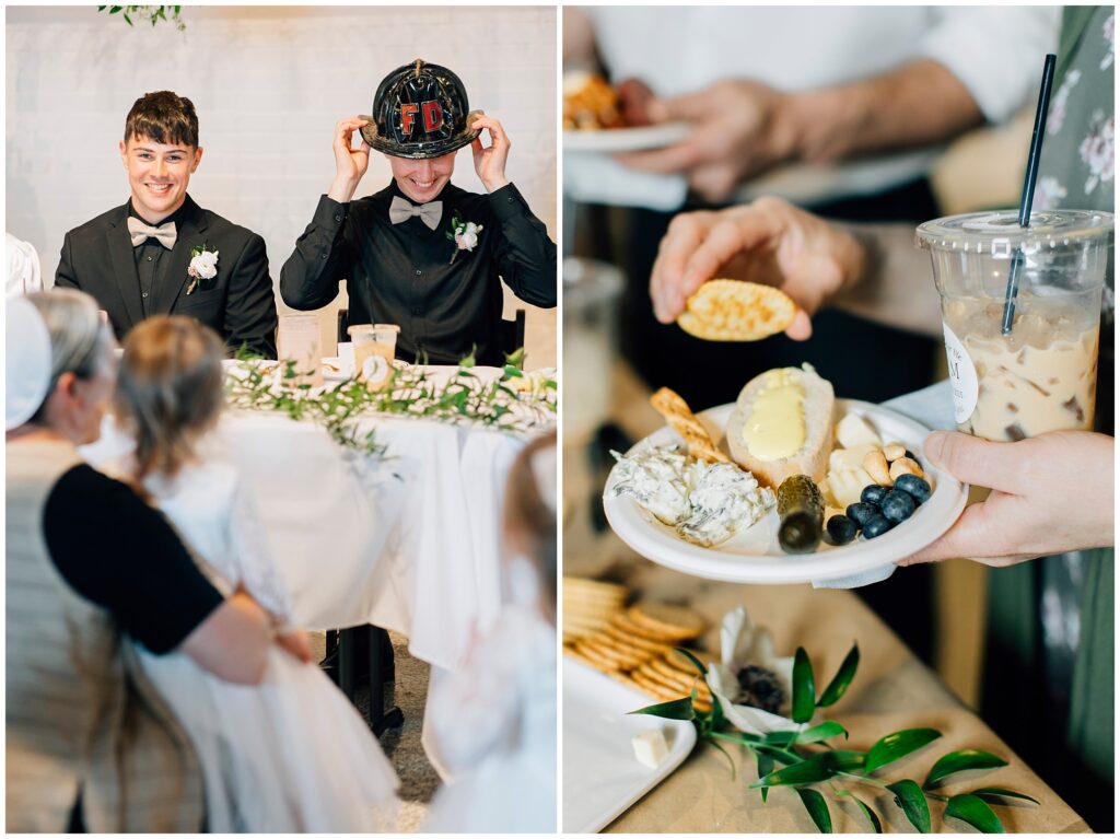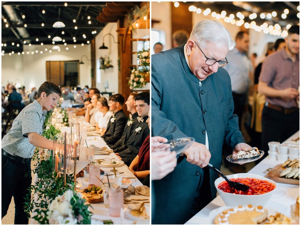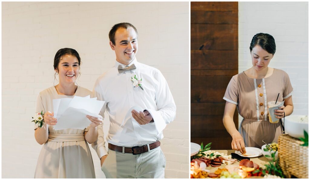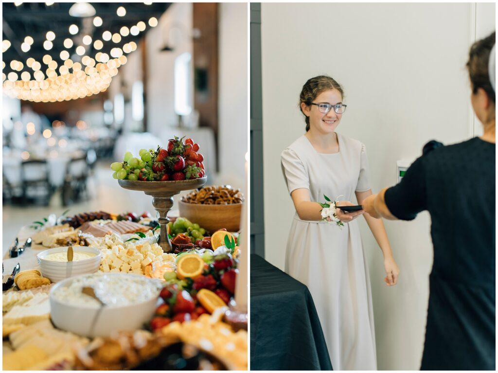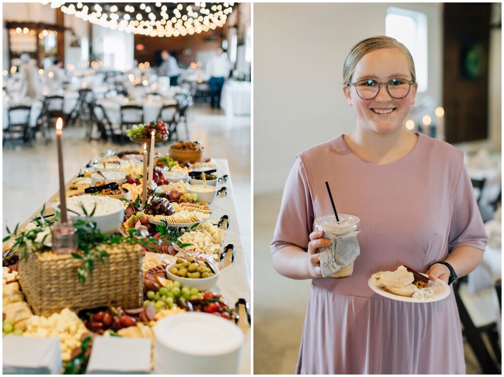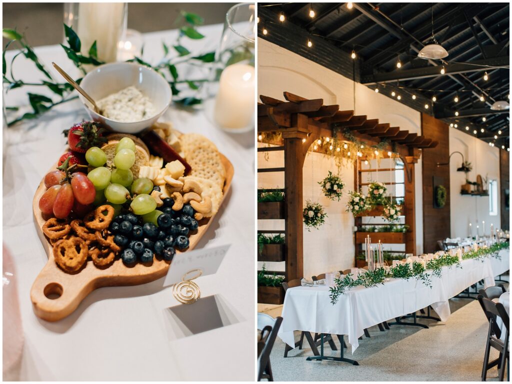 The reception venue was The Silk Mill on Main- a favorite place I hadn’t been to in years! The string lights and wooden chairs make it effortlessly elegant. The appetizer charcuterie table was quite a beautiful spread!