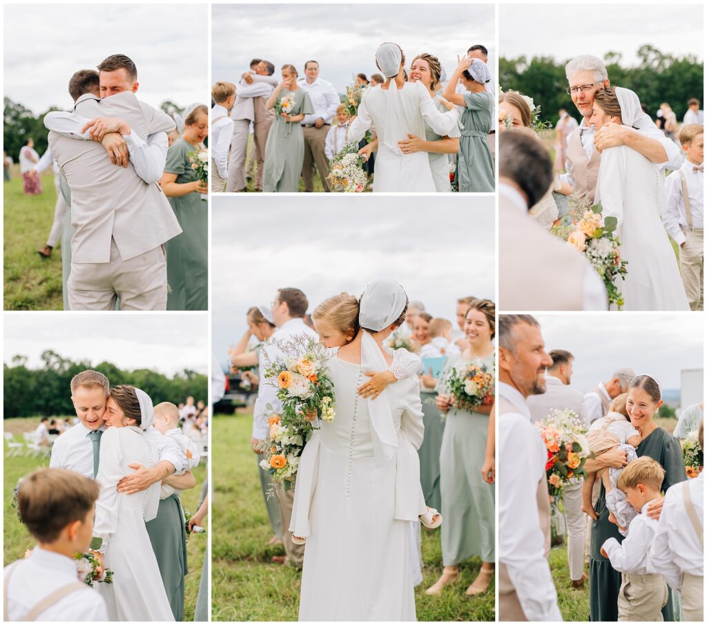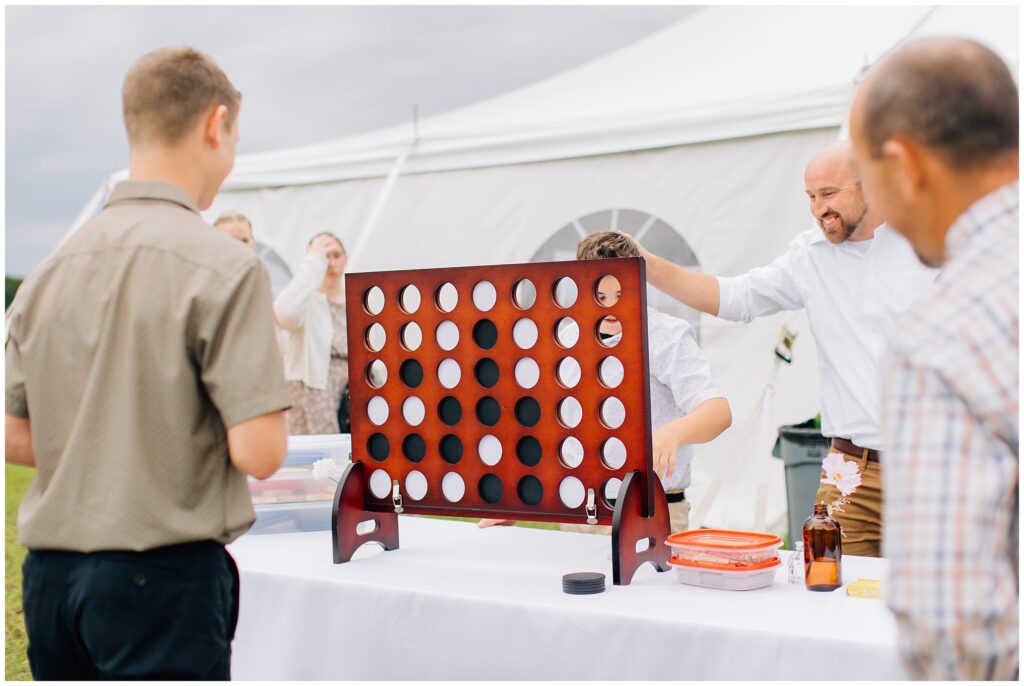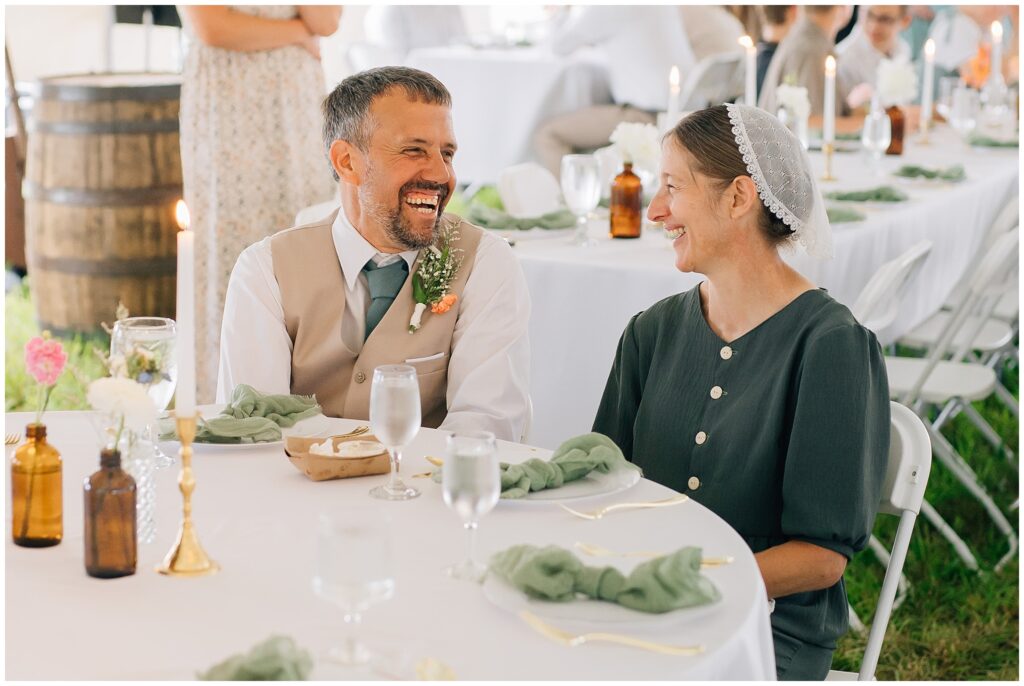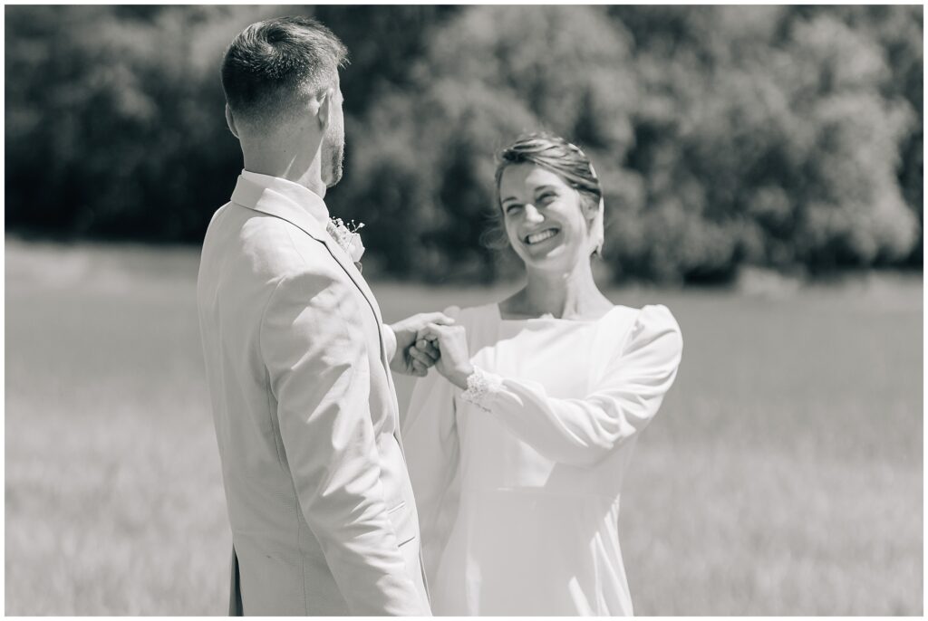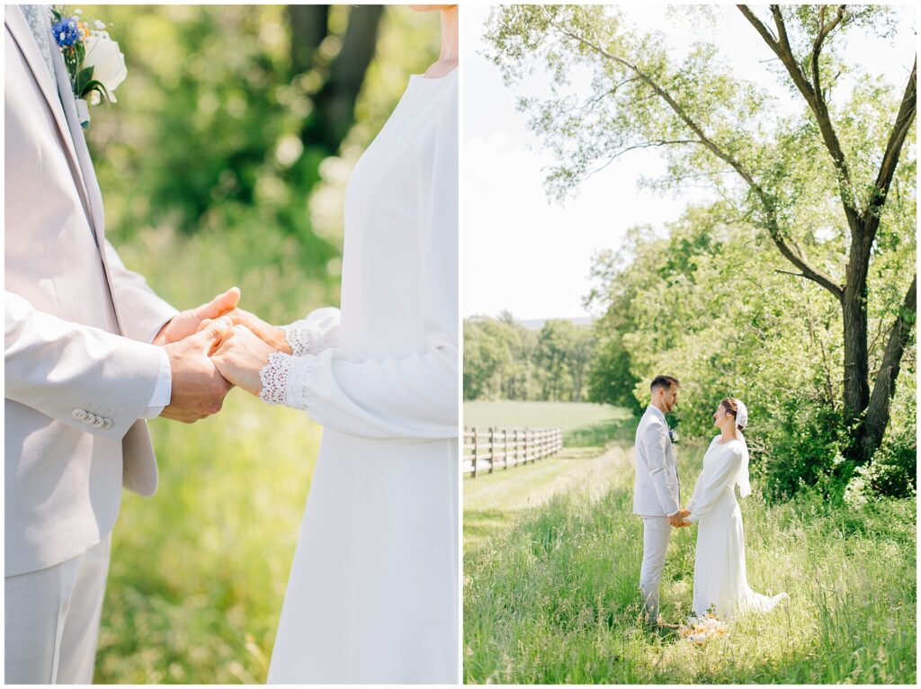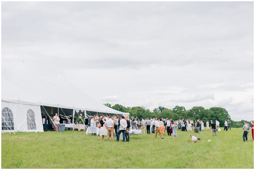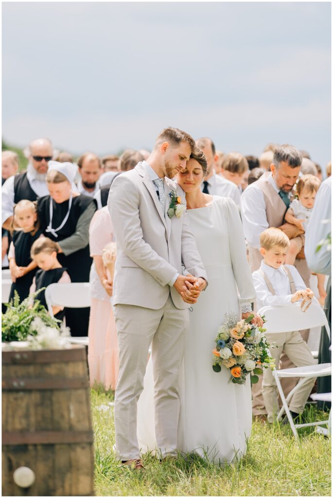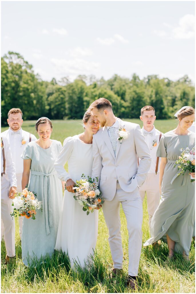 The wedding took place at the family’s cabin with beautiful views all around. The bride’s grandfather poured years of work and love into the place, but sadly he had passed on before he got to see his granddaughter married there. 2025 had such a rainy spring, and everyone was so happy to wake to sunshine on the wedding morning! There was rain in the forecast, but it held off until everyone was seated under the tent for the reception, and didn’t really start raining in earnest until just after they exited their reception. What an incredible blessing that was!