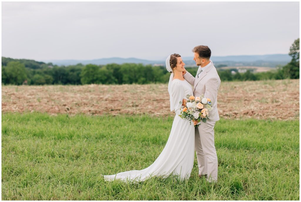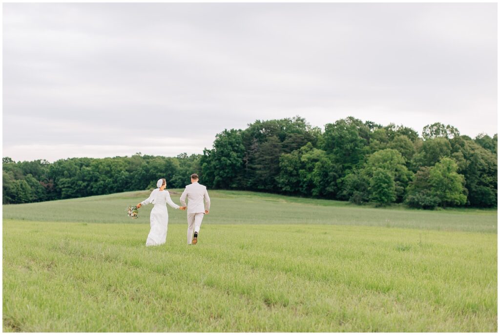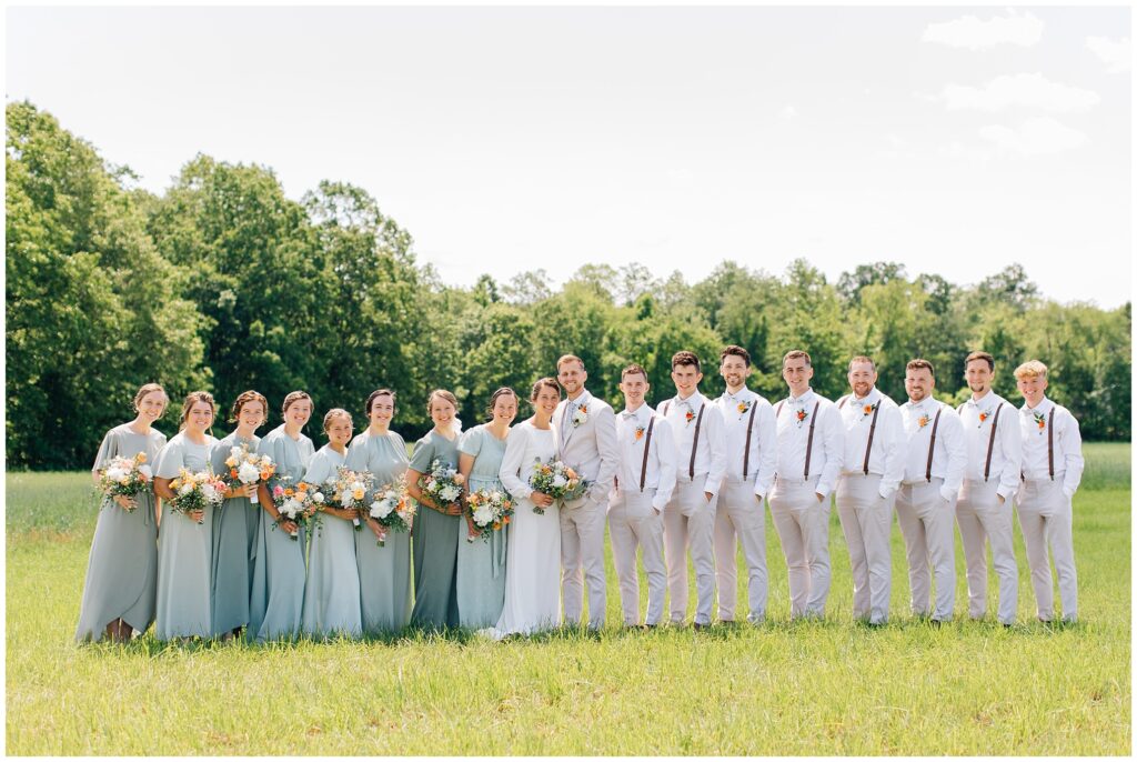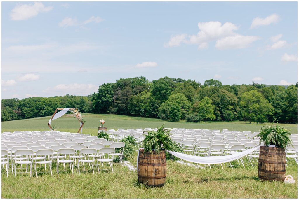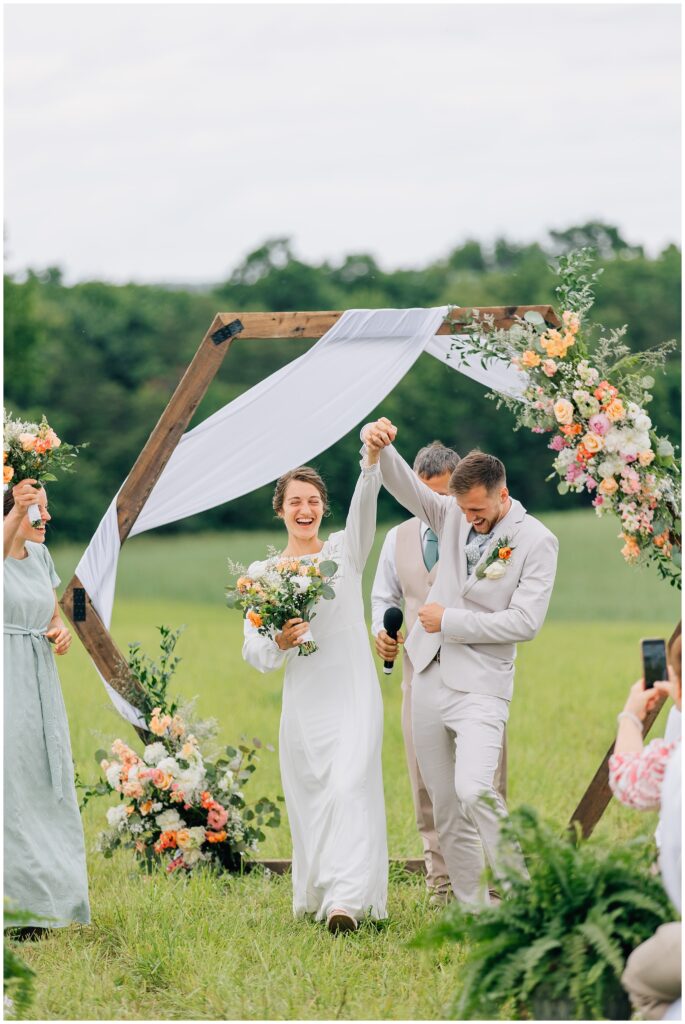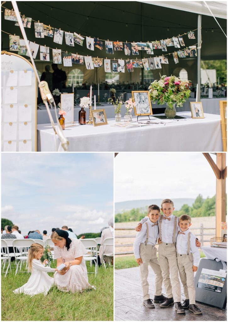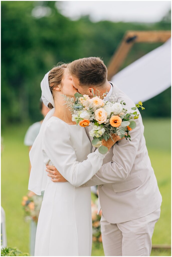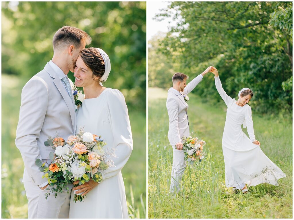 The wedding took place at the family’s cabin with beautiful views all around. The bride’s grandfather poured years of work and love into the place, but sadly he had passed on before he got to see his granddaughter married there. 2025 had such a rainy spring, and everyone was so happy to wake to sunshine on the wedding morning! There was rain in the forecast, but it held off until everyone was seated under the tent for the reception, and didn’t really start raining in earnest until just after they exited their reception. What an incredible blessing that was!