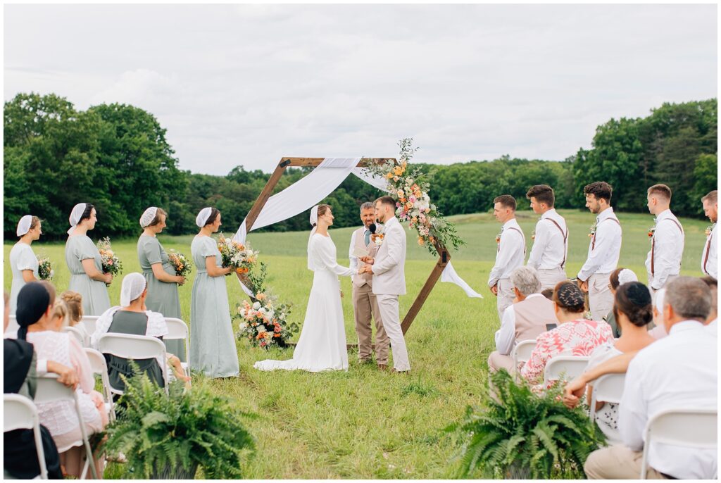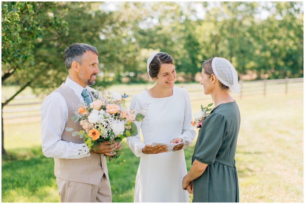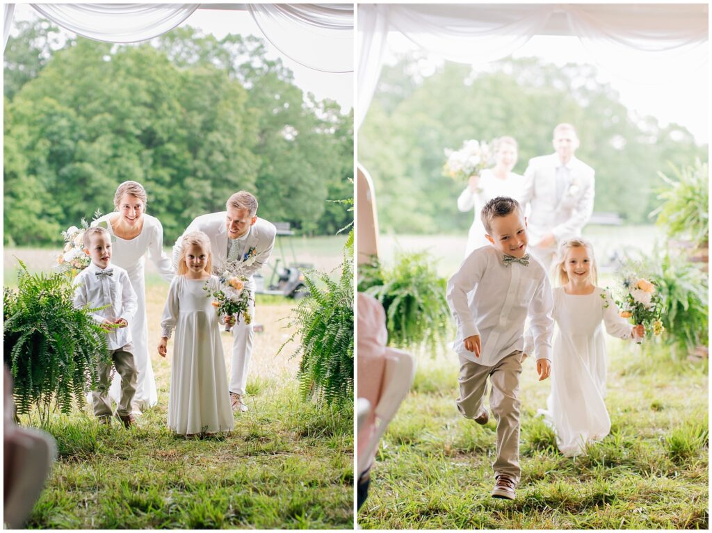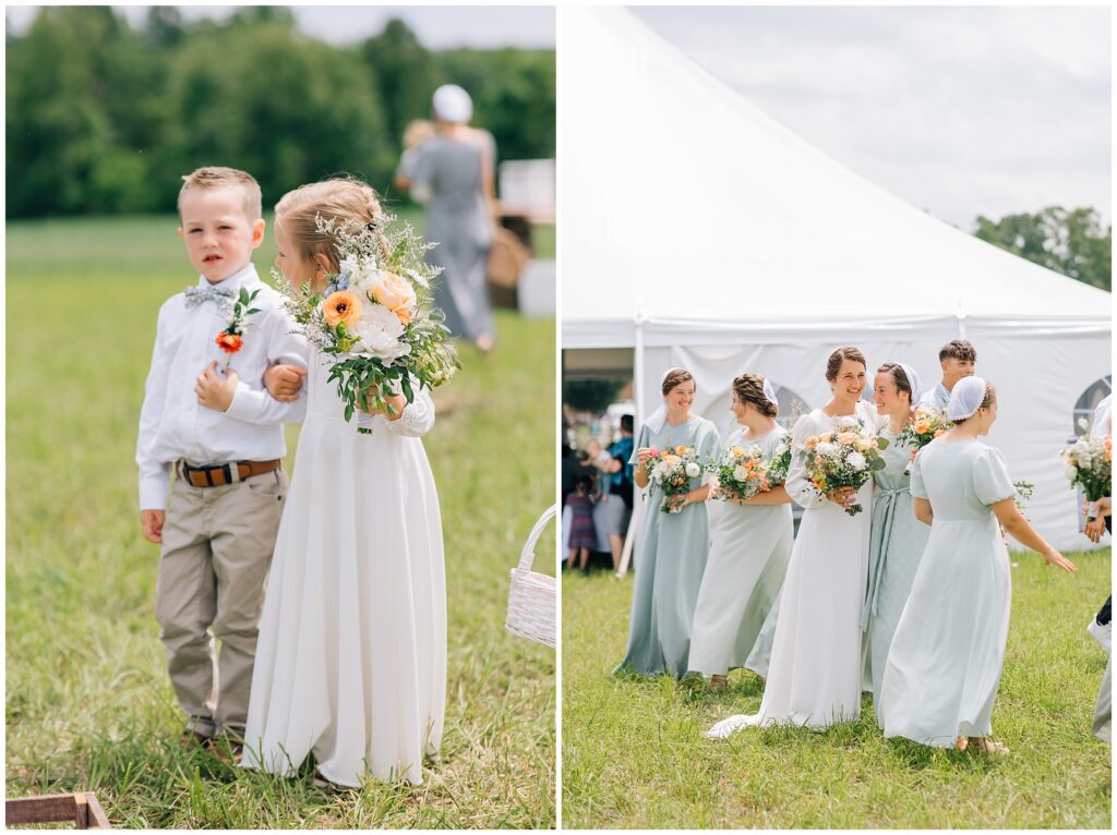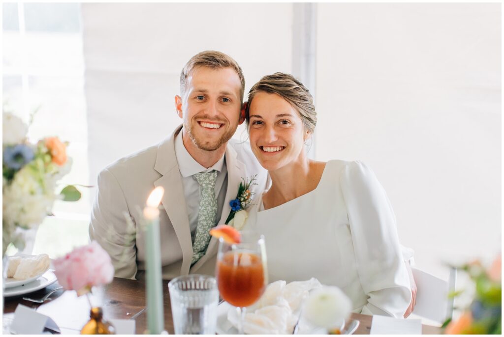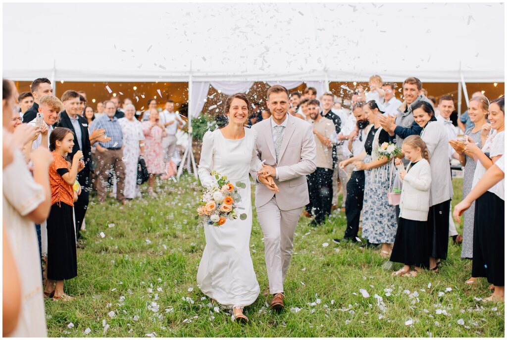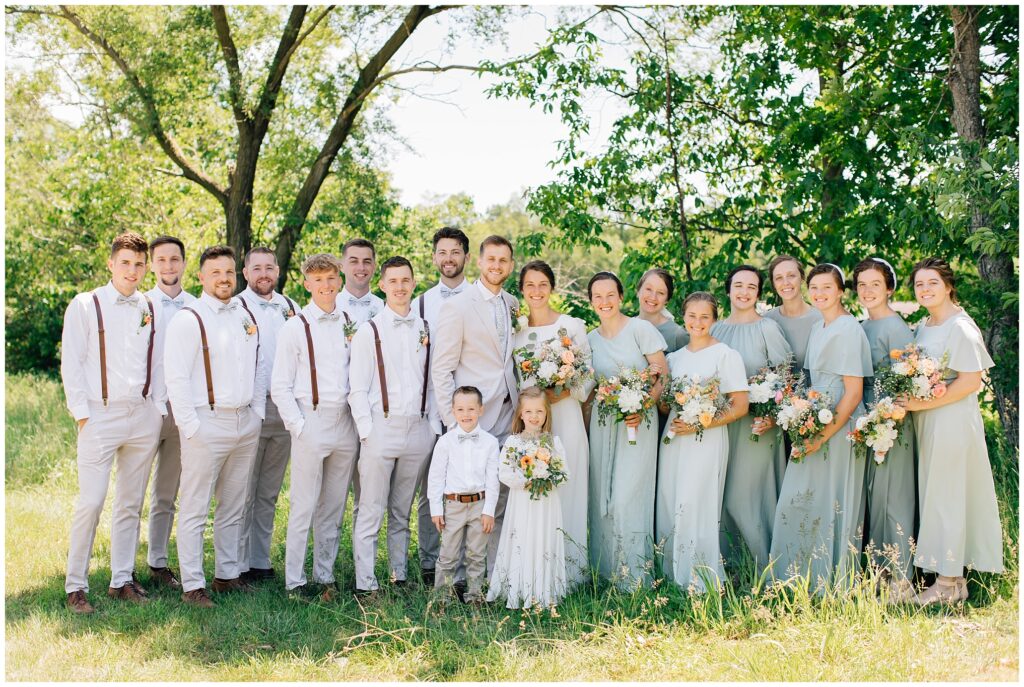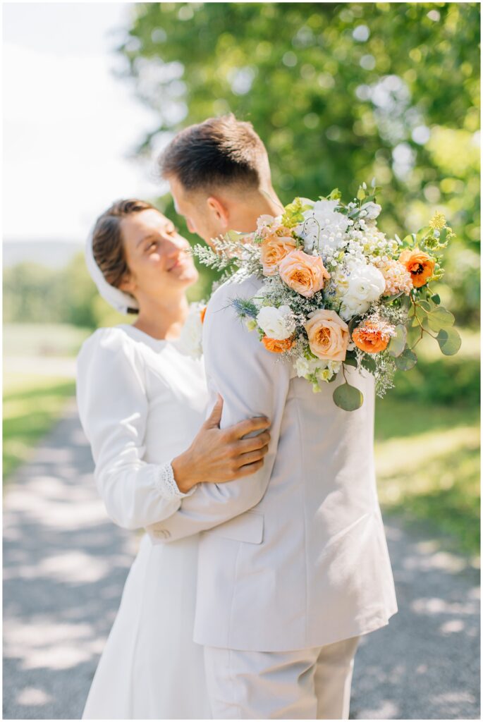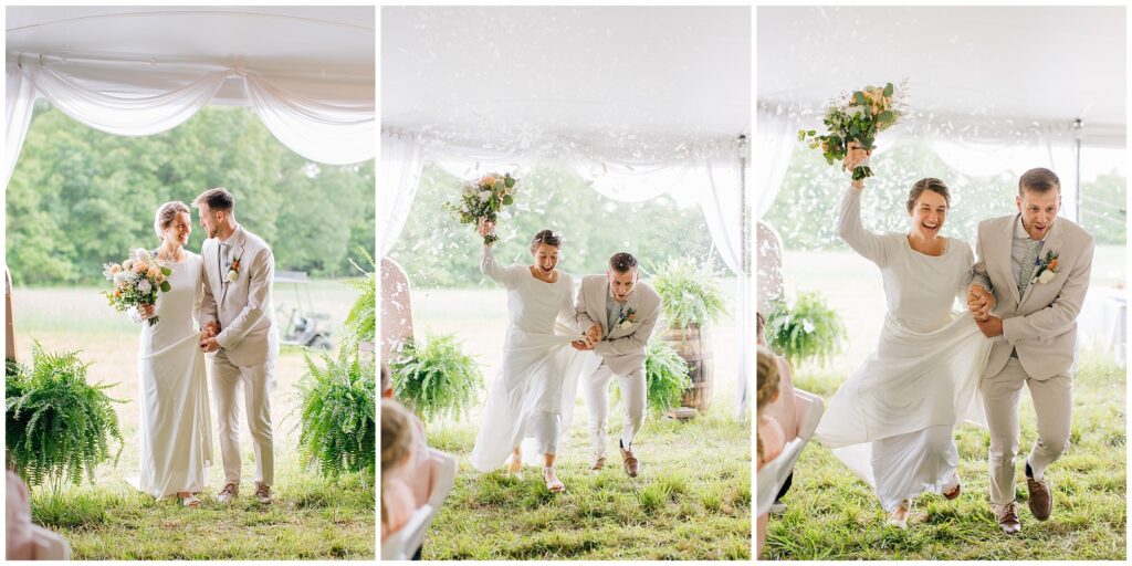 The wedding took place at the family’s cabin with beautiful views all around. The bride’s grandfather poured years of work and love into the place, but sadly he had passed on before he got to see his granddaughter married there. 2025 had such a rainy spring, and everyone was so happy to wake to sunshine on the wedding morning! There was rain in the forecast, but it held off until everyone was seated under the tent for the reception, and didn’t really start raining in earnest until just after they exited their reception. What an incredible blessing that was!