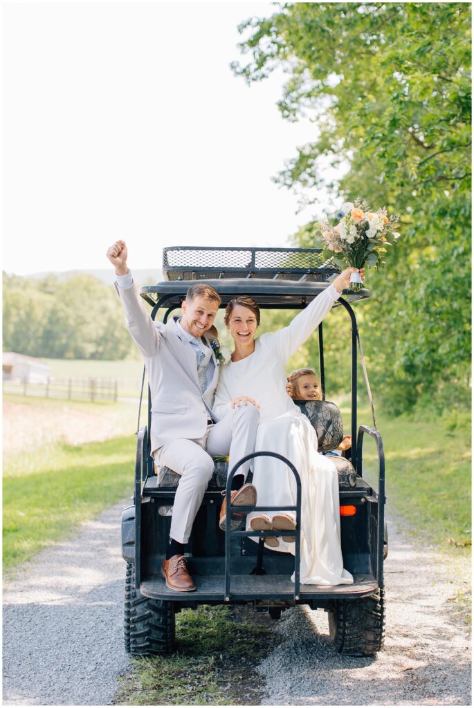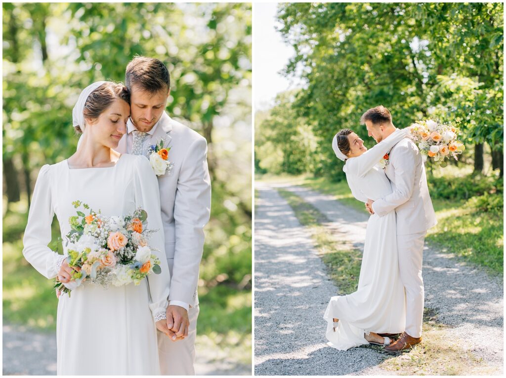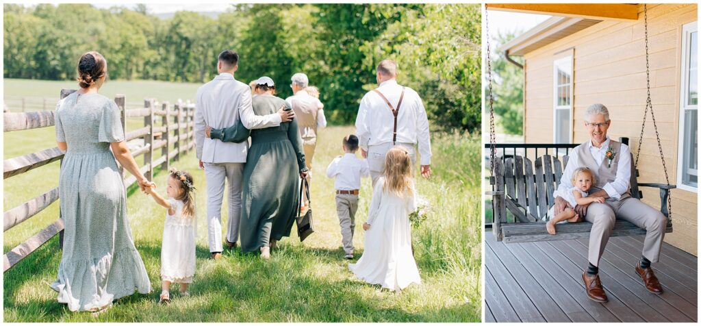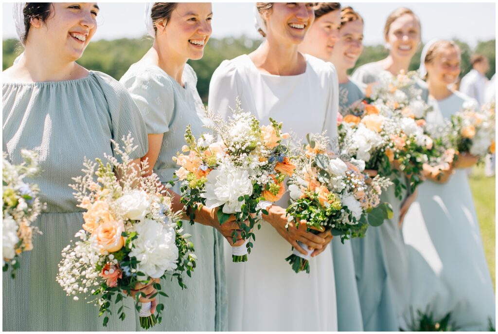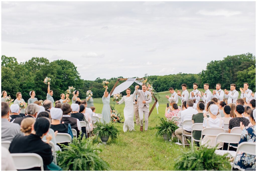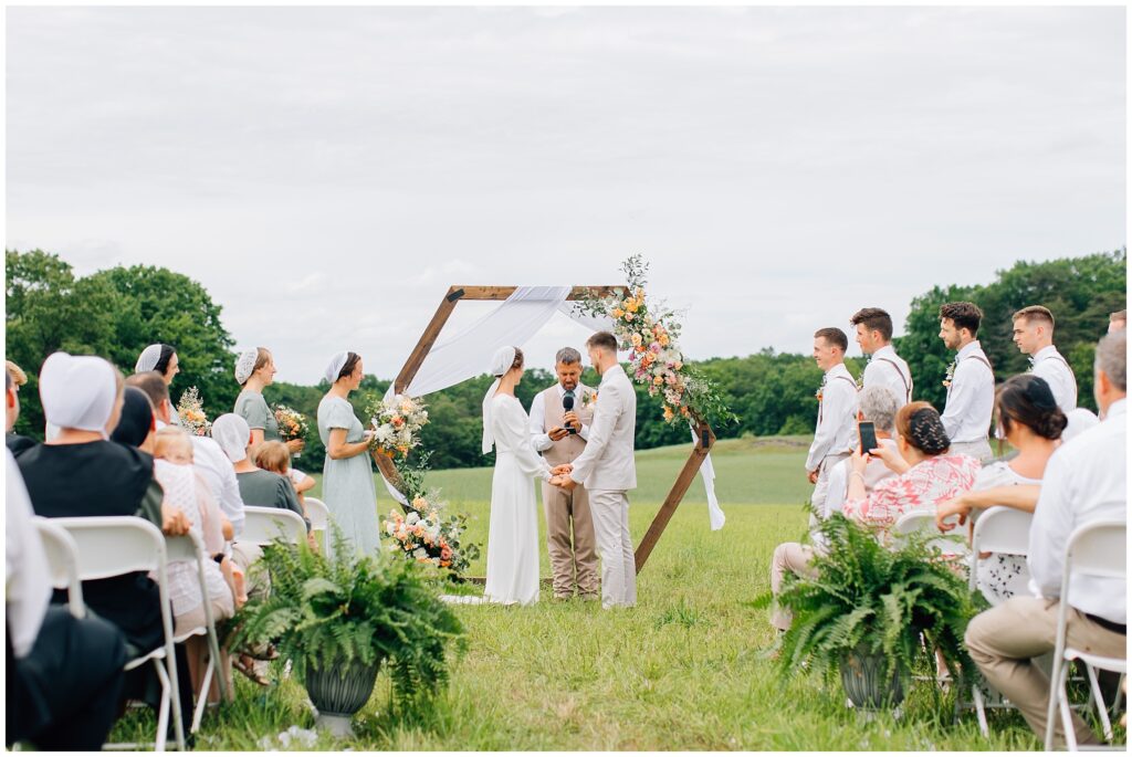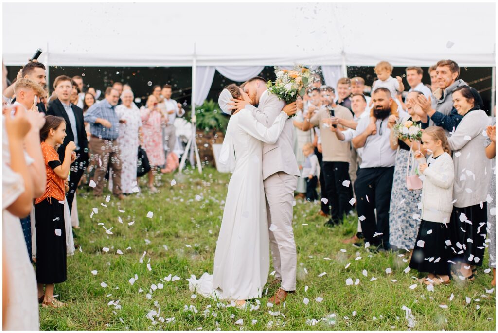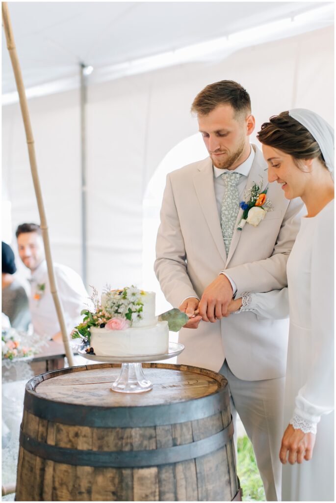 The wedding took place at the family’s cabin with beautiful views all around. The bride’s grandfather poured years of work and love into the place, but sadly he had passed on before he got to see his granddaughter married there. 2025 had such a rainy spring, and everyone was so happy to wake to sunshine on the wedding morning! There was rain in the forecast, but it held off until everyone was seated under the tent for the reception, and didn’t really start raining in earnest until just after they exited their reception. What an incredible blessing that was!