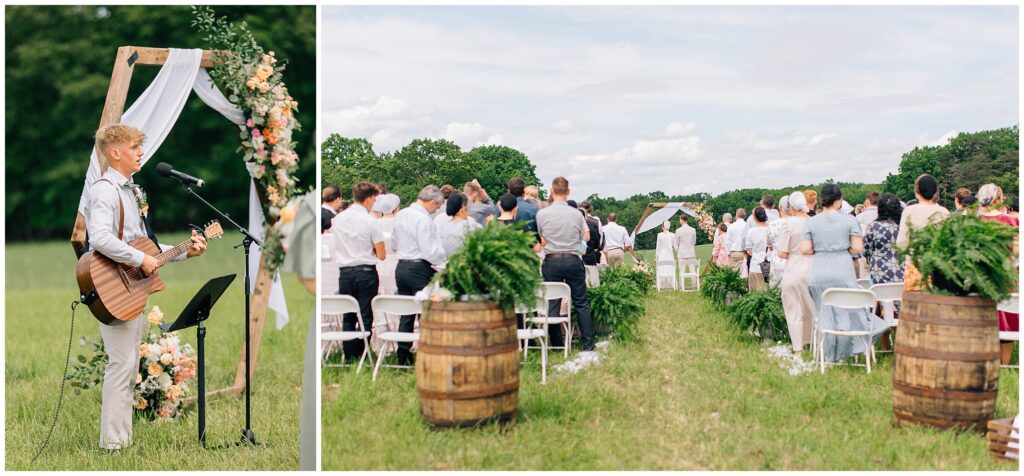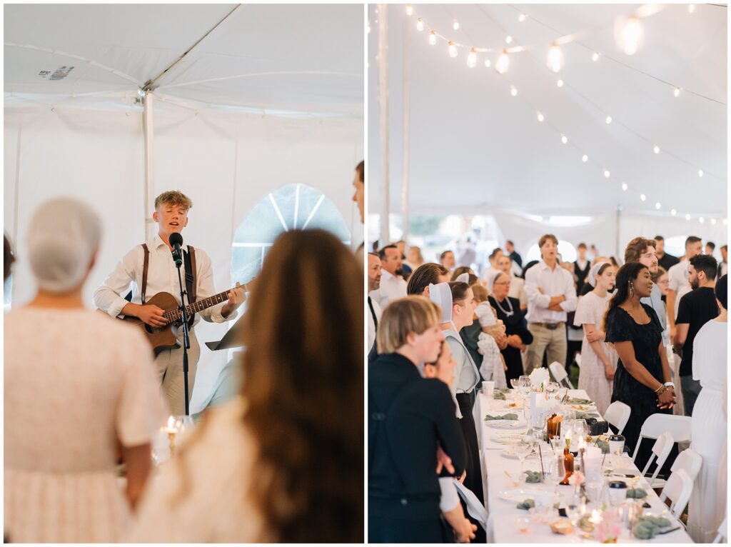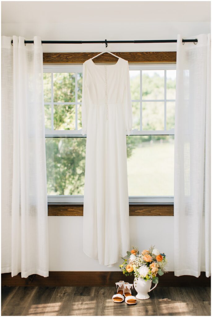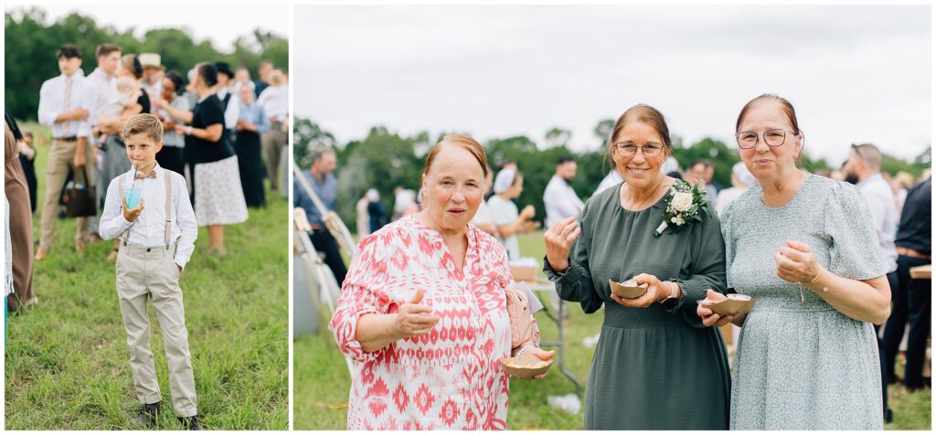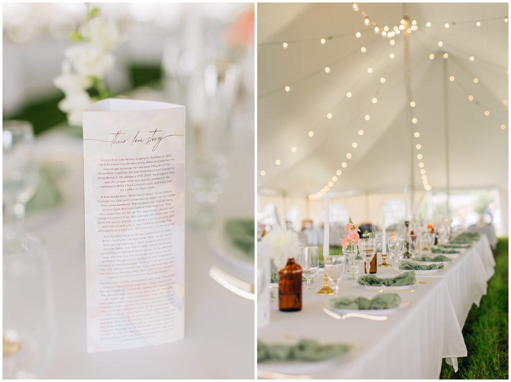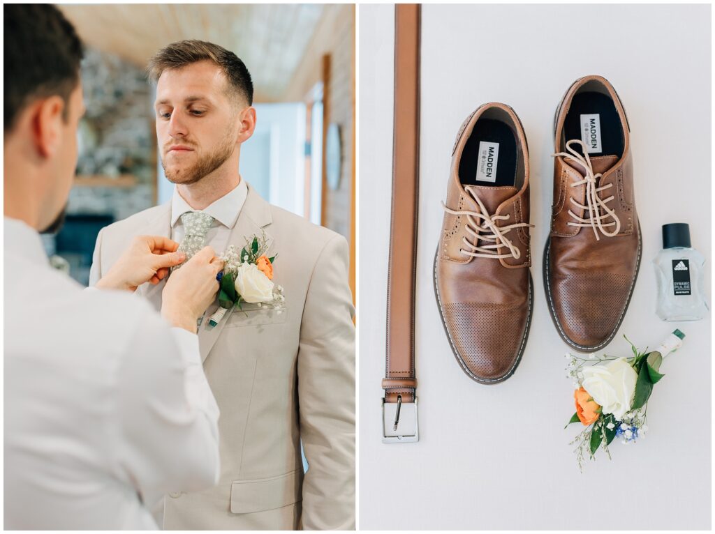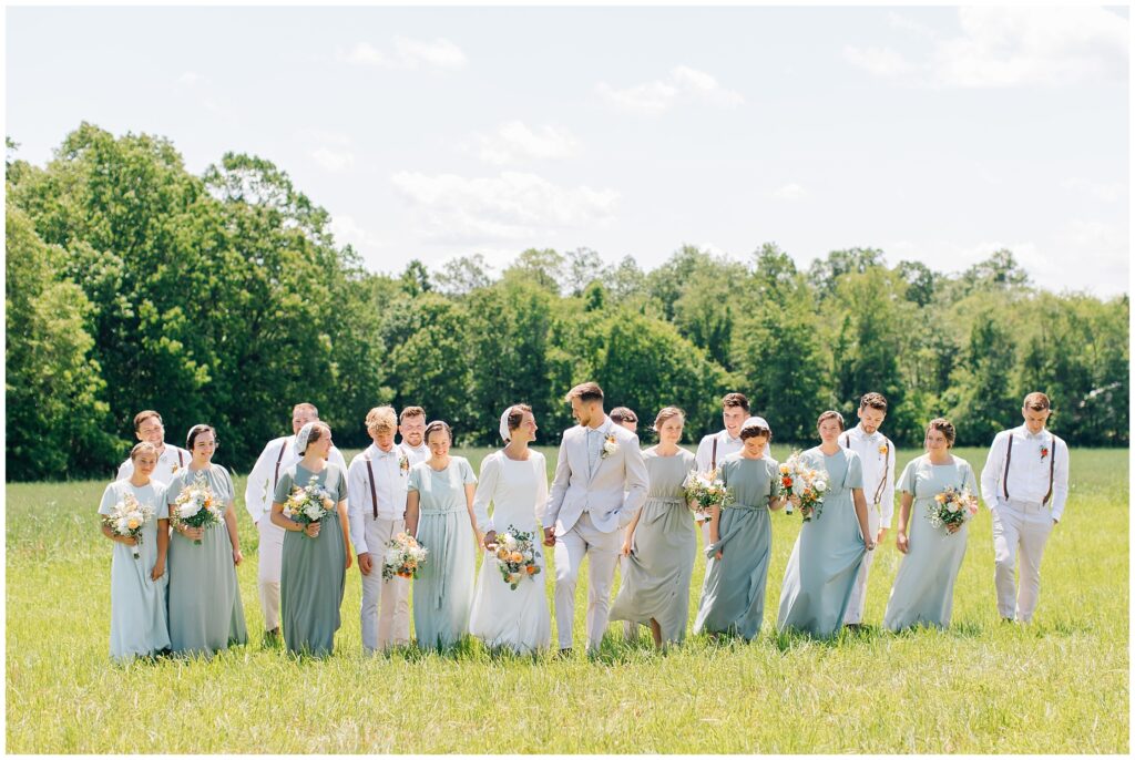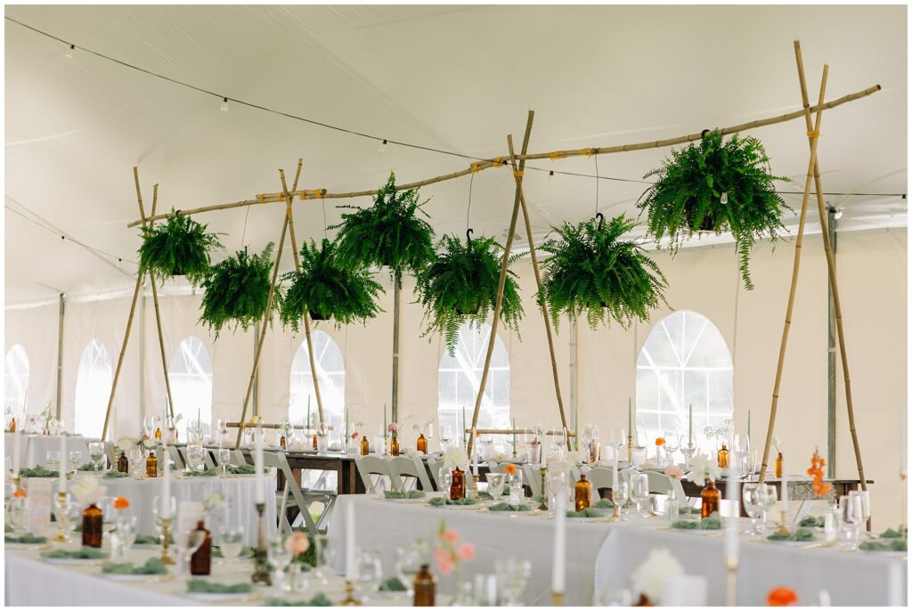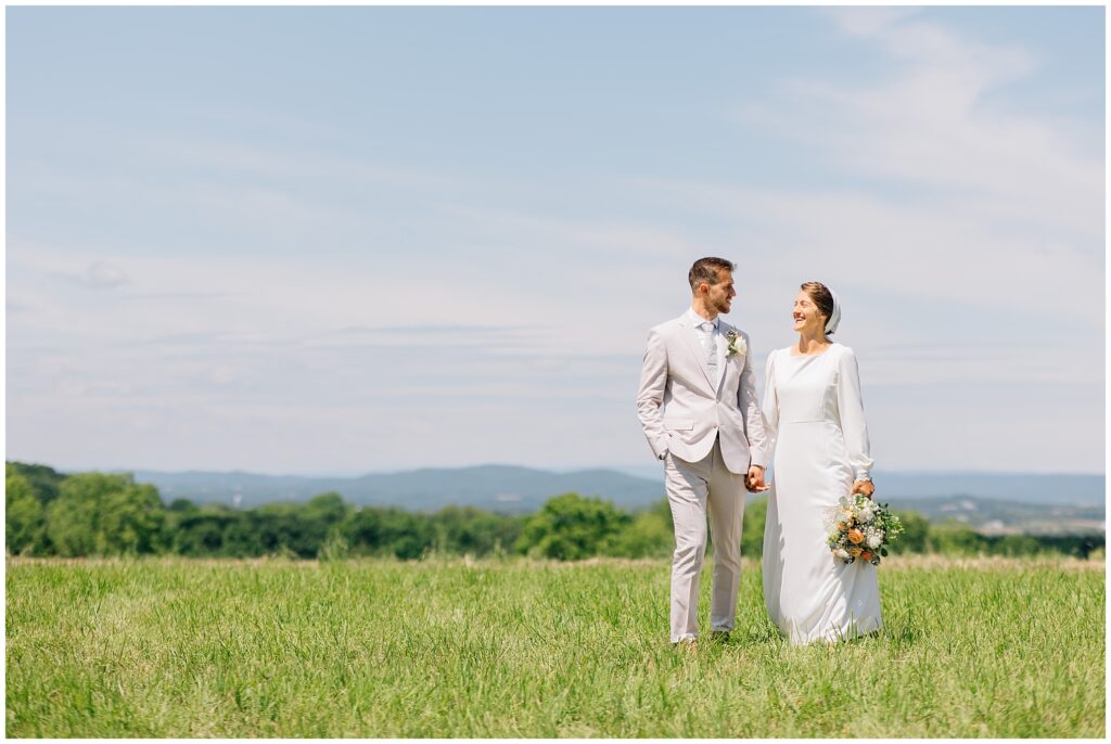 The wedding took place at the family’s cabin with beautiful views all around. The bride’s grandfather poured years of work and love into the place, but sadly he had passed on before he got to see his granddaughter married there. 2025 had such a rainy spring, and everyone was so happy to wake to sunshine on the wedding morning! There was rain in the forecast, but it held off until everyone was seated under the tent for the reception, and didn’t really start raining in earnest until just after they exited their reception. What an incredible blessing that was!