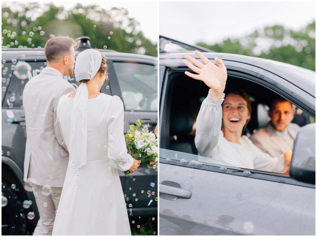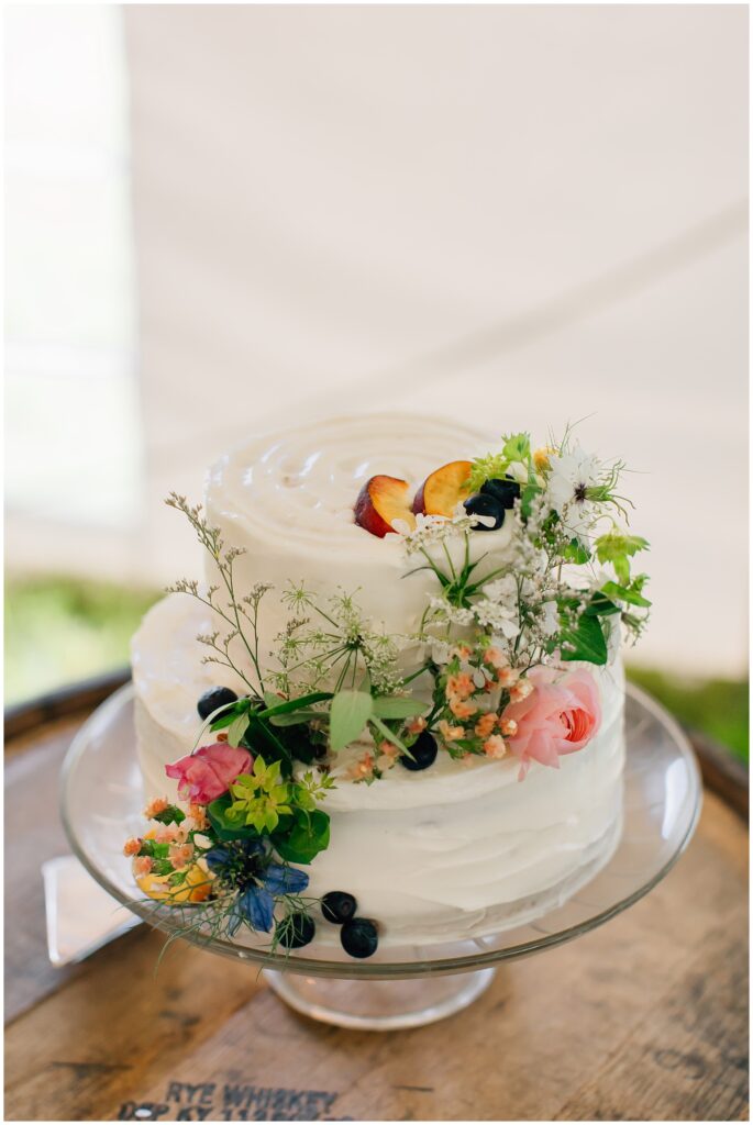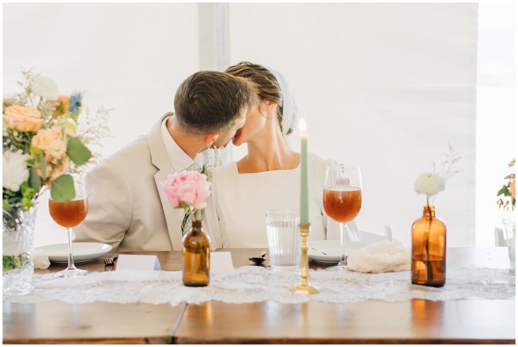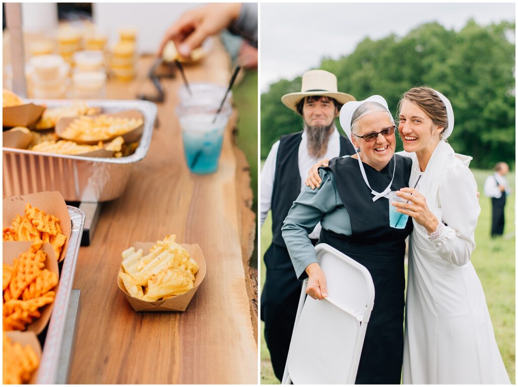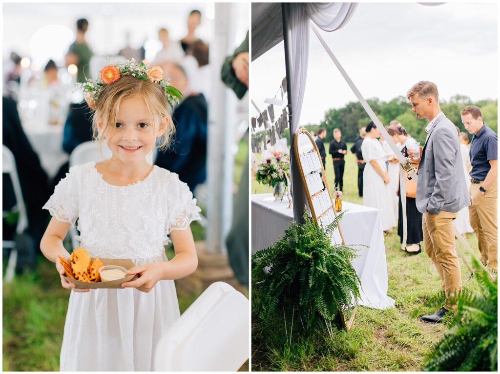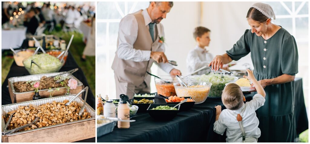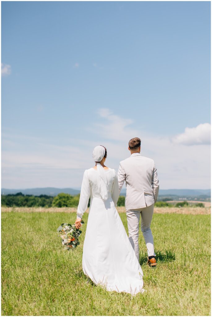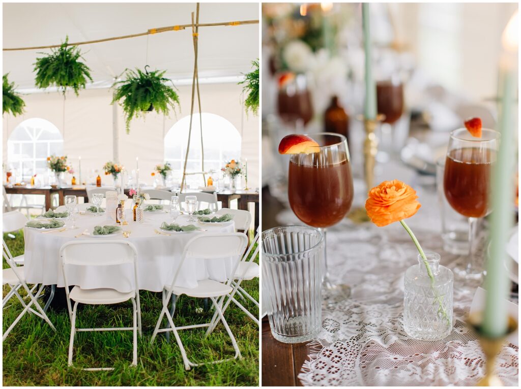 The wedding took place at the family’s cabin with beautiful views all around. The bride’s grandfather poured years of work and love into the place, but sadly he had passed on before he got to see his granddaughter married there. 2025 had such a rainy spring, and everyone was so happy to wake to sunshine on the wedding morning! There was rain in the forecast, but it held off until everyone was seated under the tent for the reception, and didn’t really start raining in earnest until just after they exited their reception. What an incredible blessing that was!