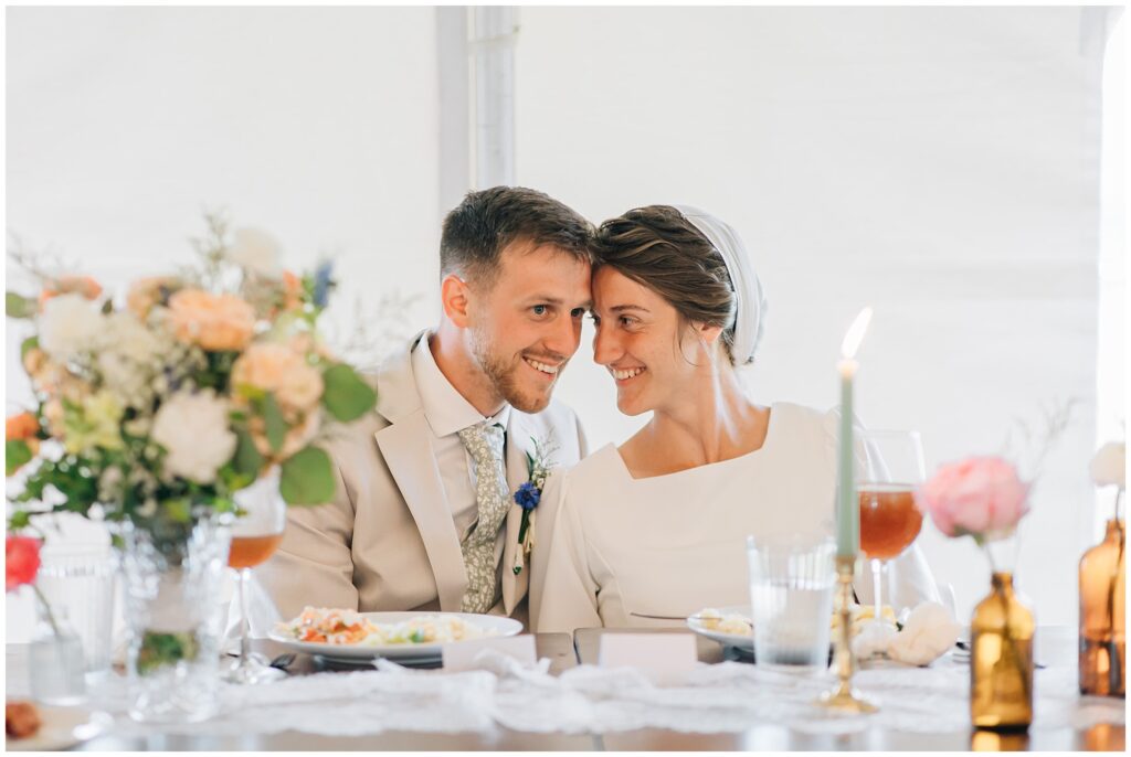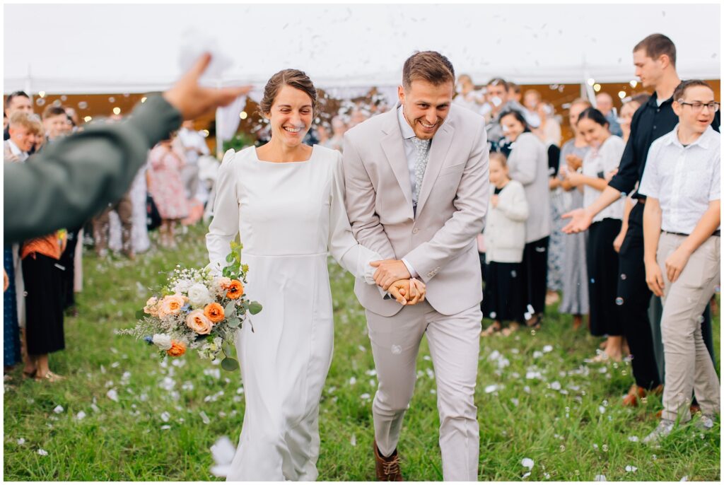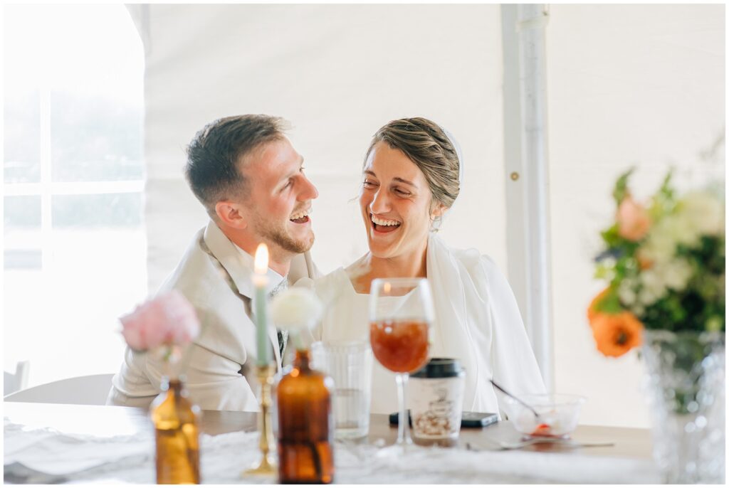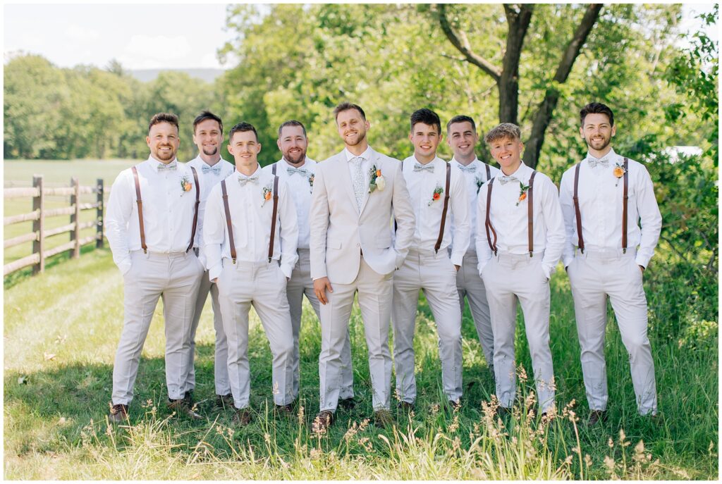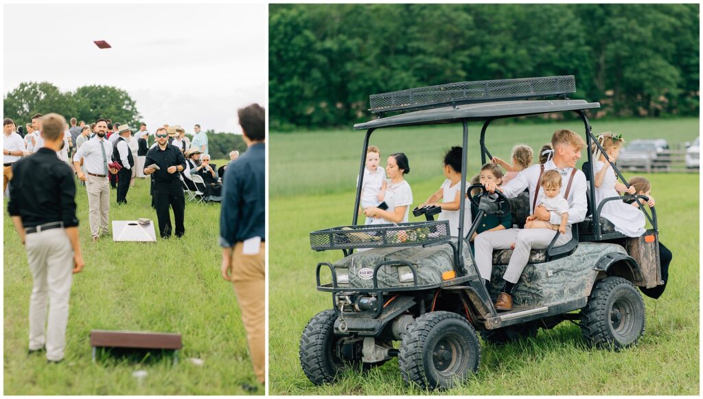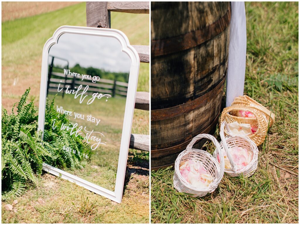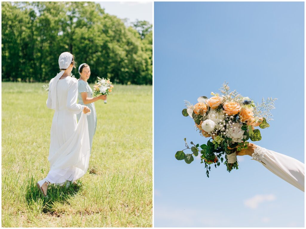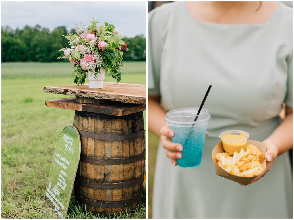 The wedding took place at the family’s cabin with beautiful views all around. The bride’s grandfather poured years of work and love into the place, but sadly he had passed on before he got to see his granddaughter married there. 2025 had such a rainy spring, and everyone was so happy to wake to sunshine on the wedding morning! There was rain in the forecast, but it held off until everyone was seated under the tent for the reception, and didn’t really start raining in earnest until just after they exited their reception. What an incredible blessing that was!