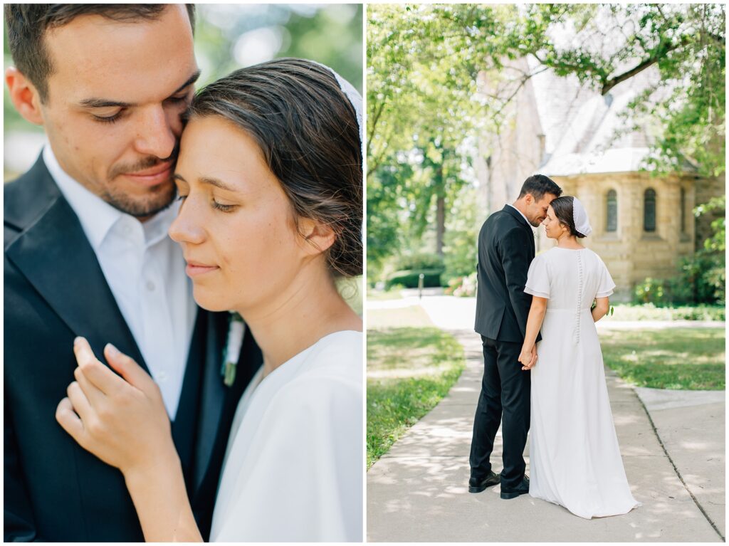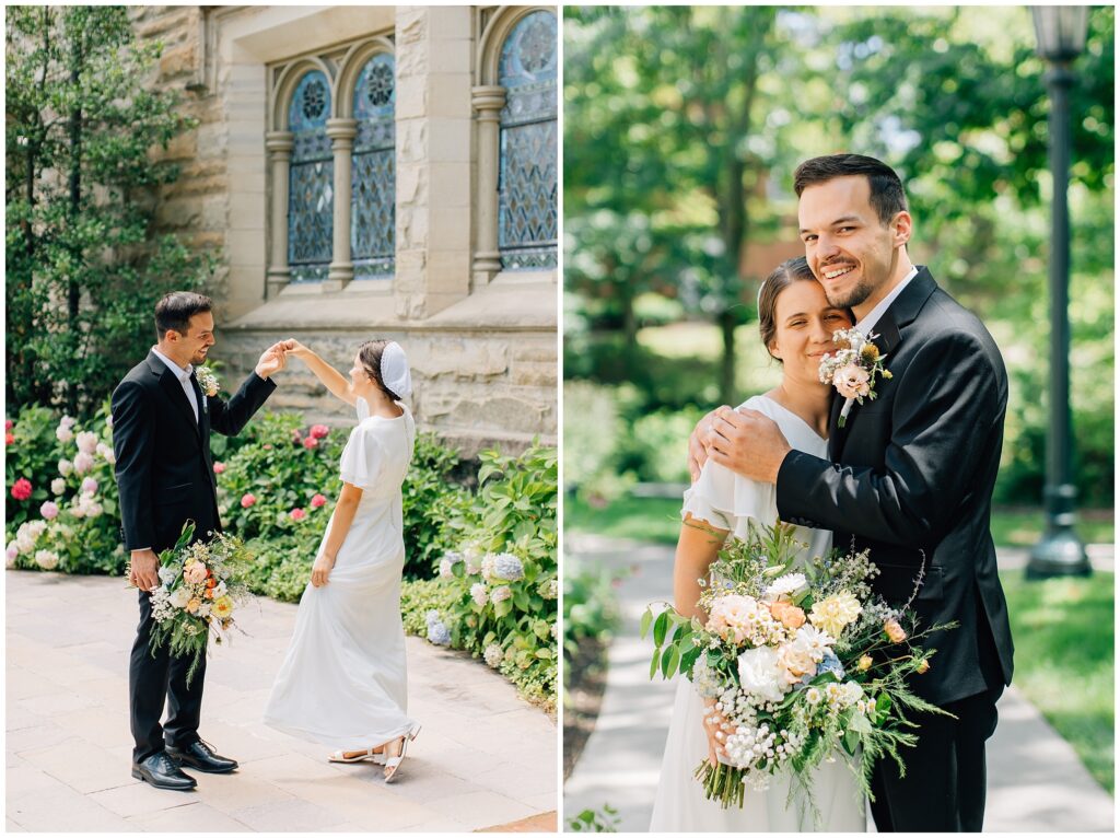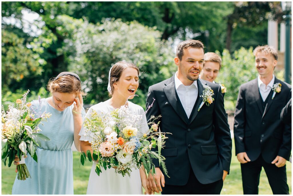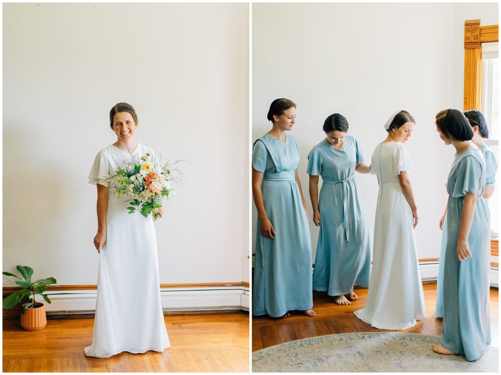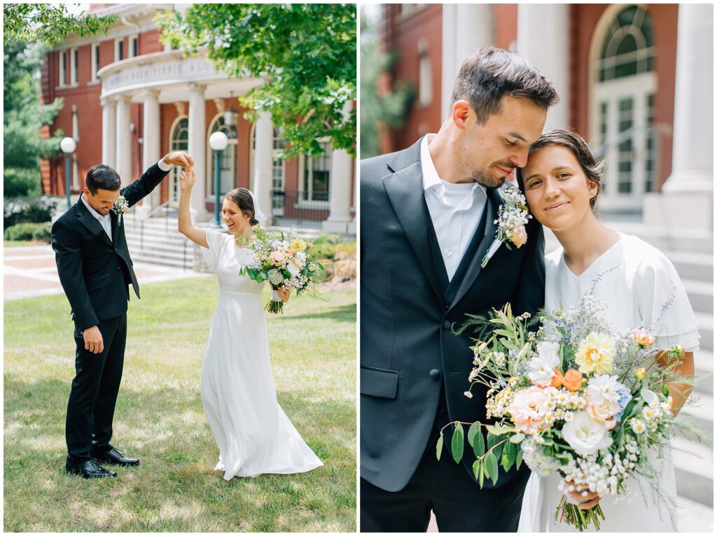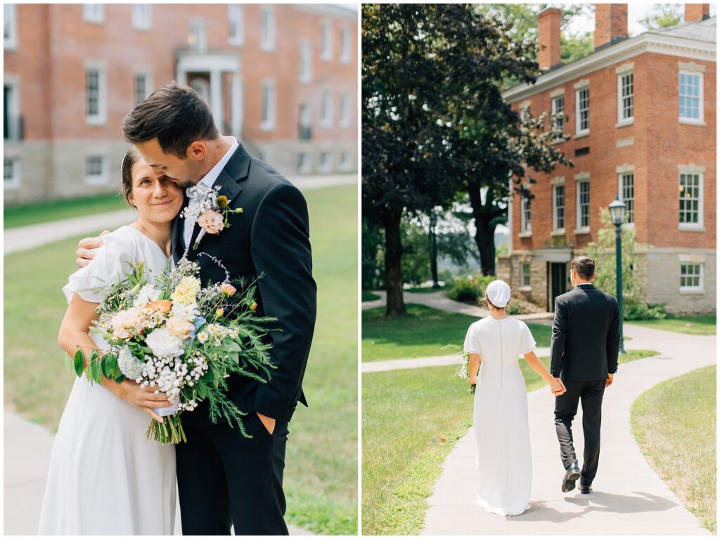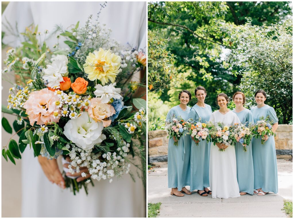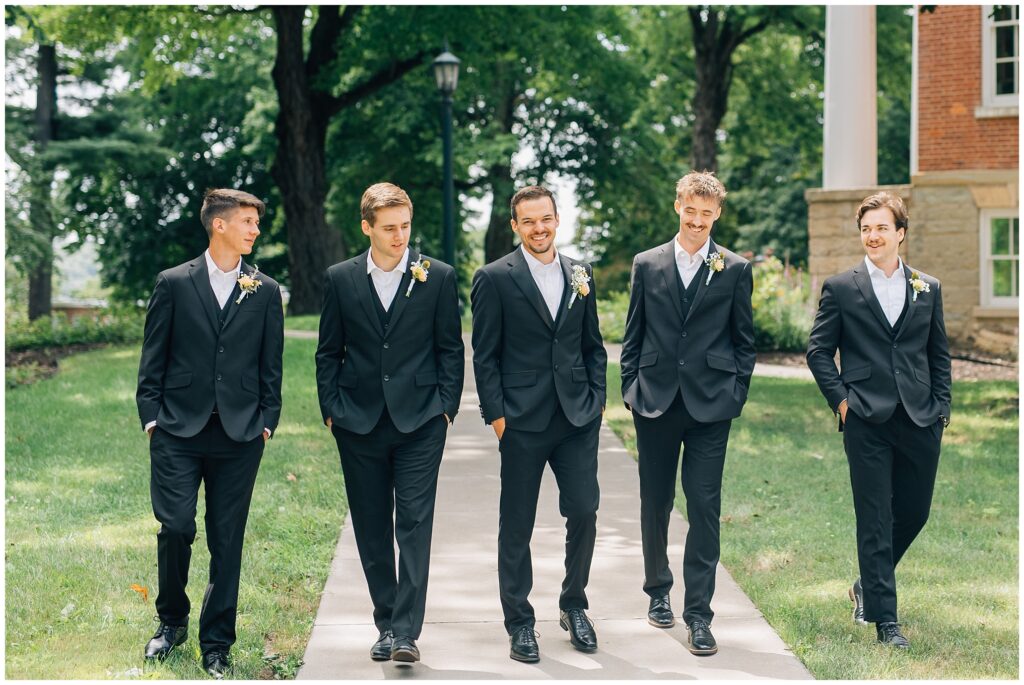 The bridal party had brunch together at the bride’s home and then she and her girls got ready for the day there. Harrison and Angeline shared a sweet first look in a clearing in the woods behind her house, then we went to the local college campus for the rest of the photos. They were so relaxed and happy and it was just a fun day all around!Â