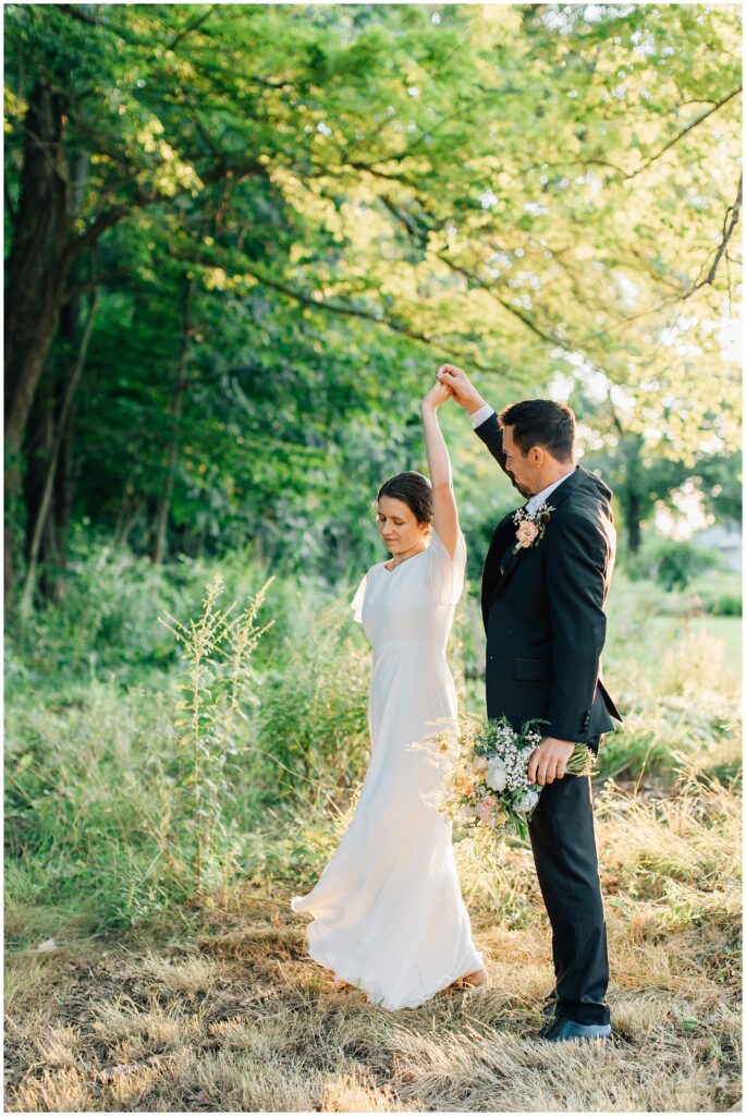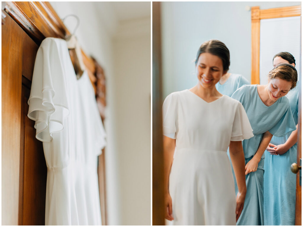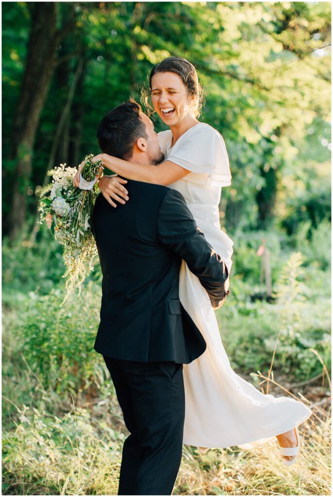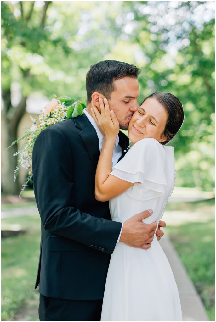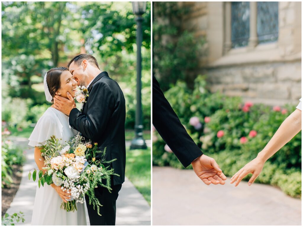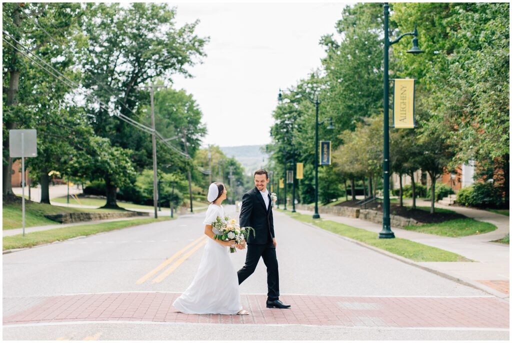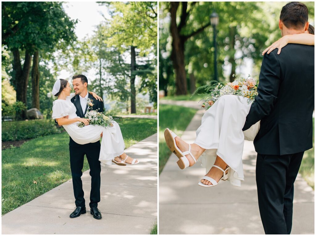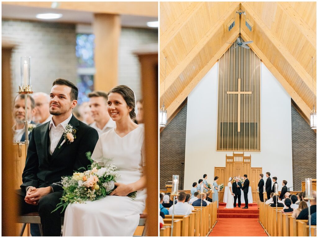 The bridal party had brunch together at the bride’s home and then she and her girls got ready for the day there. Harrison and Angeline shared a sweet first look in a clearing in the woods behind her house, then we went to the local college campus for the rest of the photos. They were so relaxed and happy and it was just a fun day all around!Â